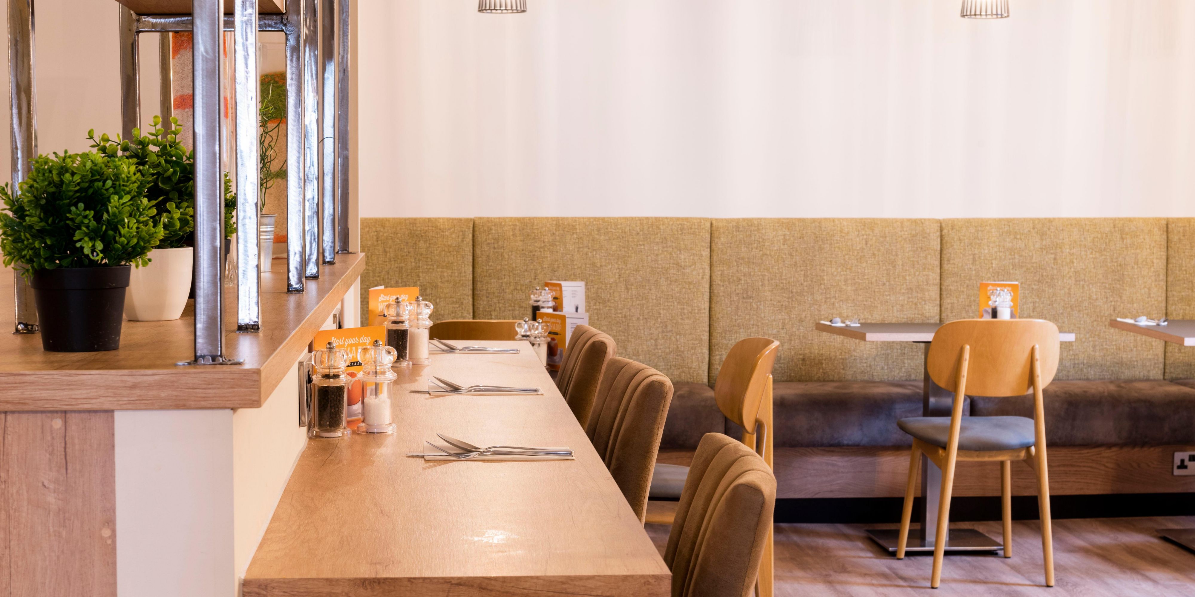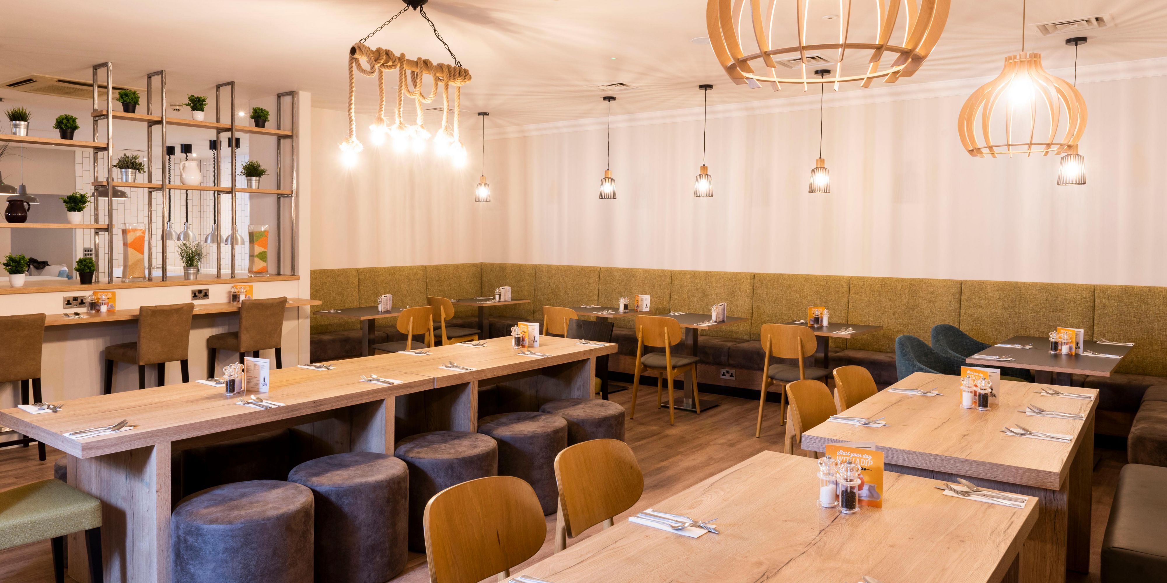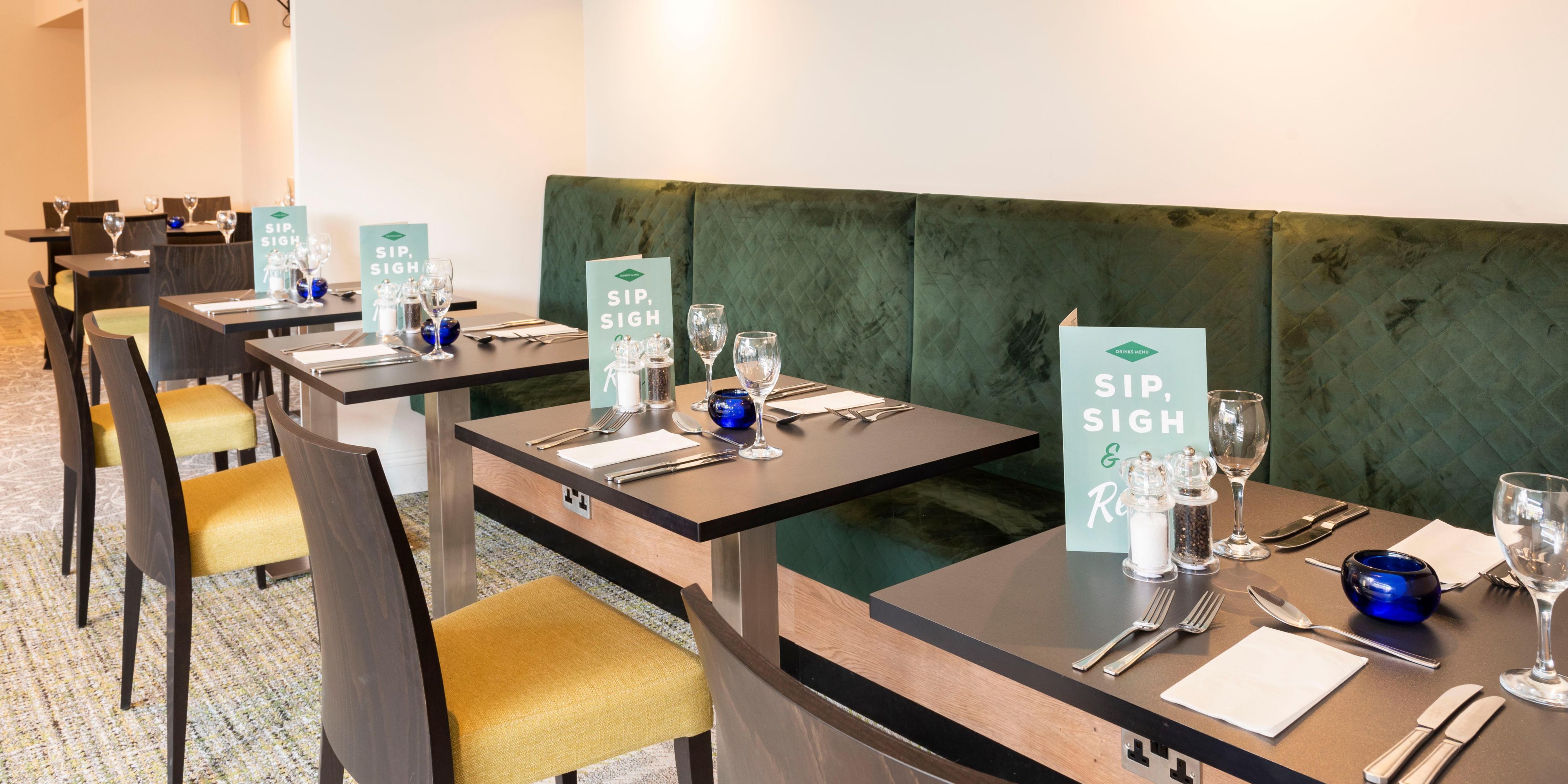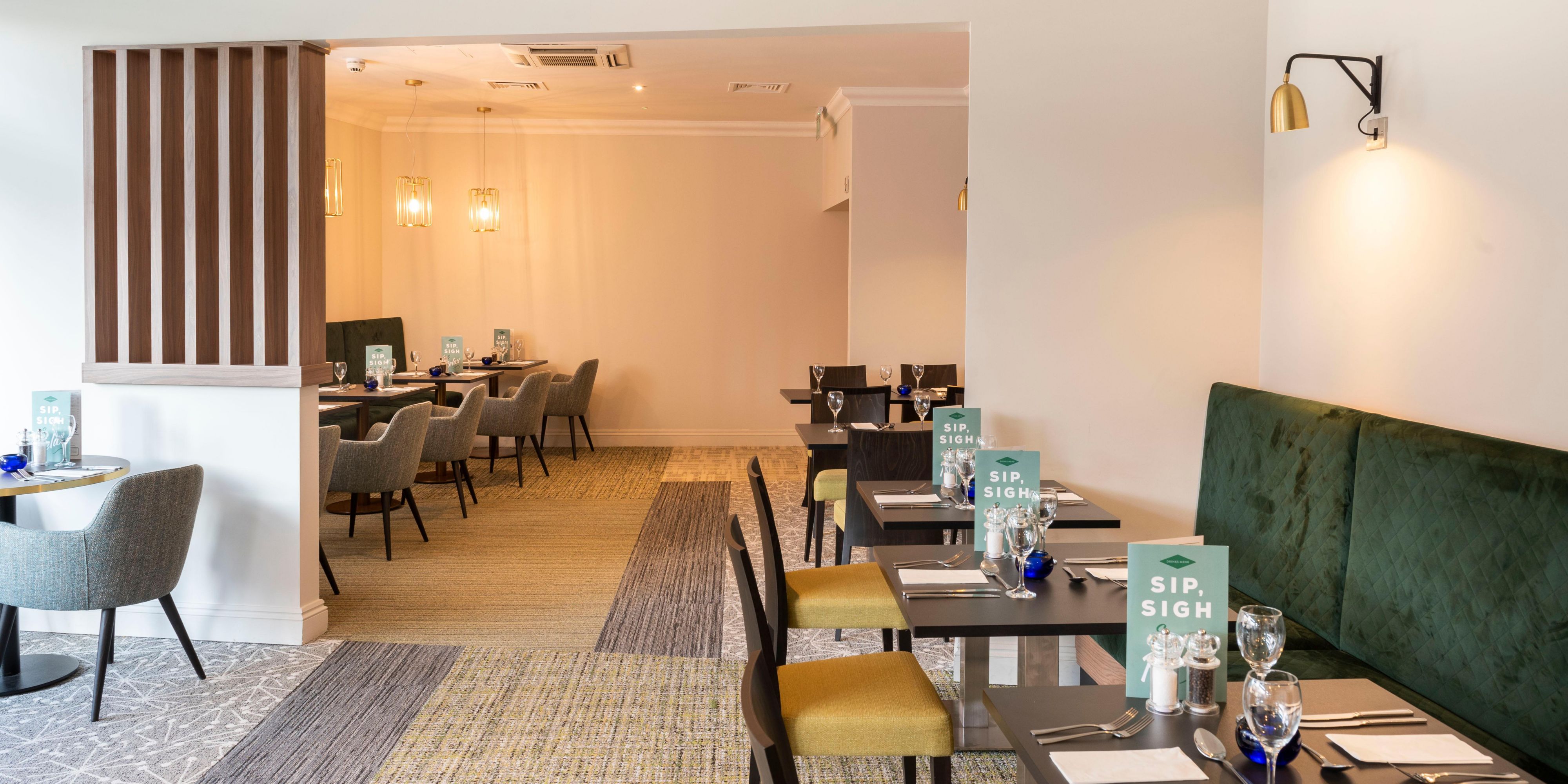 The bright, modern restaurant at Holiday Inn Birmingham M6, Jct 7 offers all day dining with indoor and patio seating. Start your day with hearty breakfast or brunch options, then enjoy a wide range of British classics, stone baked pizzas, global favourites like chicken makhani, and lighter bites. Vegetarian, vegan, and gluten free options are available, along with indulgent desserts and refreshing salads.