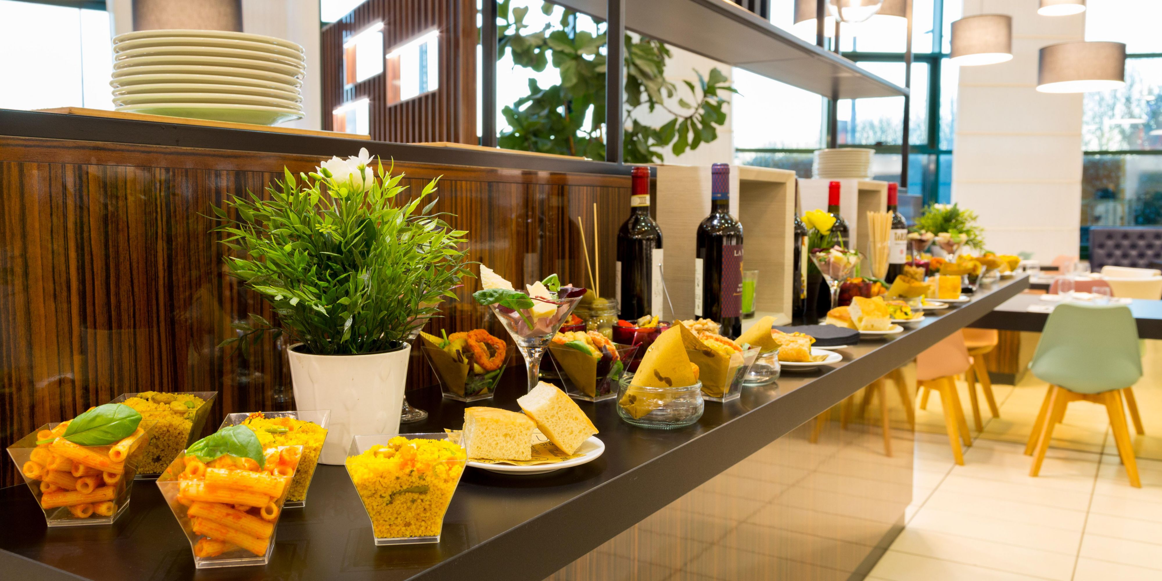 At Holiday Inn Bologna Fiera, our dining services are designed to offer a complete culinary experience, from breakfast to dinner. Our "Spazio Meraville" restaurant caters to every need with dishes made from fresh, high-quality ingredients.