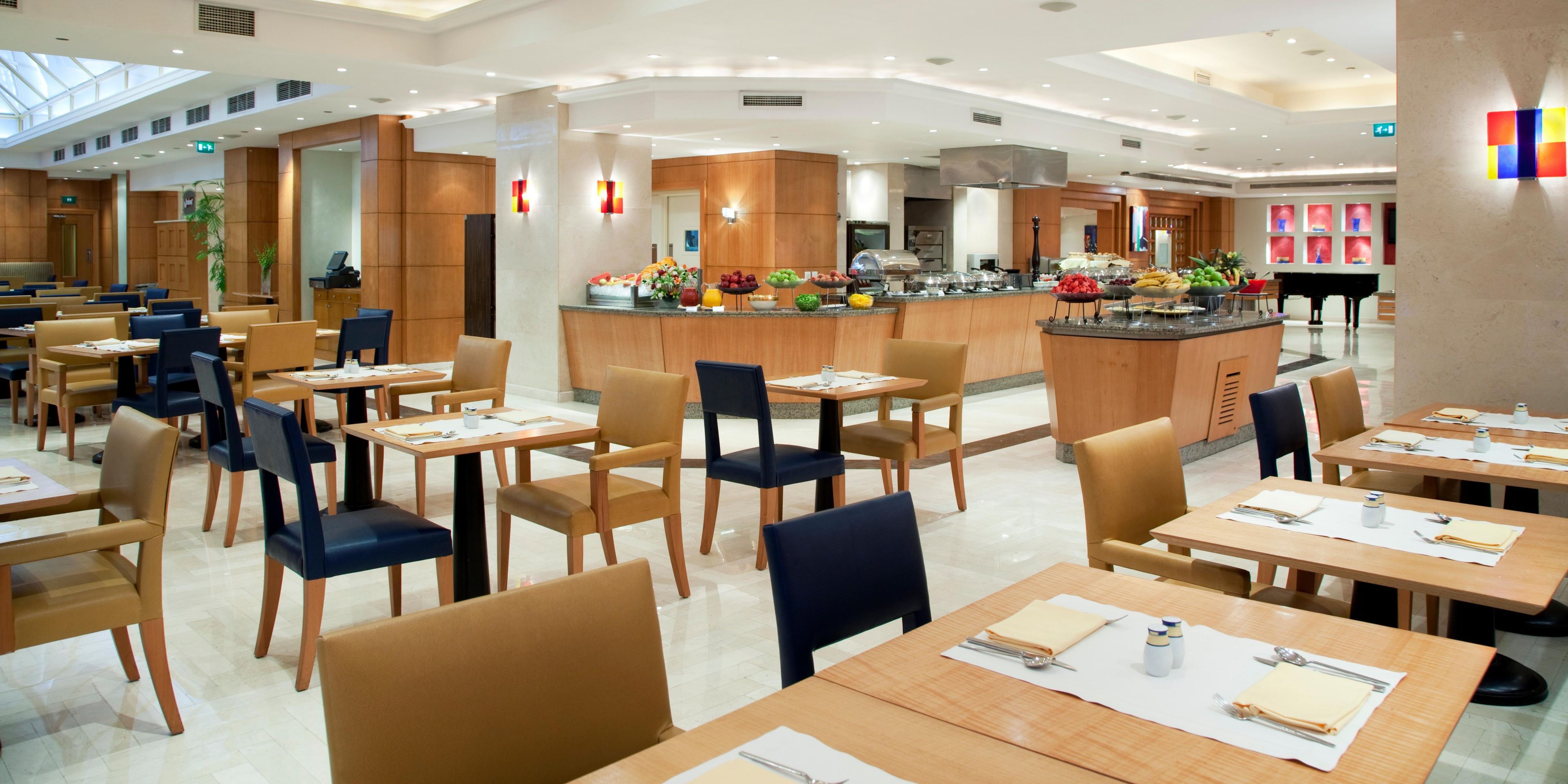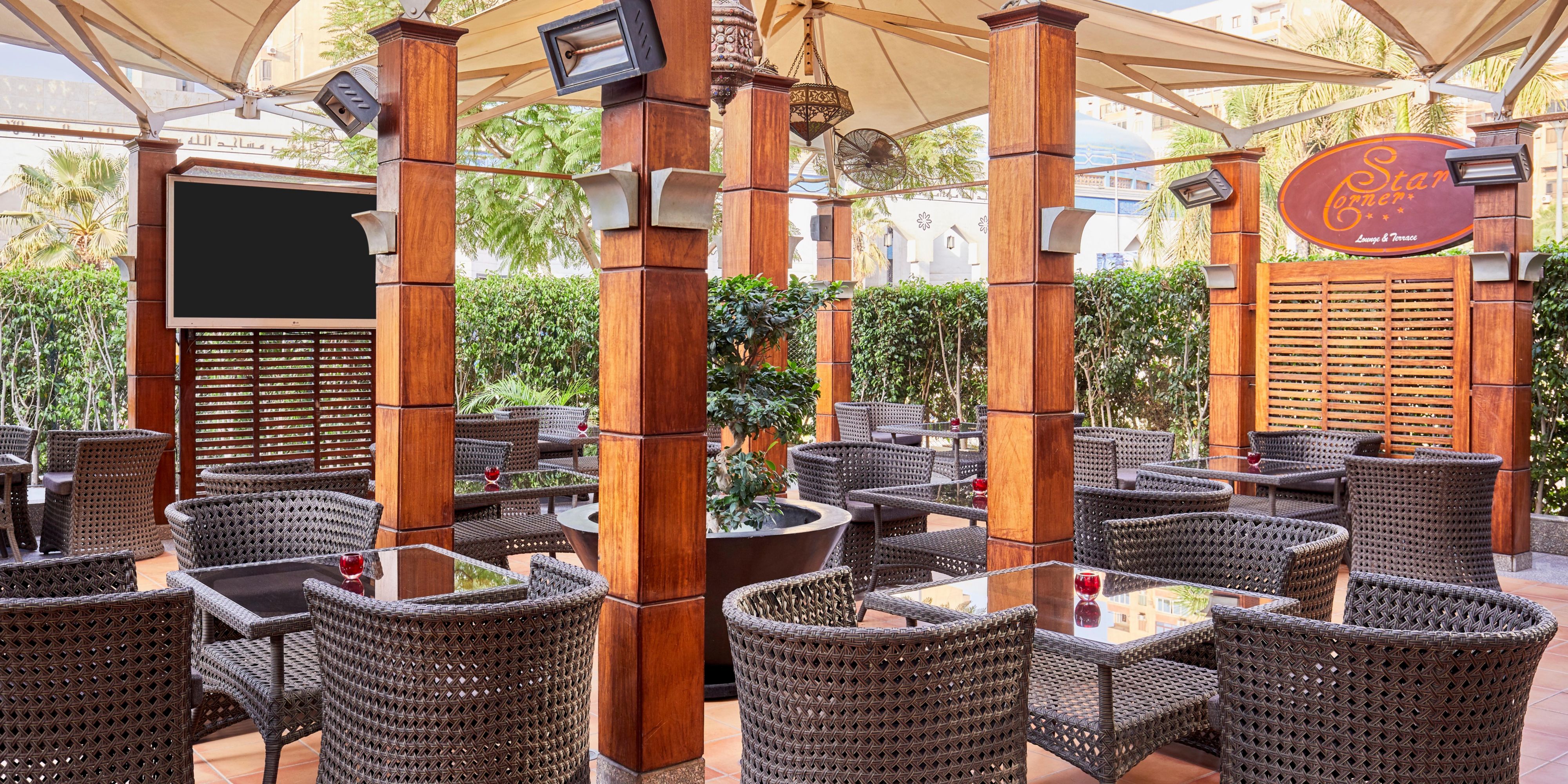 充满现代风格,设有室内和室外座位,是酒店的咖啡厅、酒吧和大堂酒廊,并拥有提供水烟服务的室外露台。