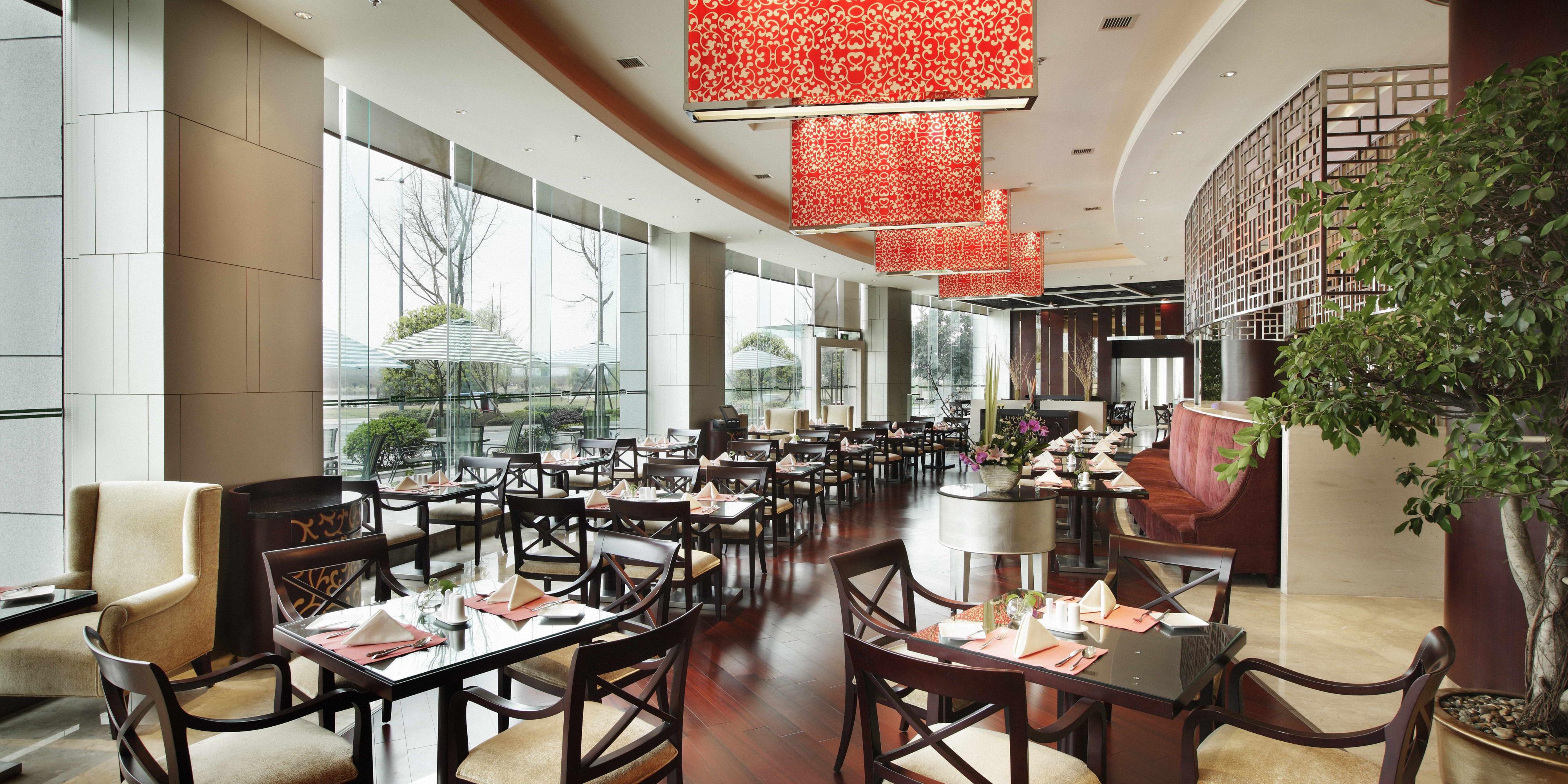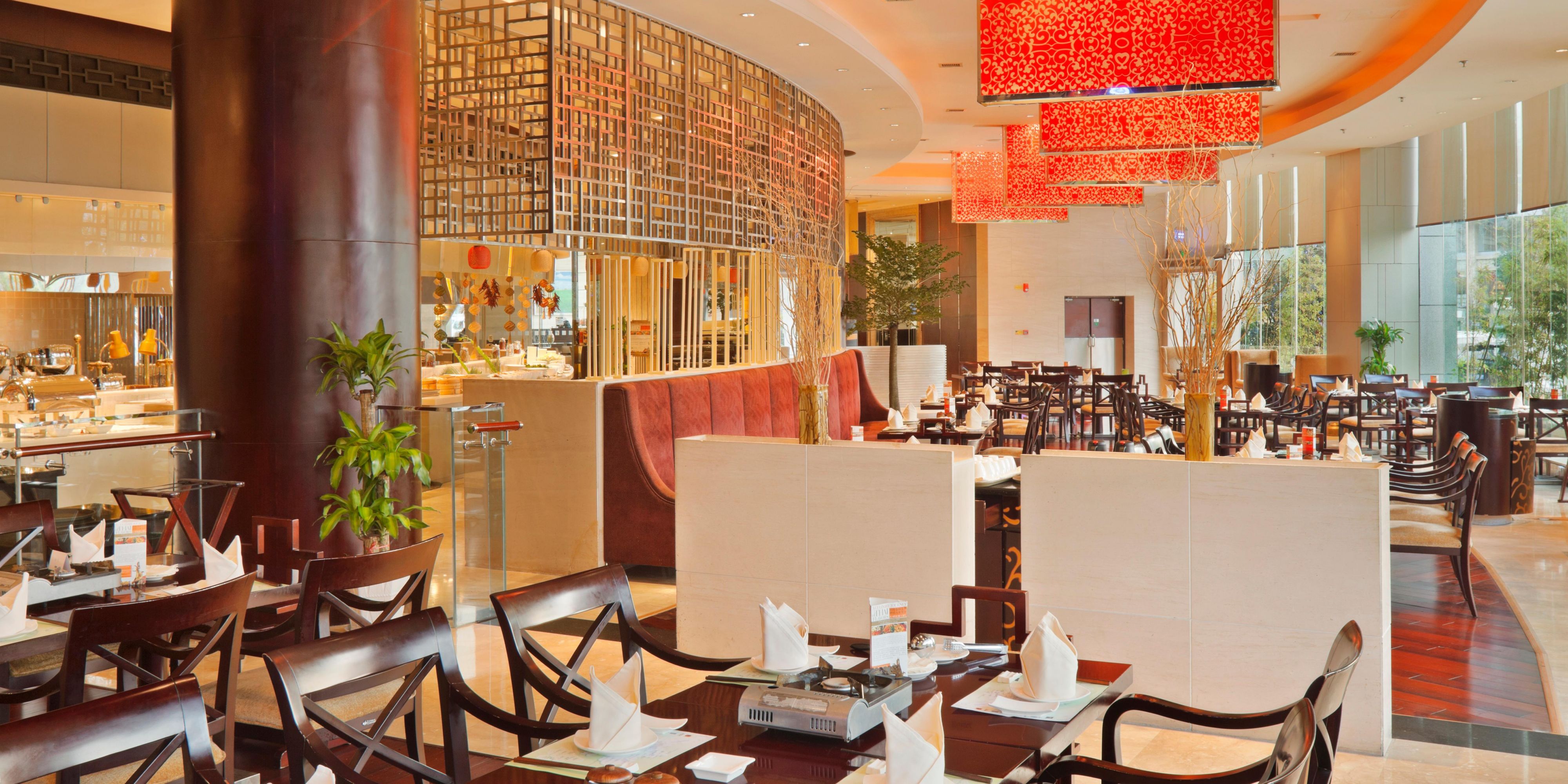 装修风格时尚现代,多个开放式厨房现场烹饪,荟萃西式、中式、亚洲各式自助餐及零点菜肴。