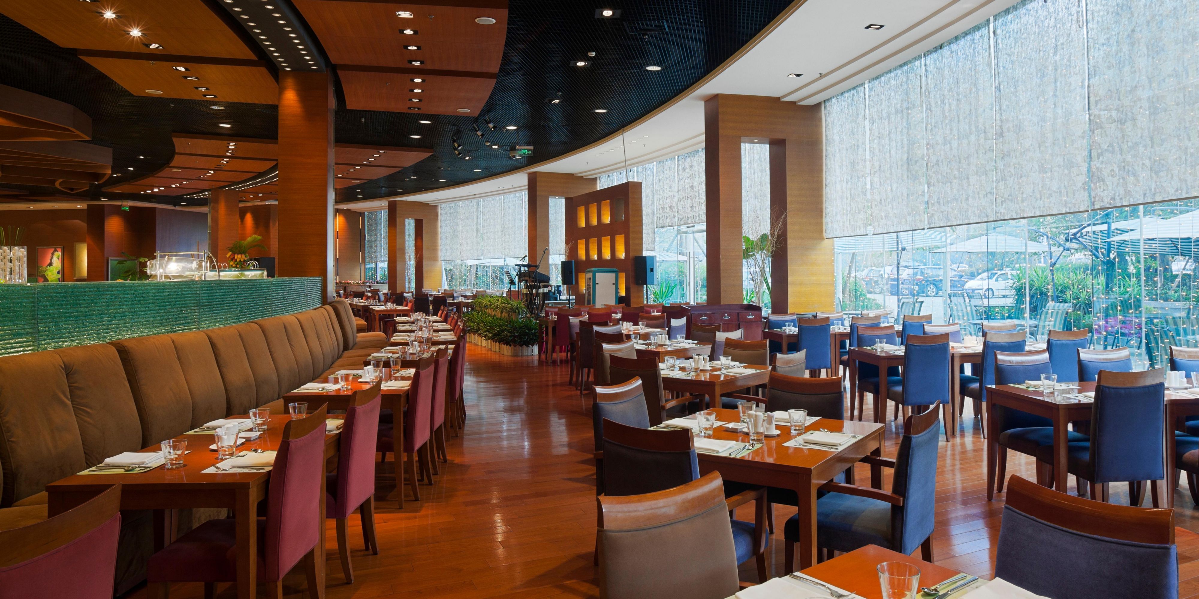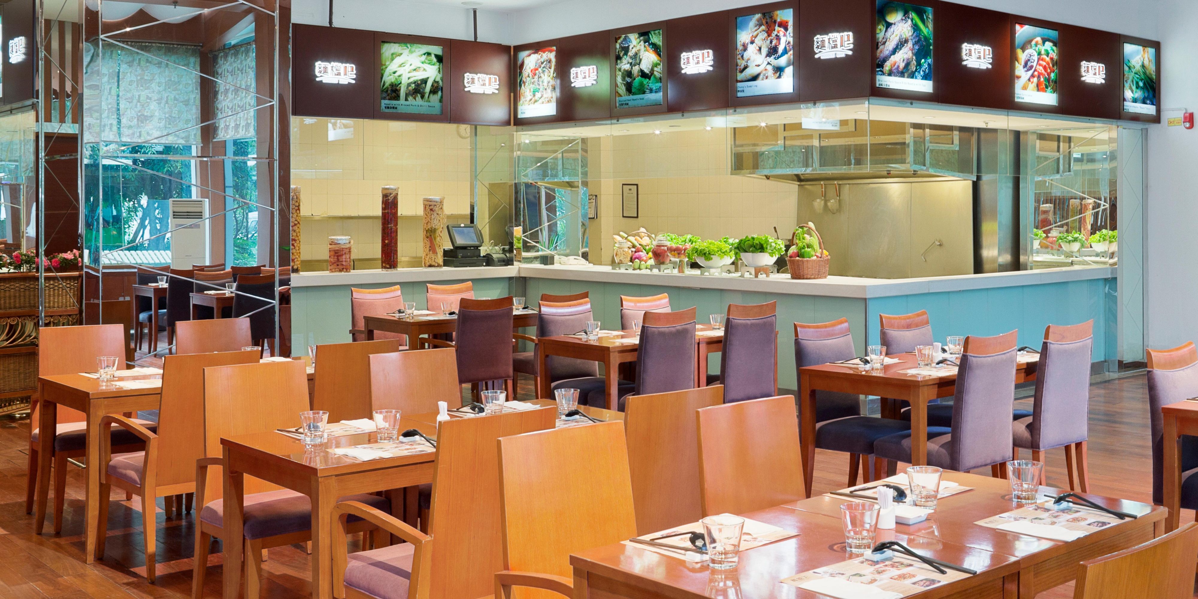 装修风格时尚现代,多个开放式厨房现场烹饪,荟萃西式、中式、亚洲各式自助餐及零点菜着。