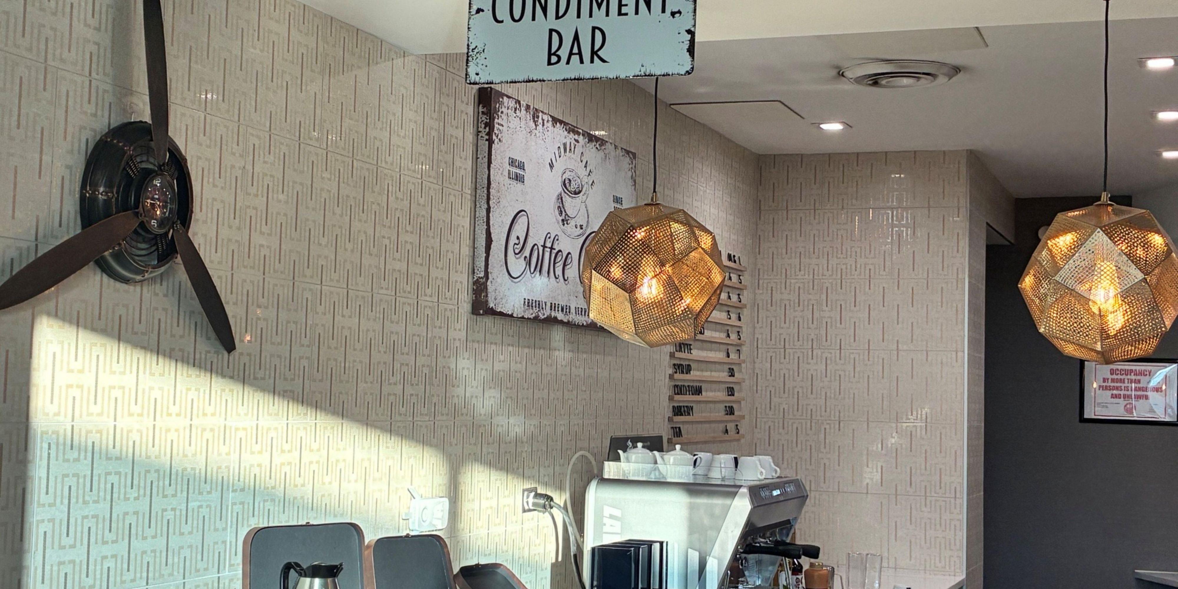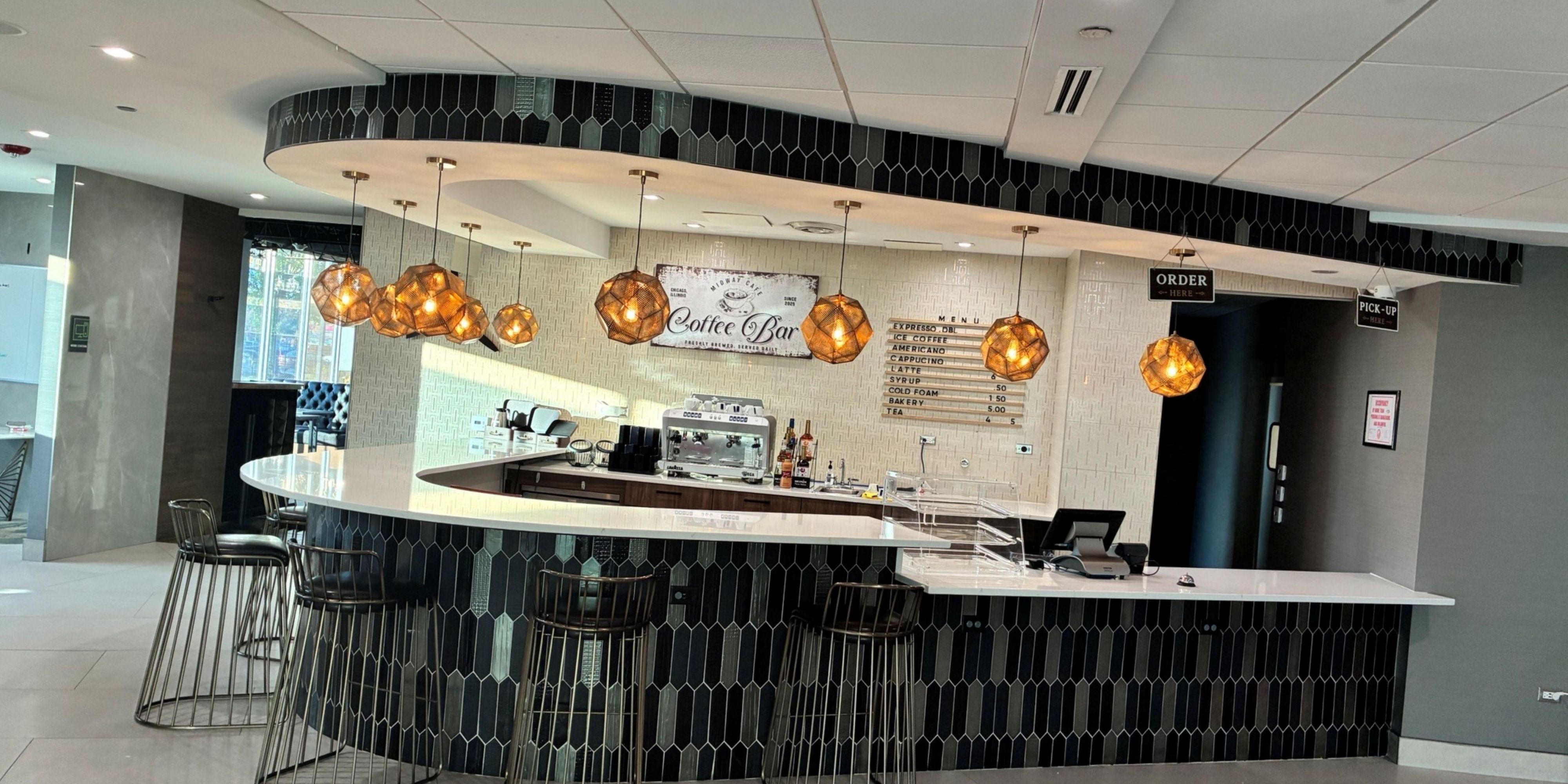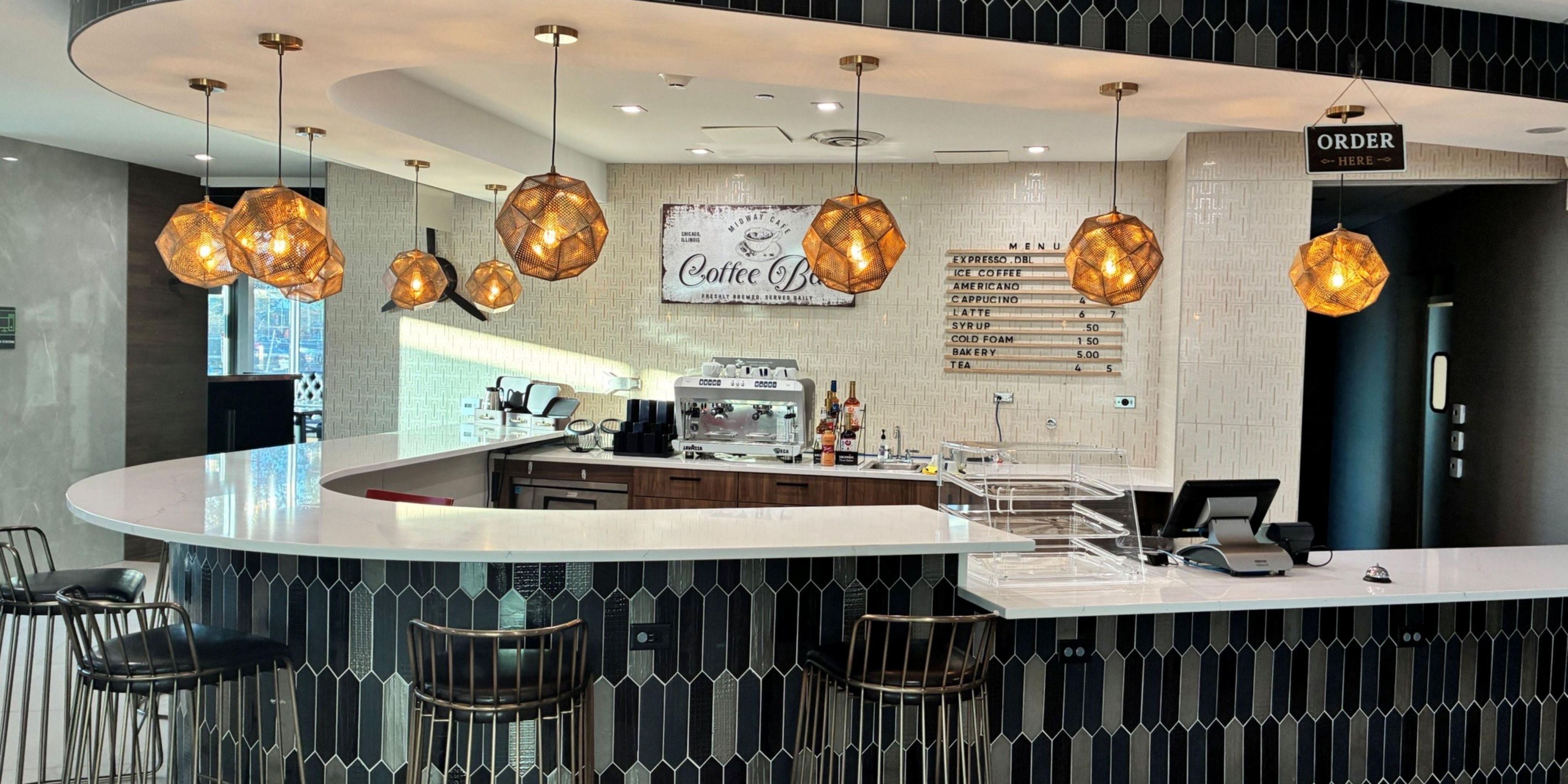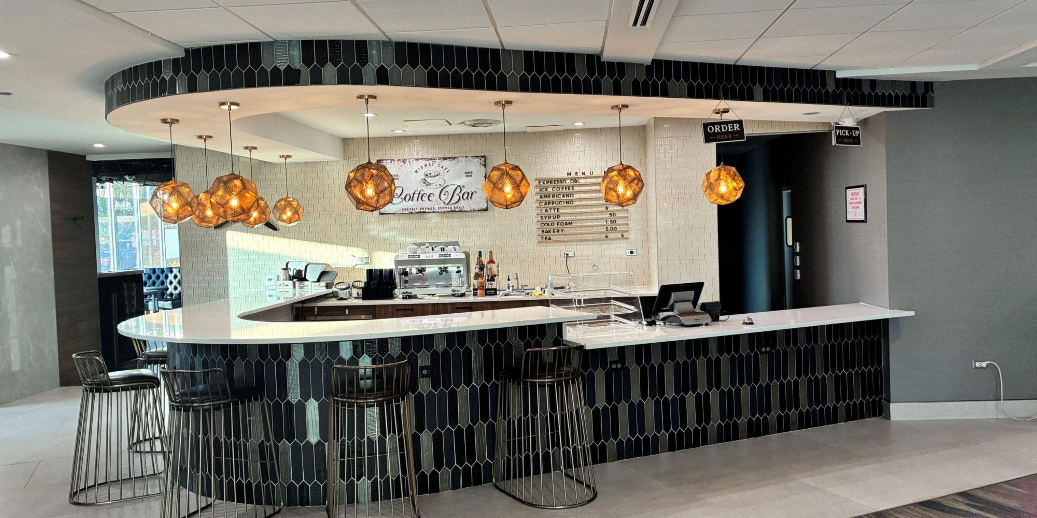 The Midway Cafe is the perfect place to grab a quick, fresh cup of coffee and a pastry to get your day started. Served at a quaint spot within the lobby of our hotel are hot and cold drinks and bites at reasonable prices that will not break the bank.