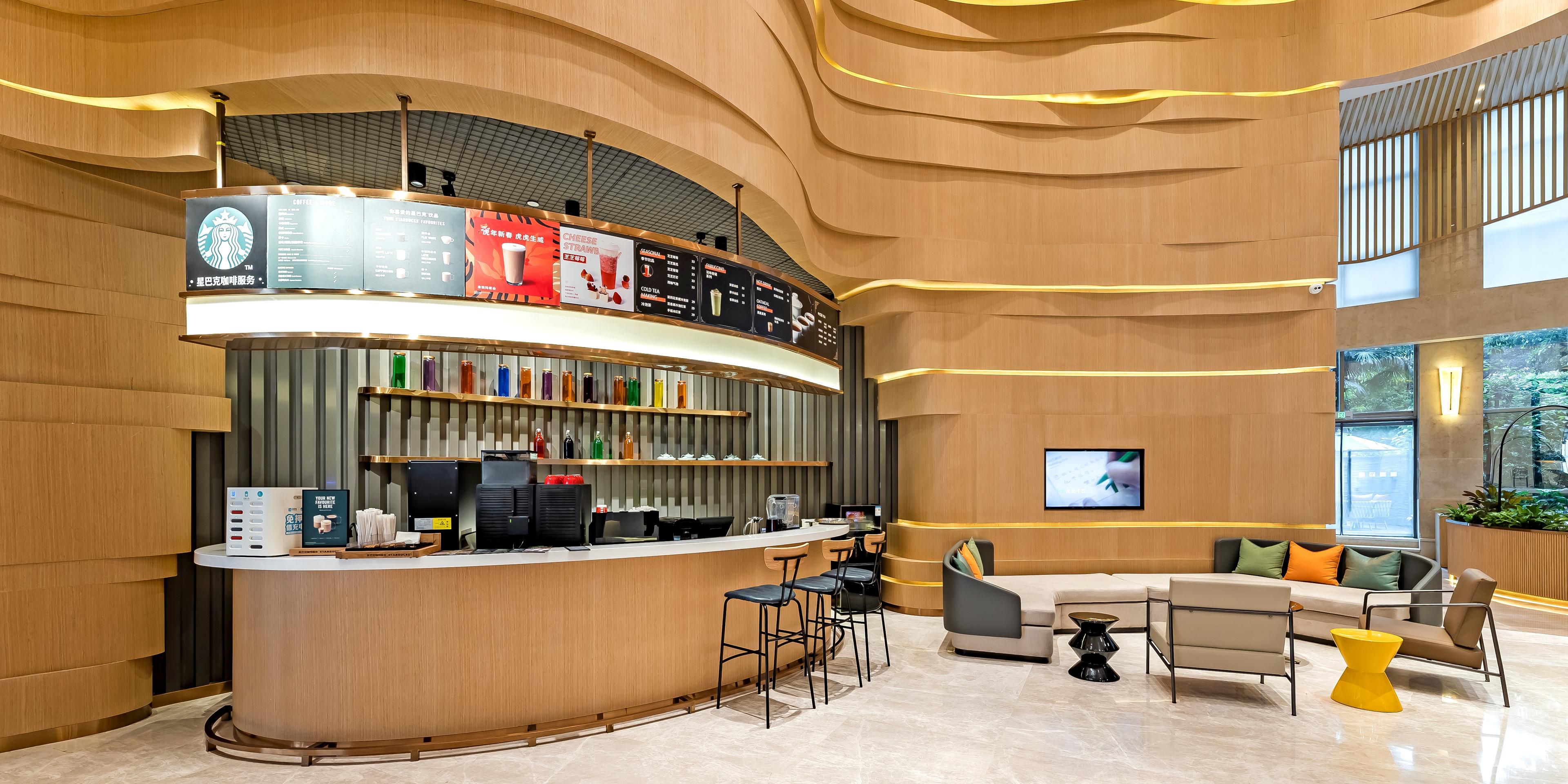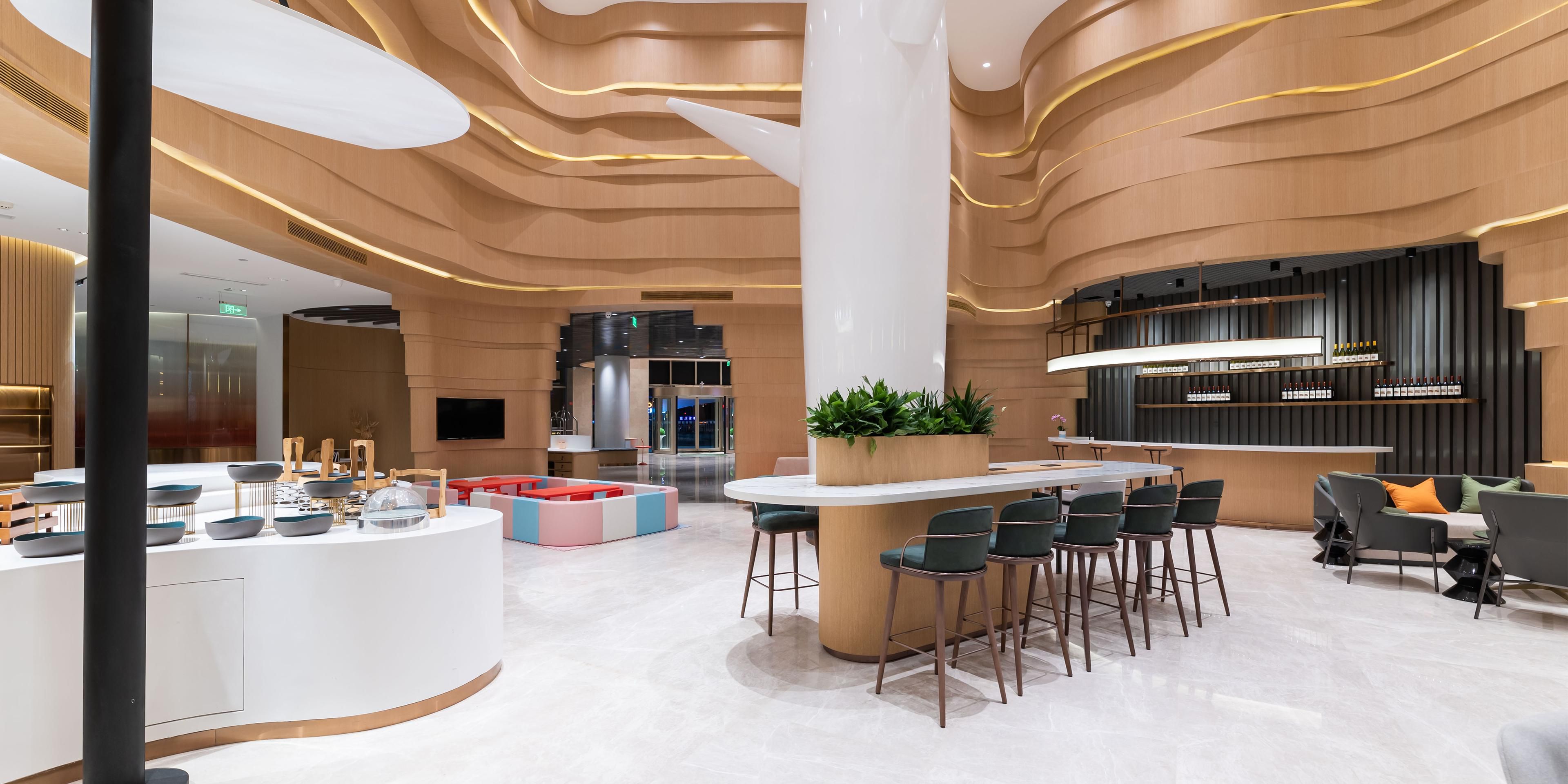 酒店一楼温馨明亮的开放式大堂吧,供应香醇咖啡,特色下午茶,鸡尾酒,葡萄酒等缤纷饮品及精致小食,为您休闲放松或商务会晤增添惬意之享。