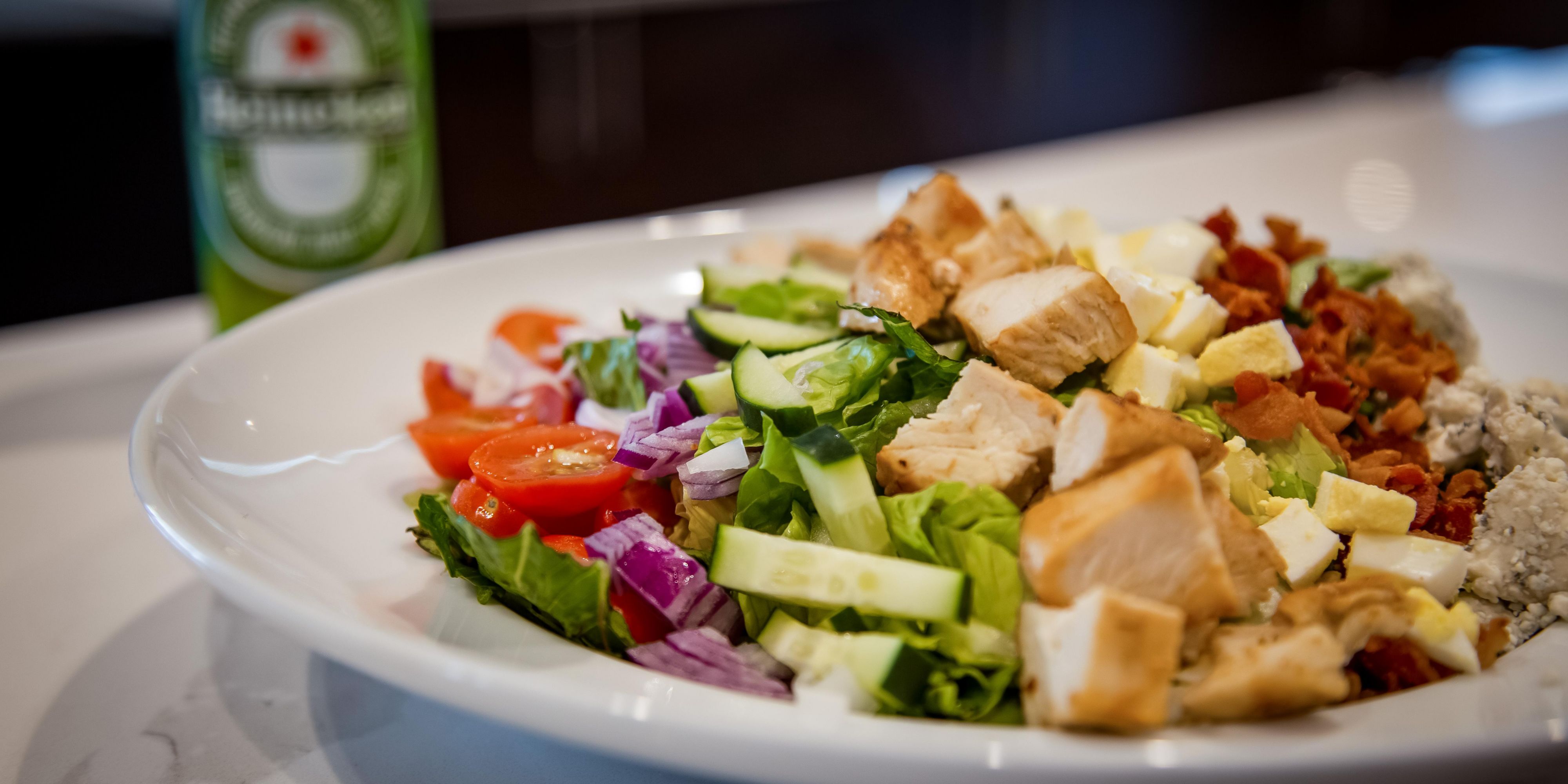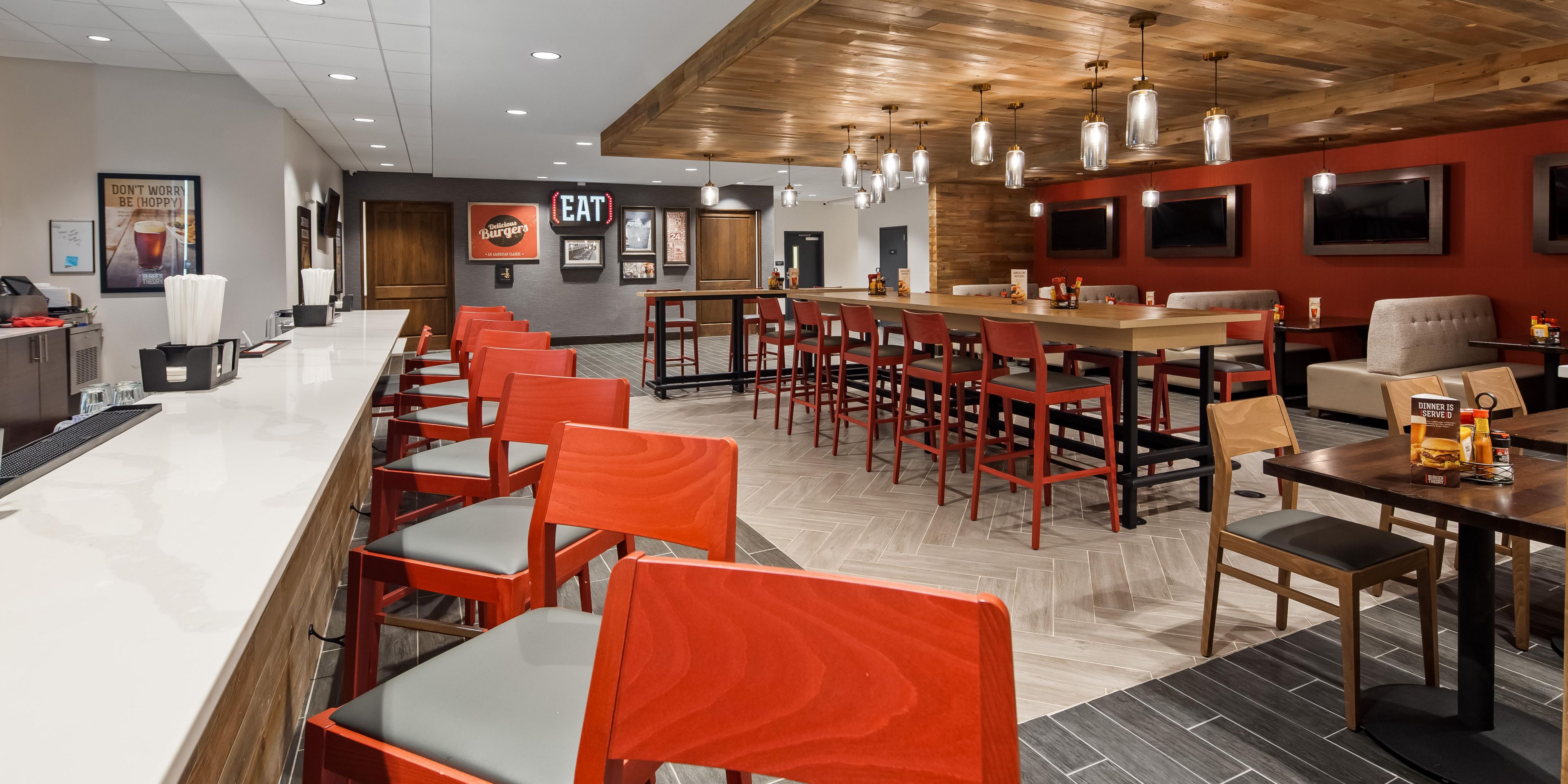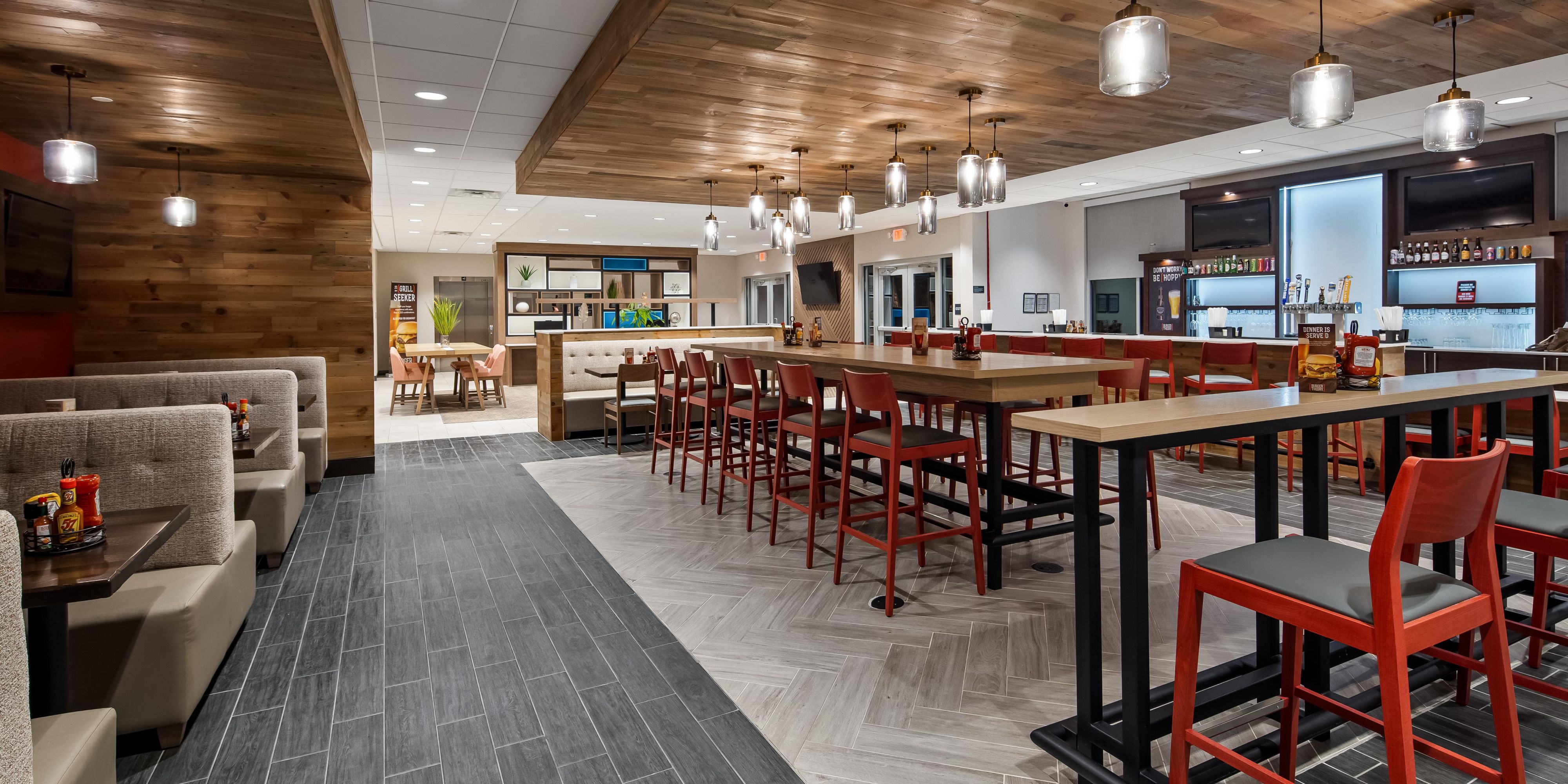 Holiday Inn's signature restaurant featuring American Cuisine, and especially Burgers! Diner's can also unwind at the bar and enjoy a cold draft or mixed drink, or a simple glass of wine. Drop by in the morning and enjoy the Deluxe Breakfast Buffet served daily.