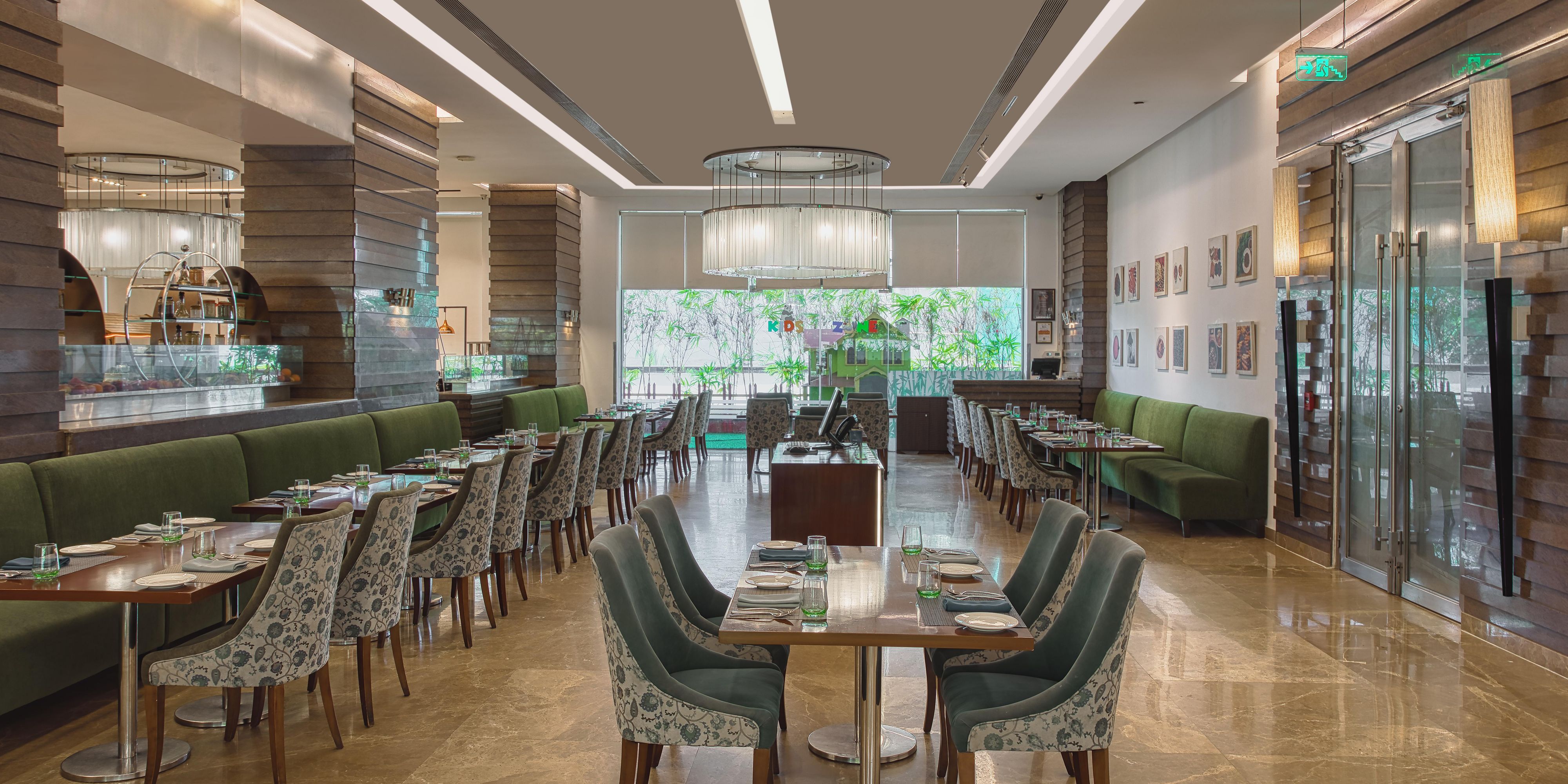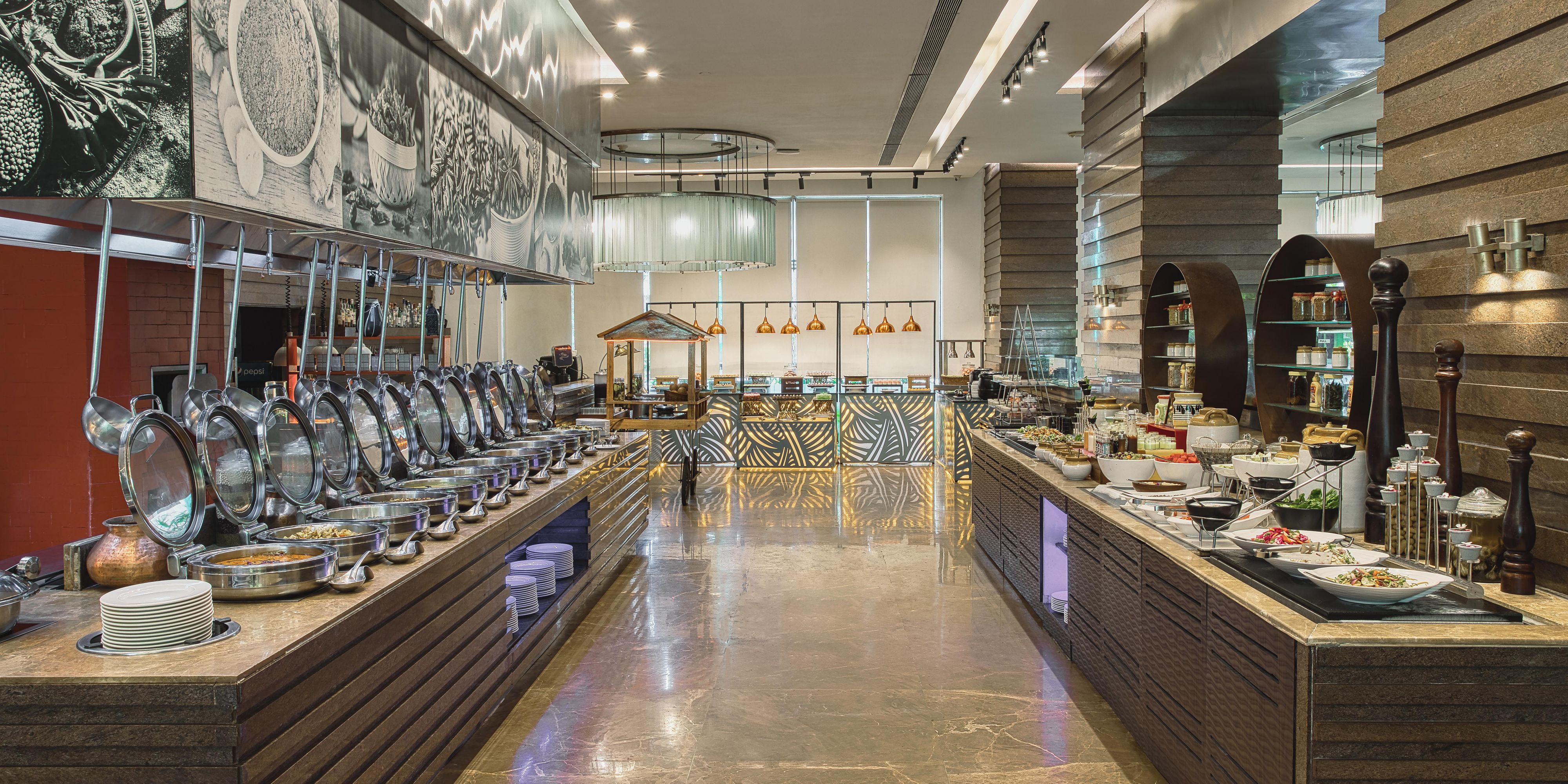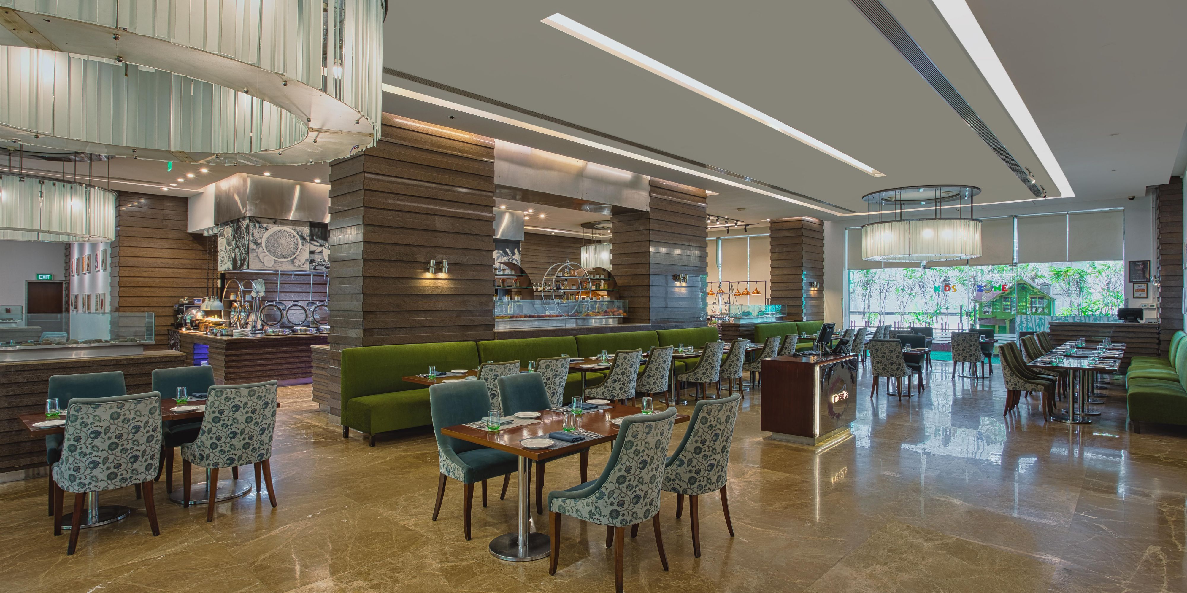 Indulge in a sensory journey at Masala, a restaurant in one of the most family friendly hotels. Ideal for intimate family dining and sophisticated business lunches, the private dining area at the restaurant can accommodate up to 40 guests. Our live food counters offer guests the chance to engage with our expert chefs whilst watching them create delectable dishes. While the aroma of BBQ fills the air, there is also a kids zone and a kids themed menu that caters to the pickiest eaters.