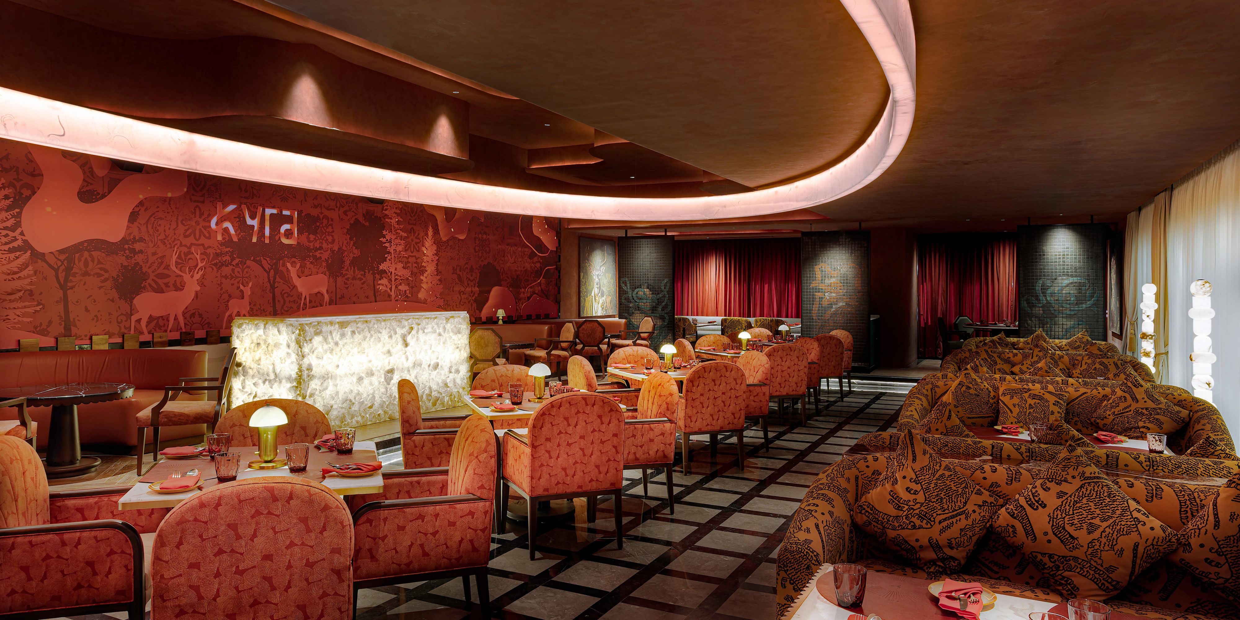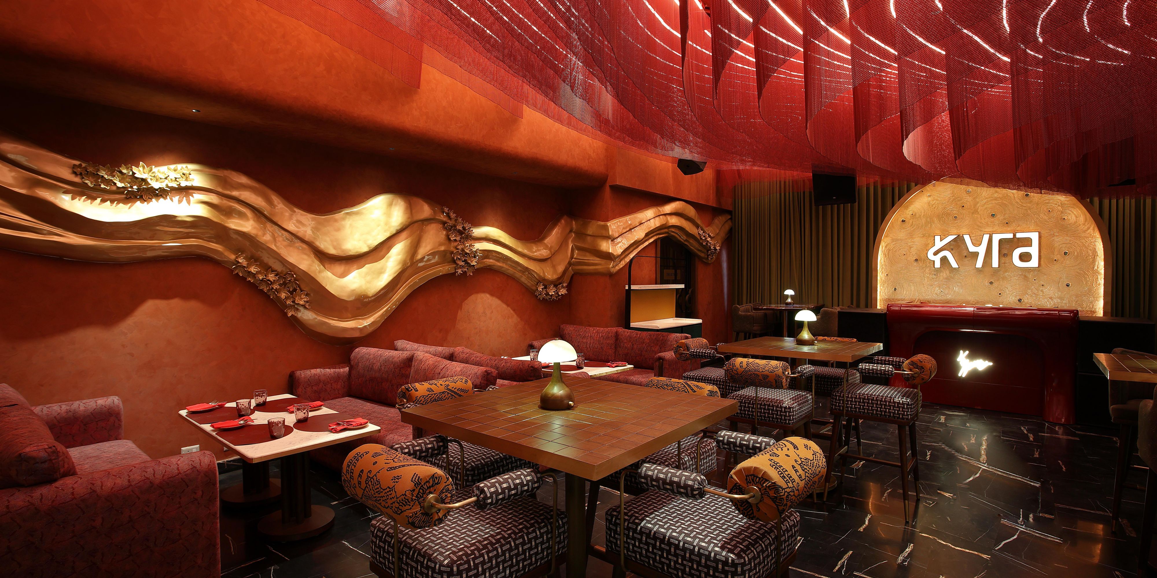 KYRA is a Greek and Persian restaurant in Kochi inspired by ancient feasts and fire led cooking. Featuring communal dining, bold flavors, and immersive design, KYRA combines heritage cuisine with a refined modern dining experience.