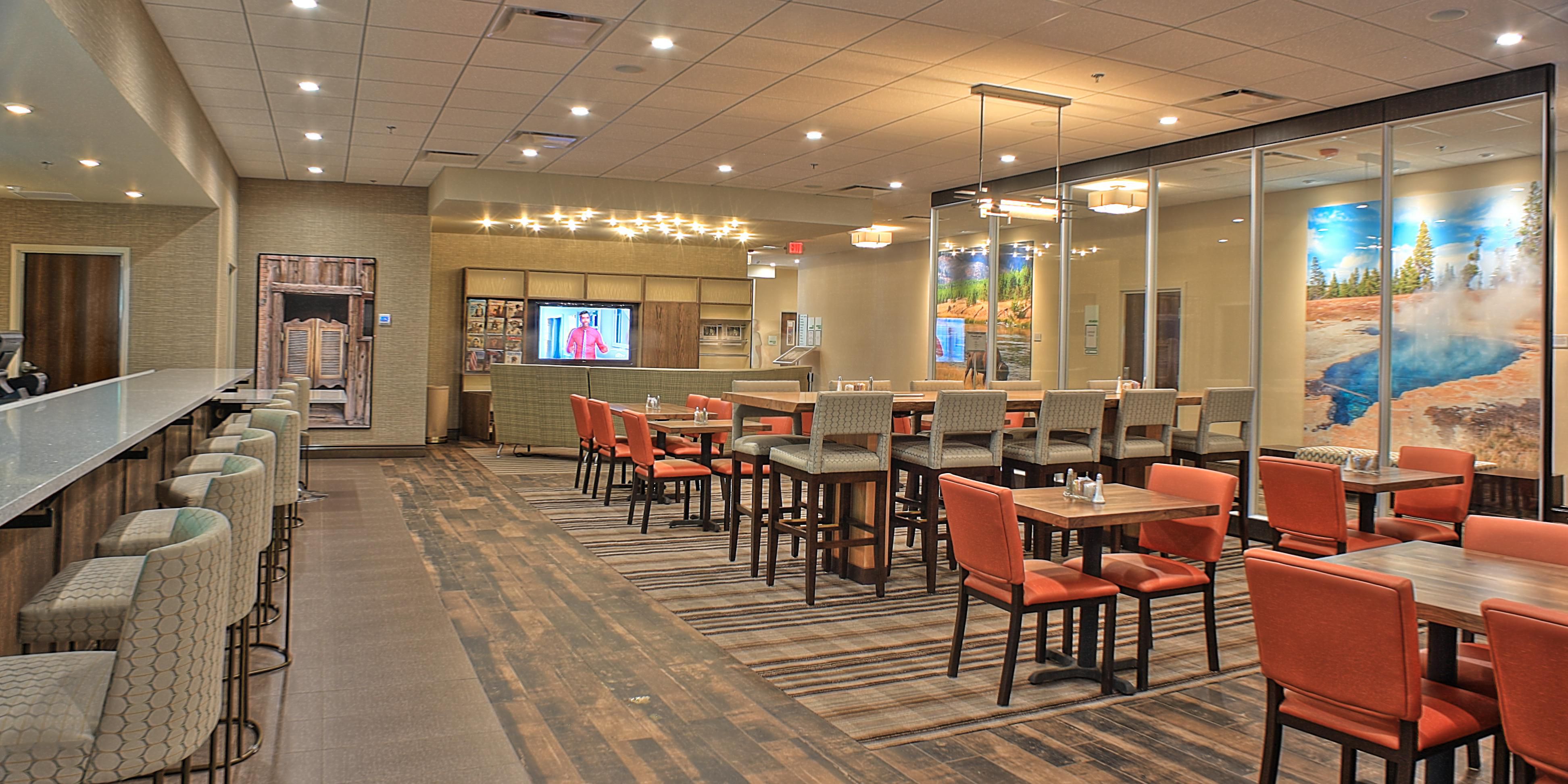 Located within the hotel, "Bottom's Up Lounge" provides a fun environment to unwind after a long travel day, or a place to network with co-workers. Friendly service combined with a wide variety of beer, wine and spirits makes for a great time at Bottom's Up! Please note that Bottoms Up is closed on Sundays October thru April.