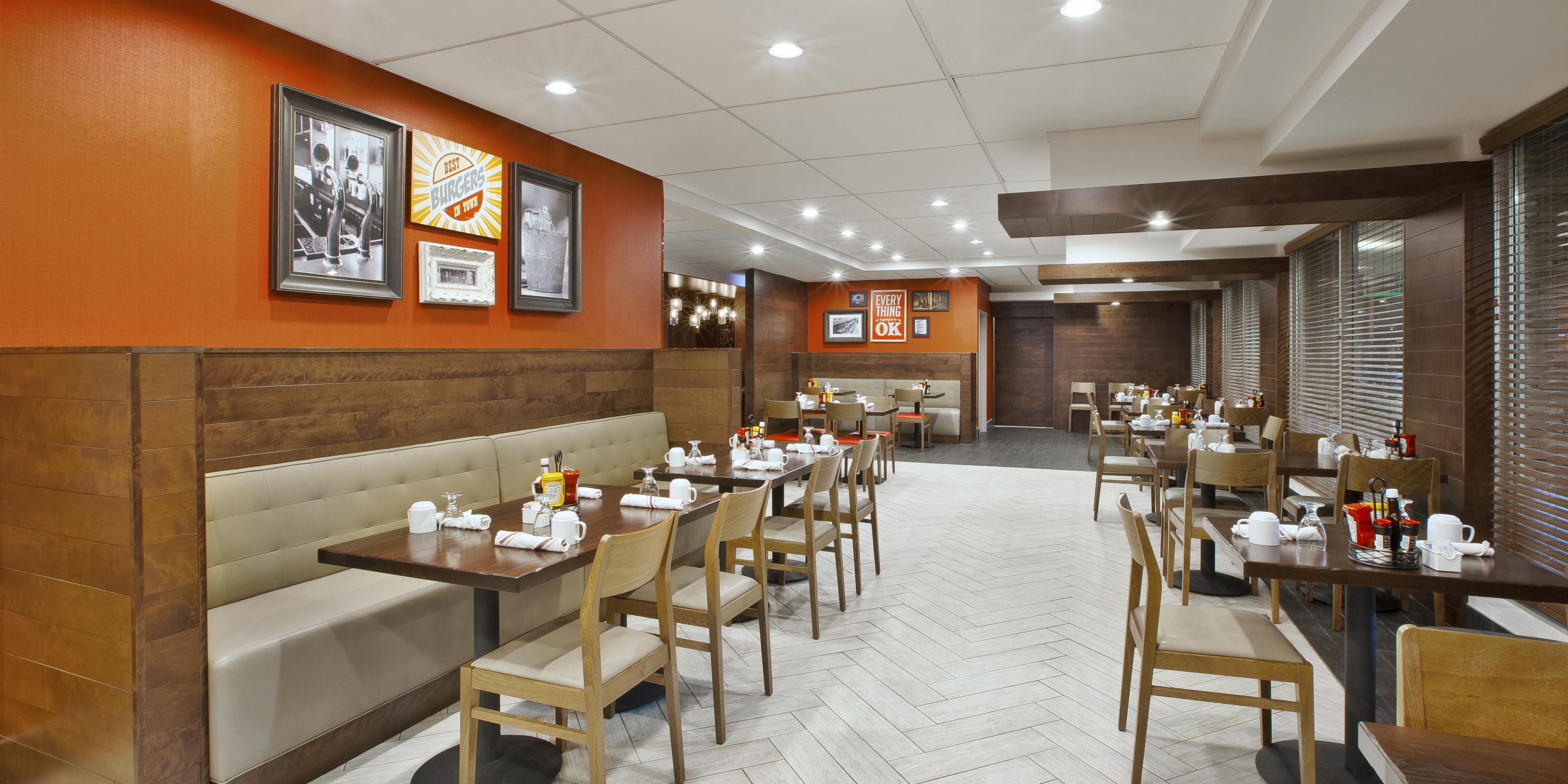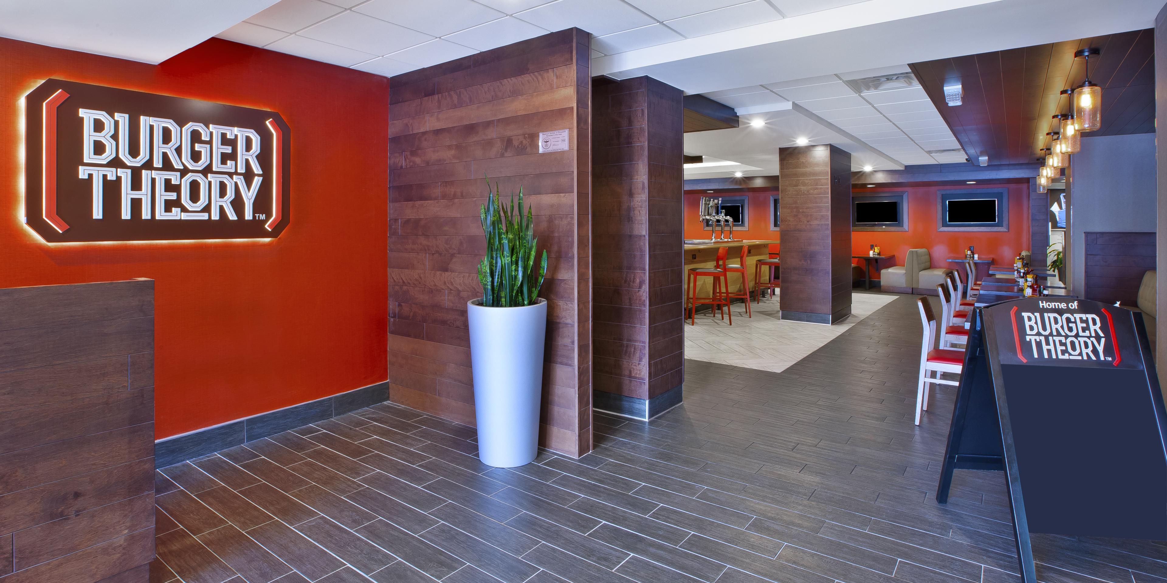 Enjoy a flavorful dining experience at Burger Theory, where kids under 12 eat free! Savor mouthwatering burgers, sandwiches, crisp salads, and pizzas, or get creative with our Build Your Own Burger menu featuring over 4,000 unique combinations. Pair your meal with a cocktail or draft beer from our full bar and catch the game on one of many TVs. Burger Theory is perfect for families and guests seeking delicious meals without leaving the hotel.