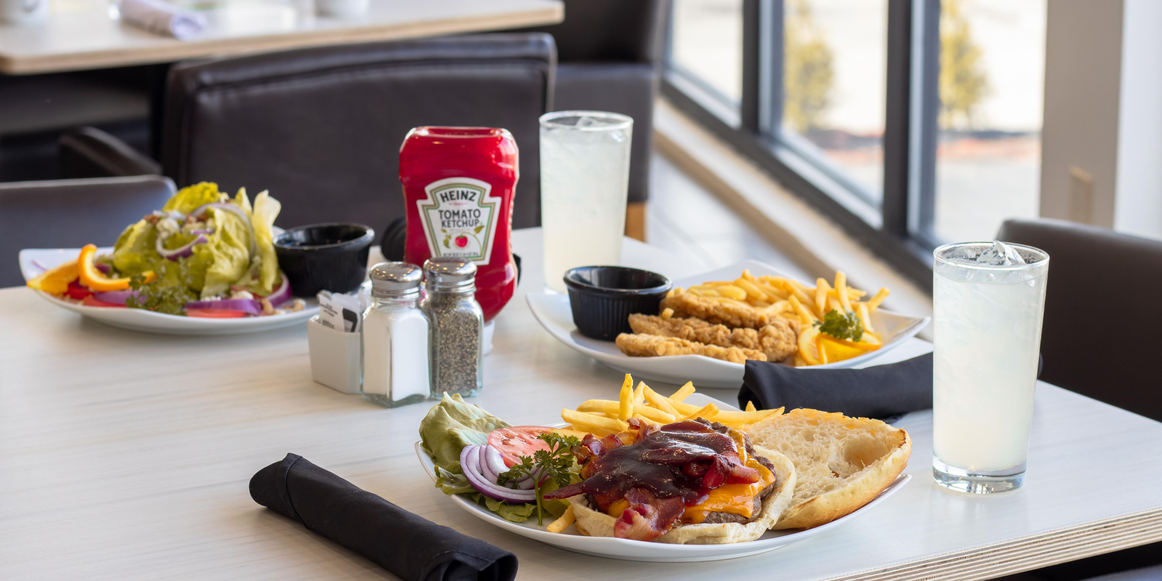 Our restaurant serves breakfast & dinner daily along with a great Happy Hour every Friday 4pm-8pm serving 1/2 price drinks & appetizers.
