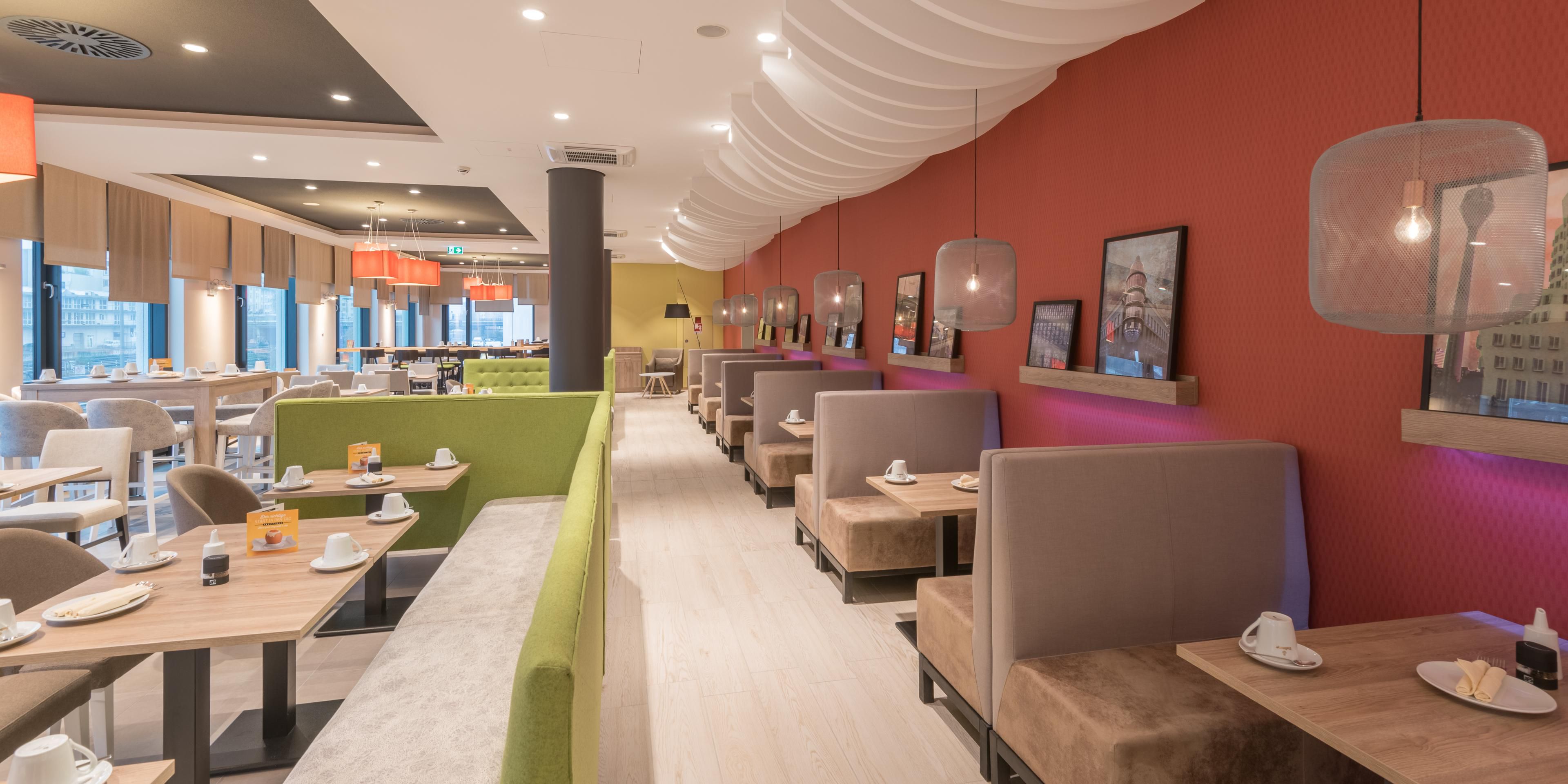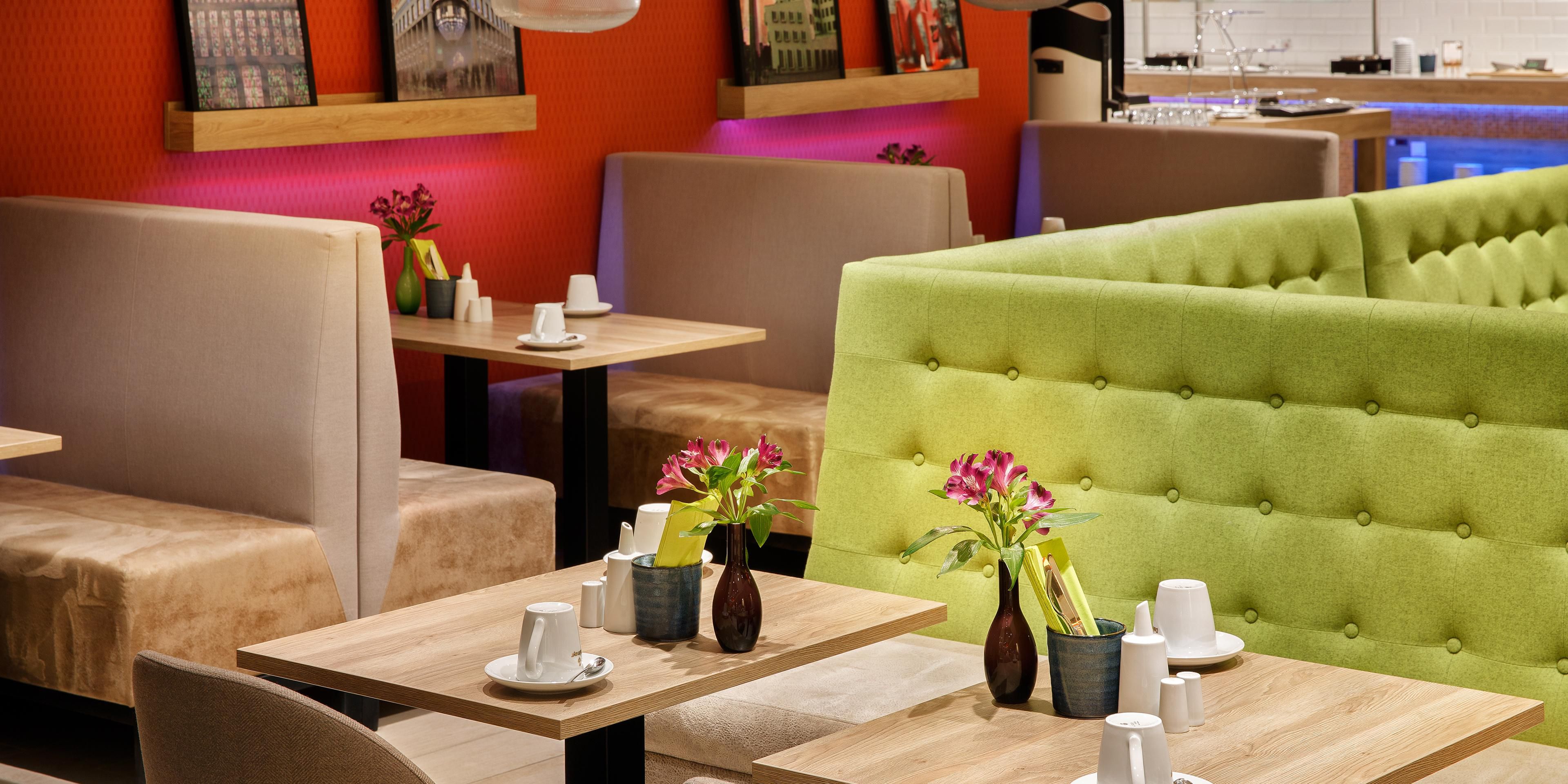 As a part of our Open Lobby is our restaurant Toulouse which offers many space for consumption. Inspired by an American diner we serve you a selection of our delicious home made burgers as well as Holiday Inn Signature dishes and other regional dishes. Some of our dishes can be prepared gluten free or lactose free. We also offer vegetarian food. Food that makes you feel at home when you are on the move.