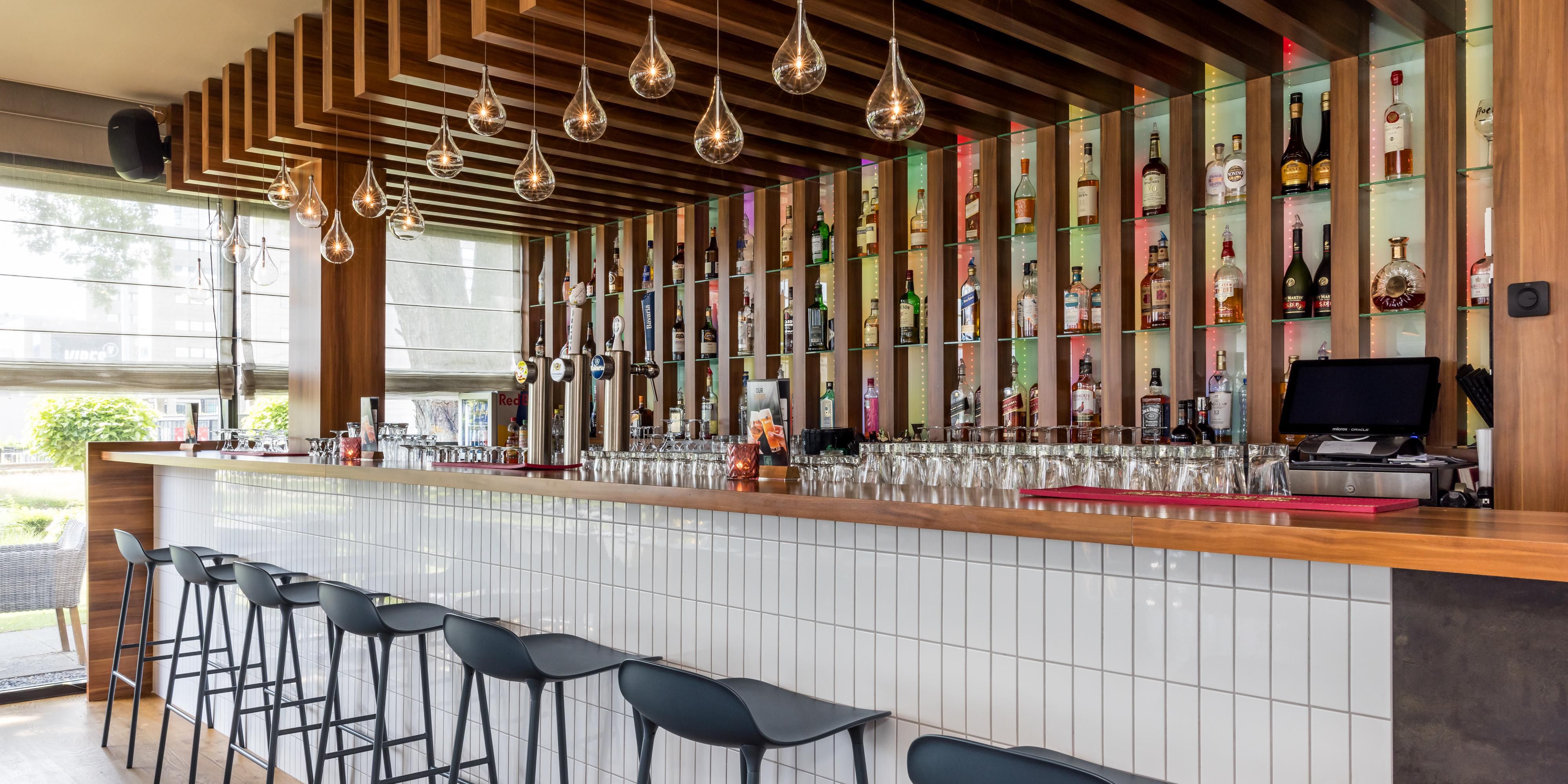 Our bar has a warm and attractive ambiance with soft seats and a cozy open fireplace. With business amenities like wireless Internet and various wall sockets, you can choose to work here in a relaxed atmosphere but also for a drink after your meeting or training. Have a bite or a (business) appointment, our bar is the right place to be!