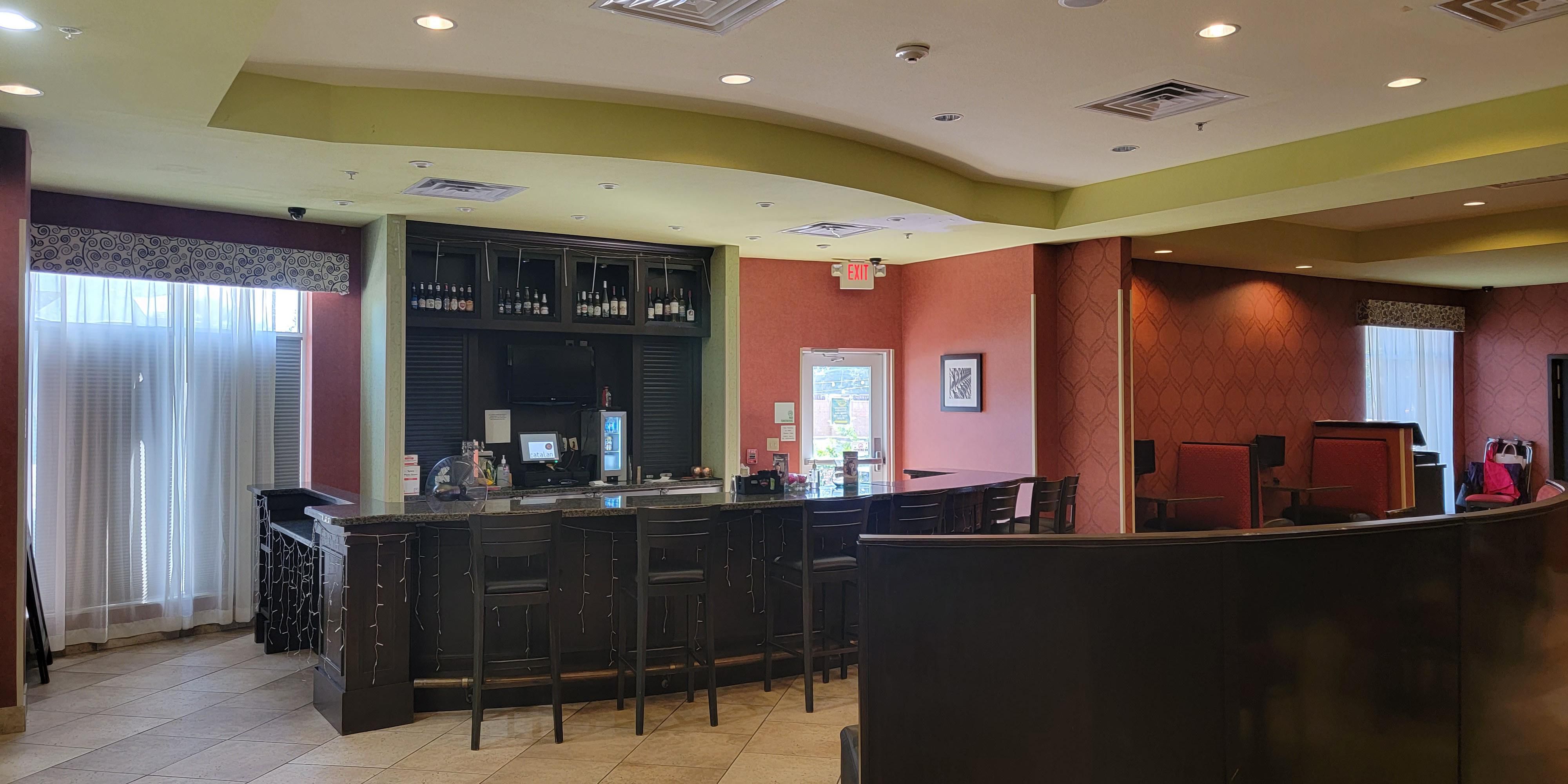 Casual setting bar with Happy Hour every Monday evening 5PM until 7PM. Full food menu available to order while enjoying your beverage of choice. Each table has it's own small TV available.
