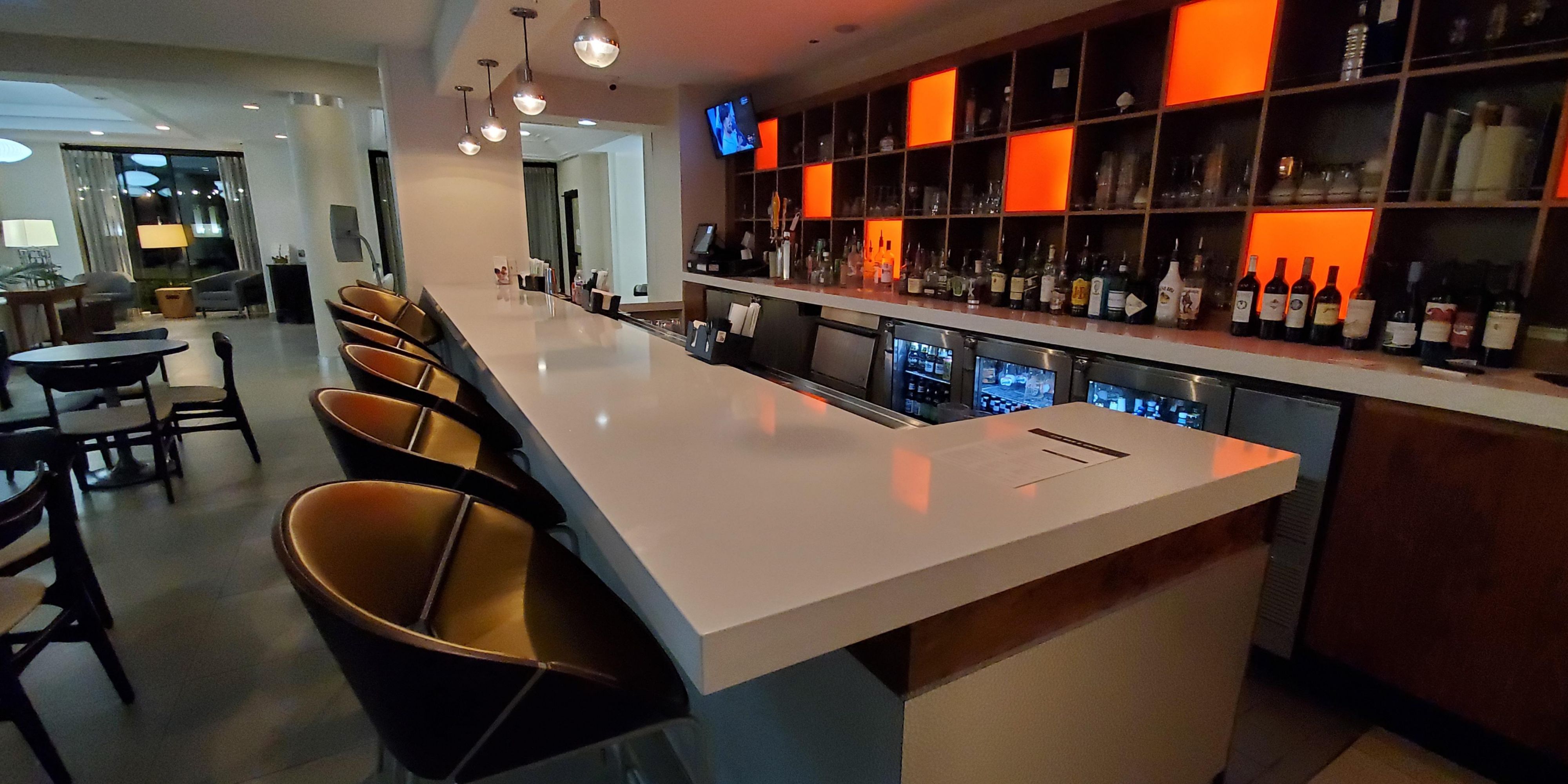 Fresh hot buffet breakfast upon purchase and evening appetizers with full bar service everyday at The 110 Bar.