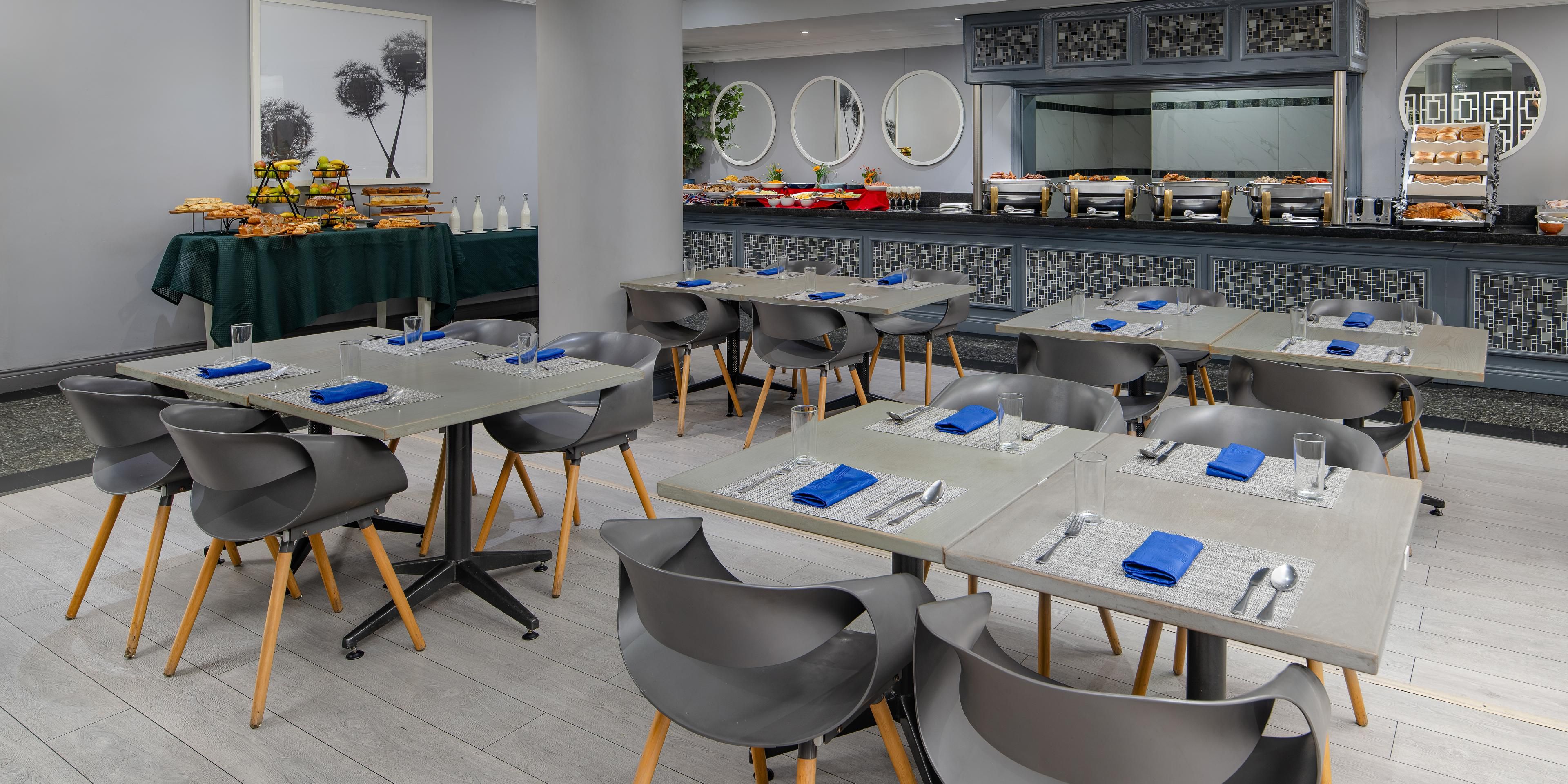 约翰内斯堡机场假日酒店的中庭餐厅提供时尚的用餐体验,无论是商务宴请还是浪漫晚餐,这里都是理想之选。酒店将现代南非美食融入了地中海风味,美味让人难忘。酒店的自豪之处,在于精心选用当地农产品、天然饲养的肉类和新鲜海鲜。在闲逸舒适的酒吧,为您的用餐体验画上一个完美的句号,这里的鸡尾酒混得恰到好处。