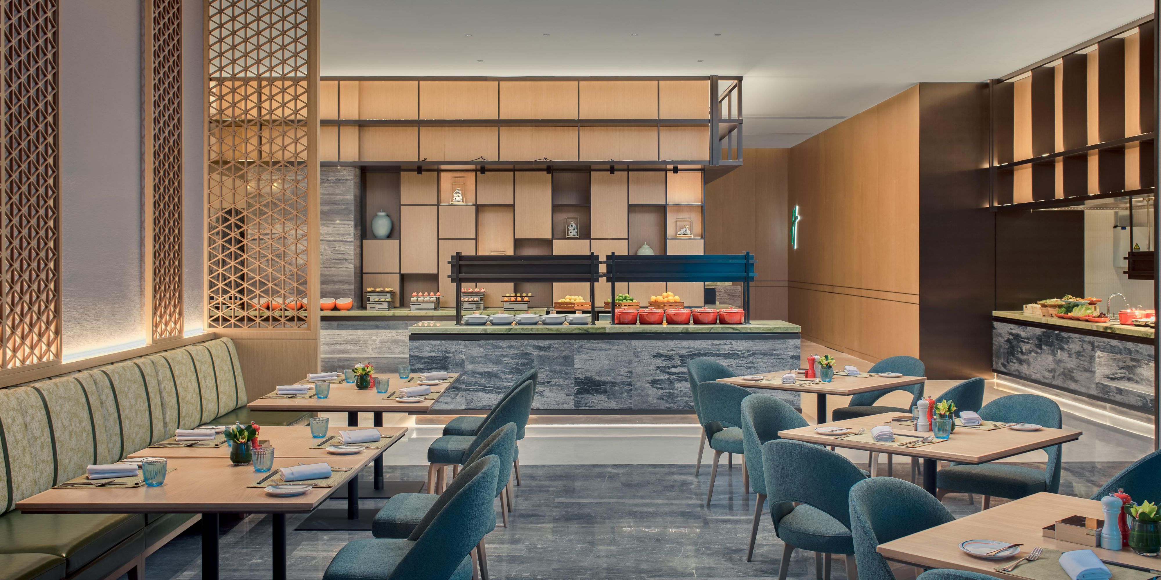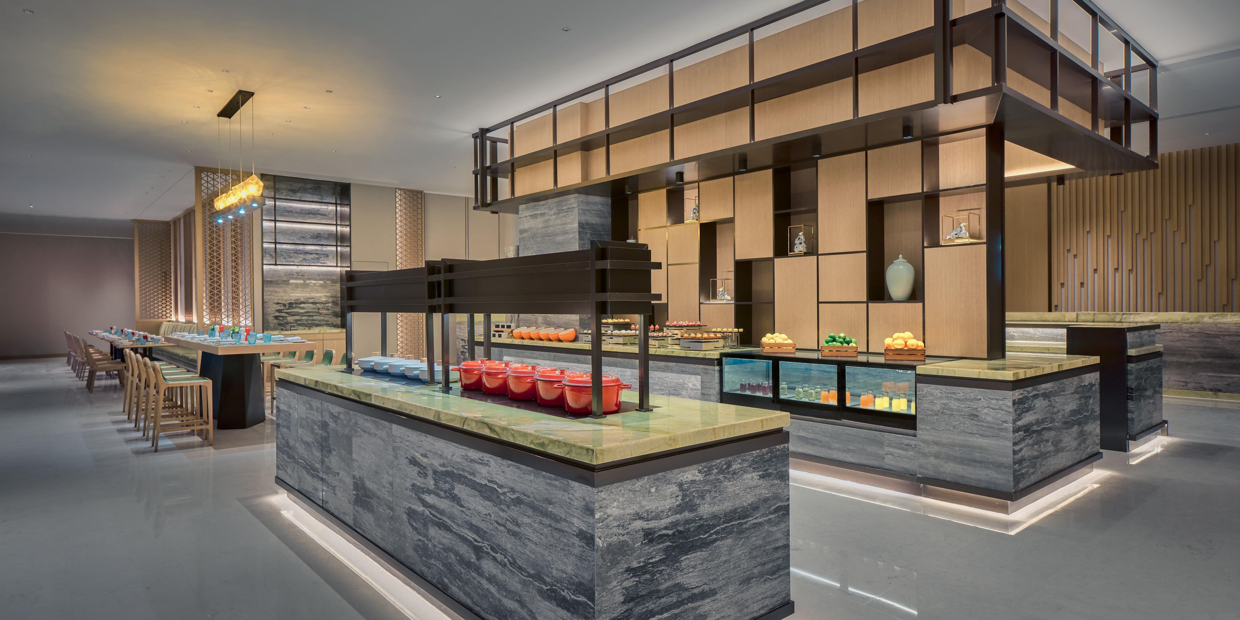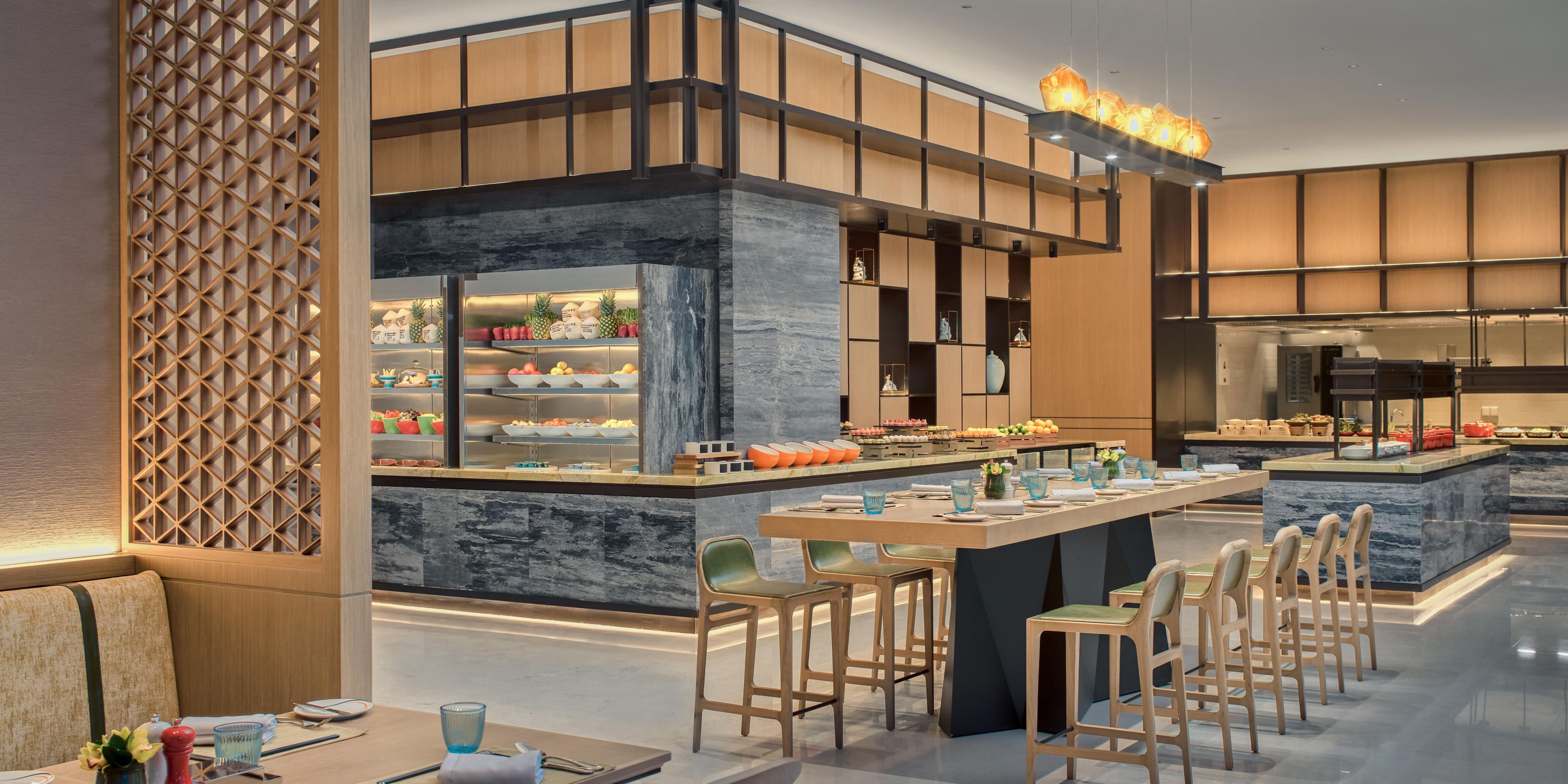 全日餐厅宽敞明亮,提供自助早餐和定制主题套餐。美食中融入独具特色的假日品牌笑脸元素,让您在清雅时尚的氛围中时刻感受欢乐与活力。早餐用餐时间为6:30-10:00。
