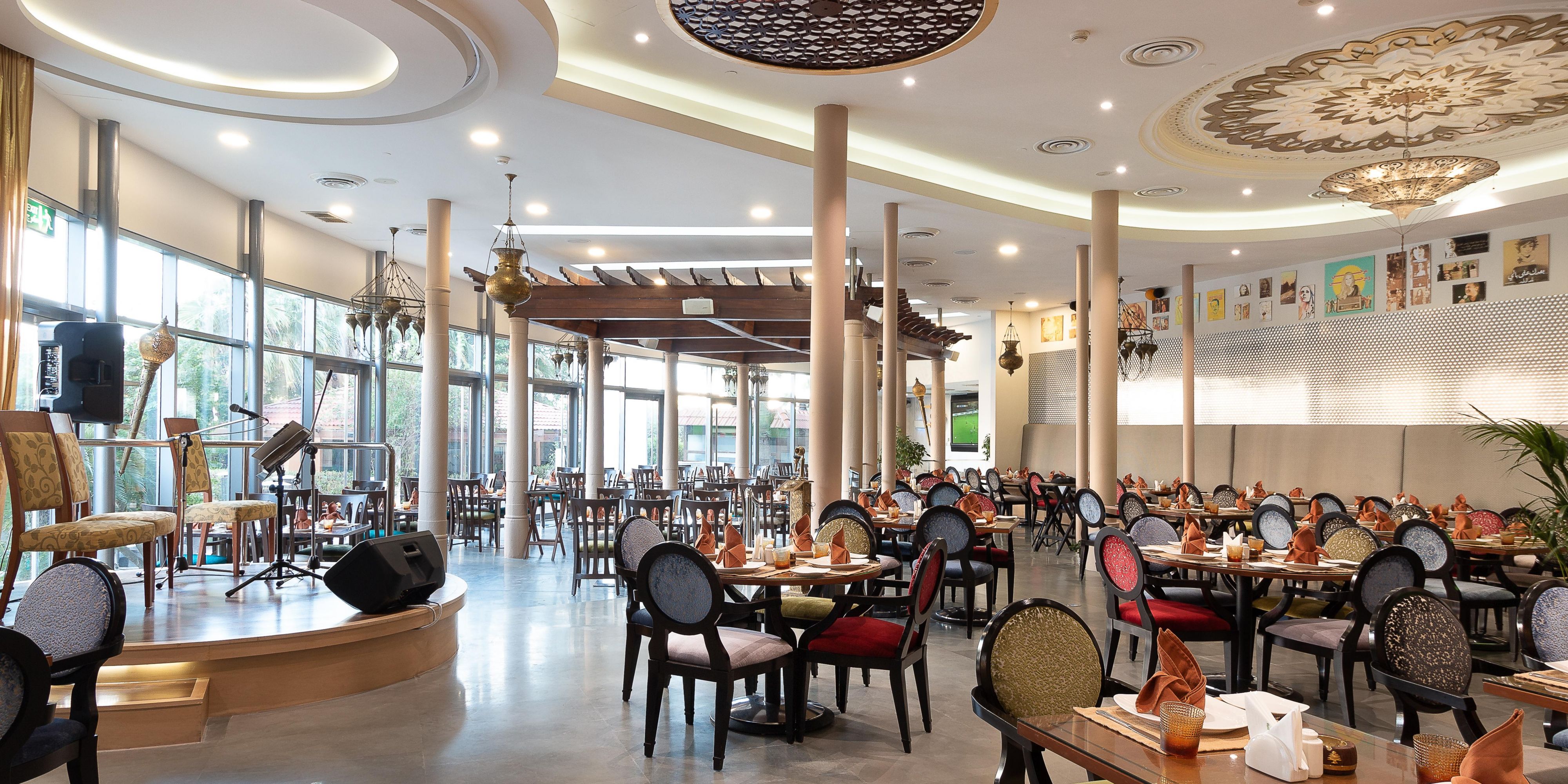 Offering the world's finest flavours under one roof, Al Diwan restaurant is famous for its delectable buffets and family friendly atmosphere as it serves an international breakfast with global standards, a variety of lunch buffets and entertaining themed nights. And to keep the guests happy, Al Diwan restaurant offers two upgraded brunch buffets during the weekend filled with mouthwatering options and live cooking stations.