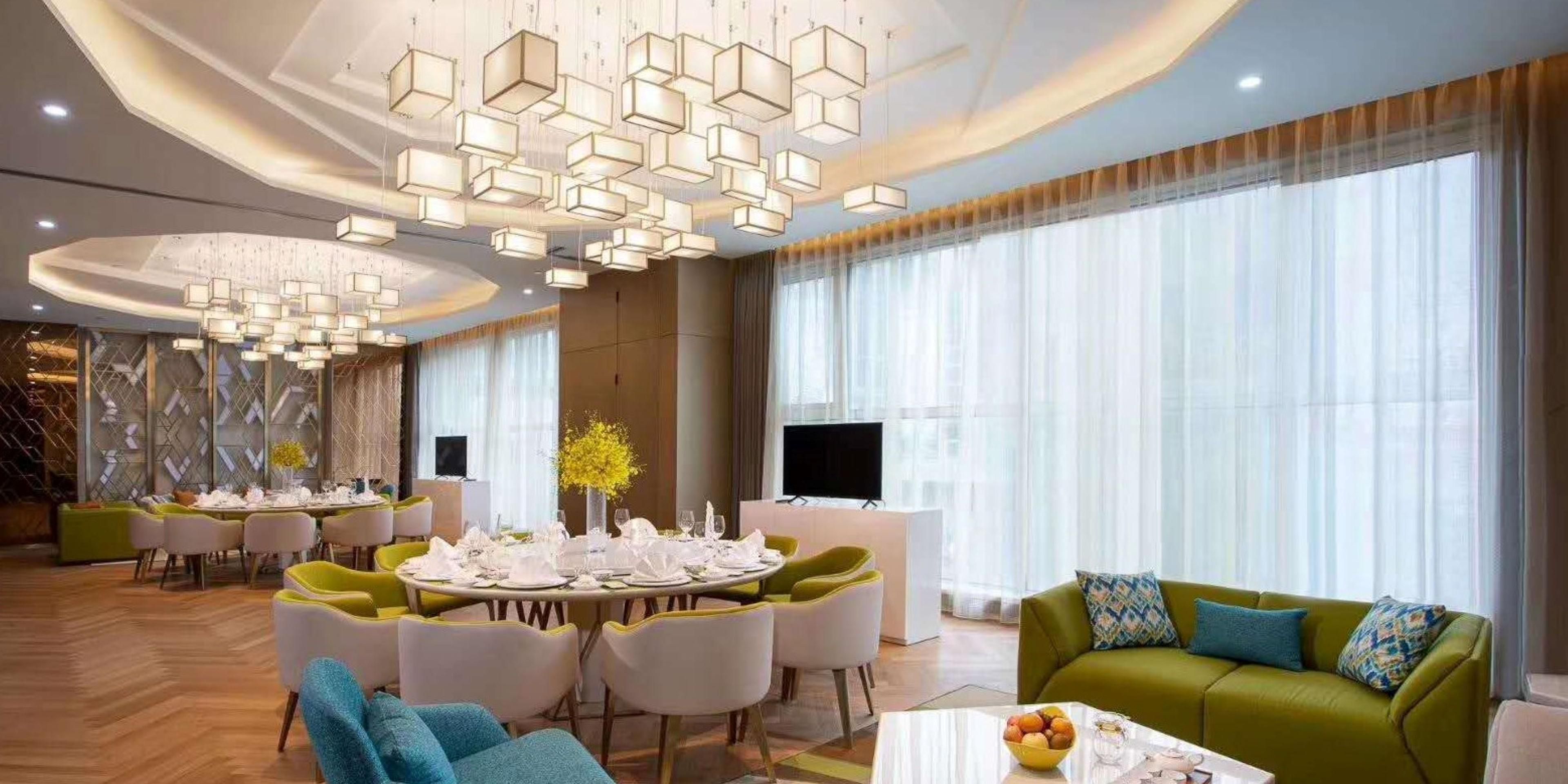 中餐厅雅韵十足拥有5个装饰精致典雅的贵宾包房大厨们擅长粤淮扬及本帮菜系 极佳烹饪技巧融入创新理念并结合当地特色食材邀您品尝独具匠心的美食盛宴 百香餐厅汇聚世界各地美食 提供自助零点和各式饮品 新鲜的食材与厨师精湛厨艺相结合让饕餮盛宴随时挑战您的味蕾
