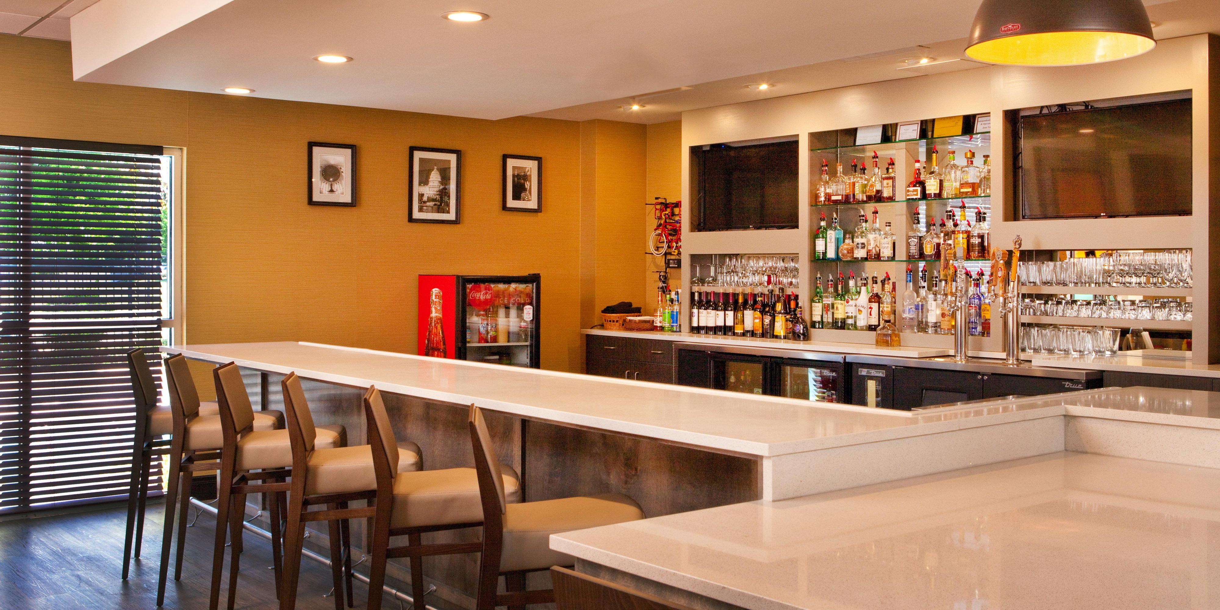 Camp David Restaurant at the Holiday Inn Presidential offers a cozy dining area and a lively bar with high-rise seating. Enjoy delicious meals, refreshing drinks, and multiple TVs for entertainment. A perfect spot to relax, connect, and savor great food!