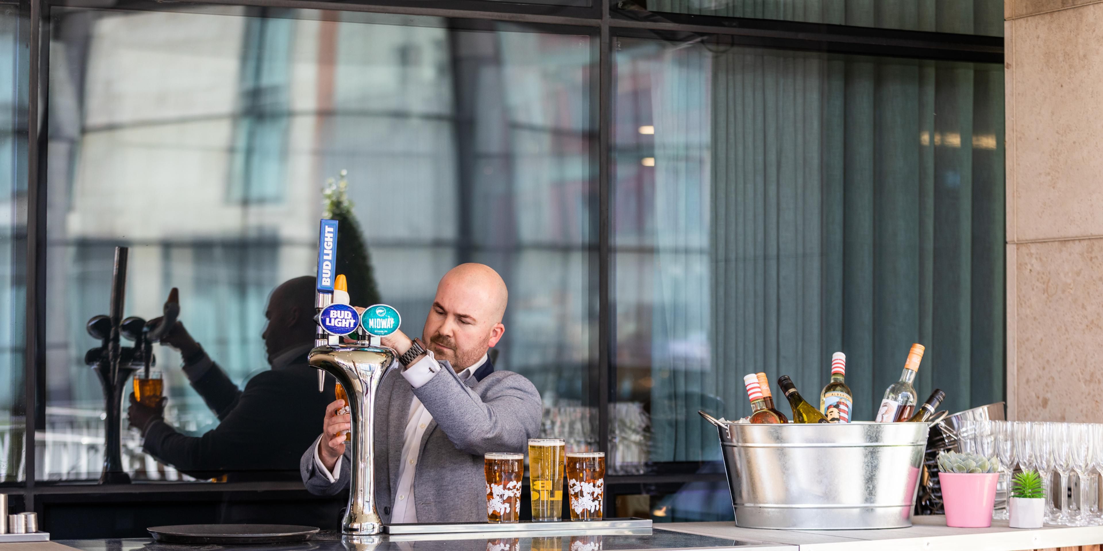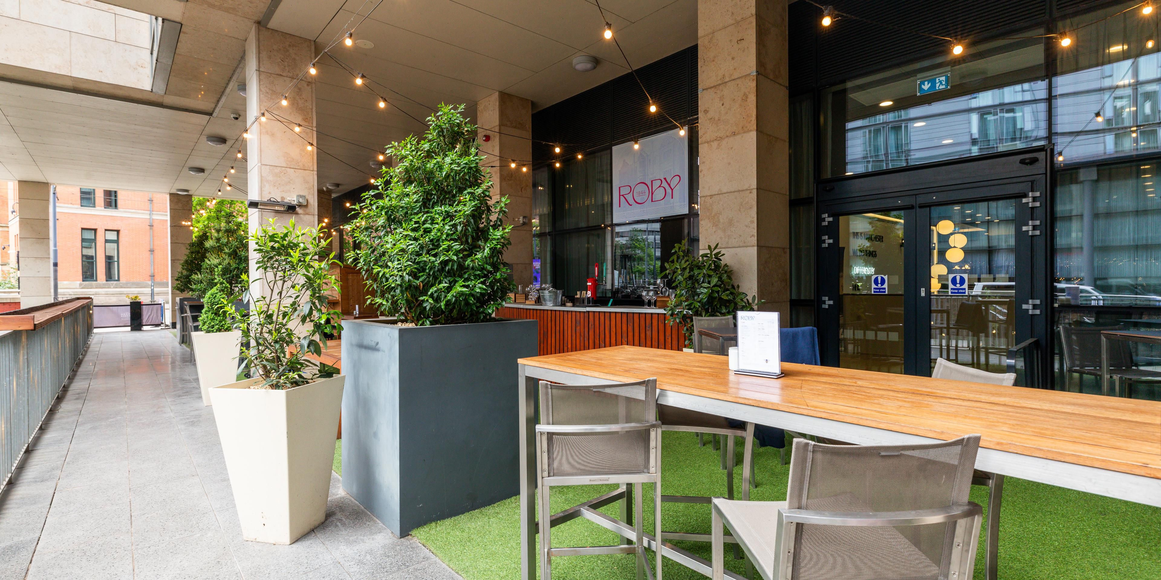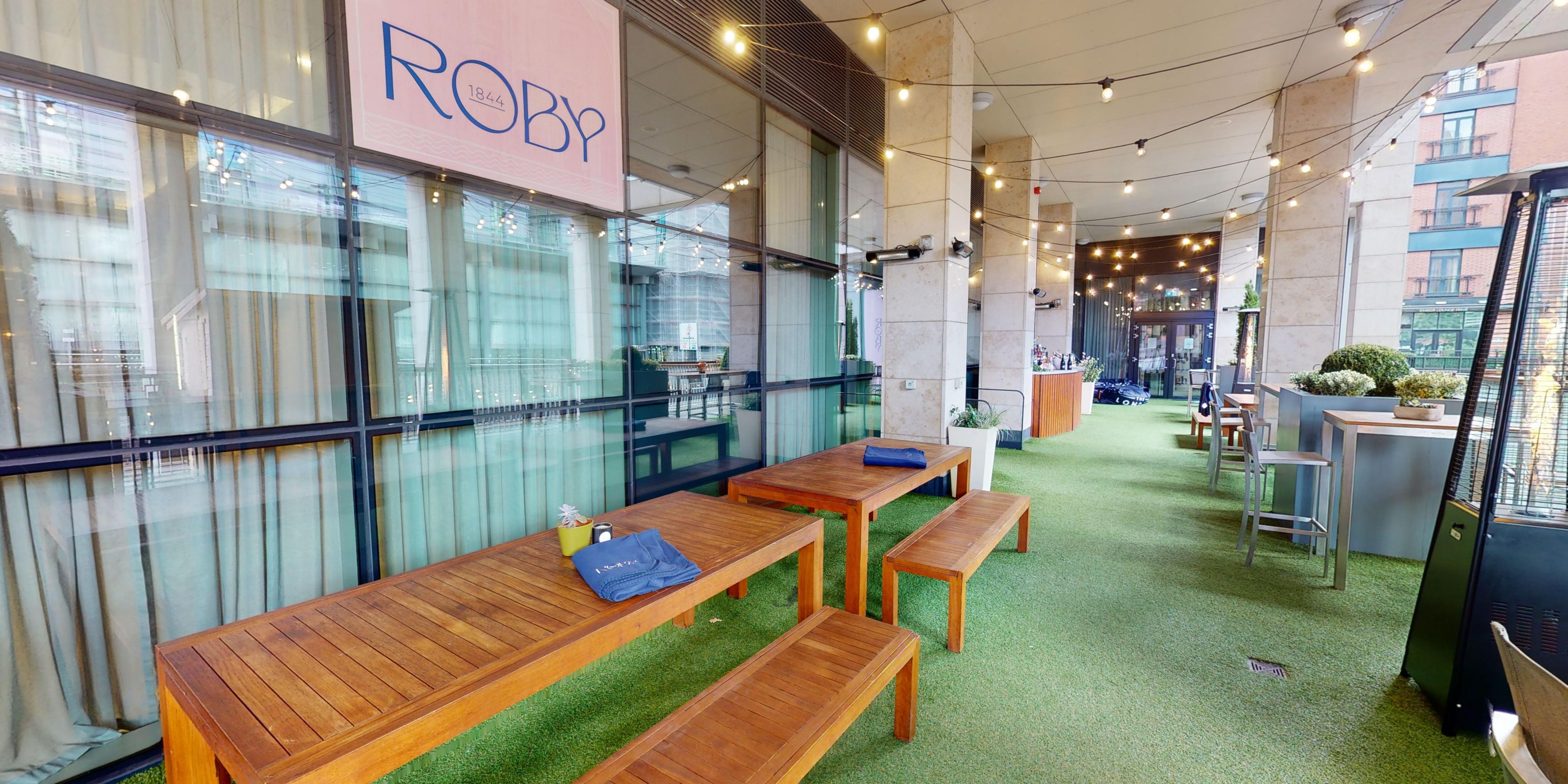 Named after the original Victorian Roby School building next door, Roby1844 Canalside Terrace Bar and Eatery is a vibrant spot offering a relaxed ambience with festoon lighting, waterside seating, music, and an outdoor bar.