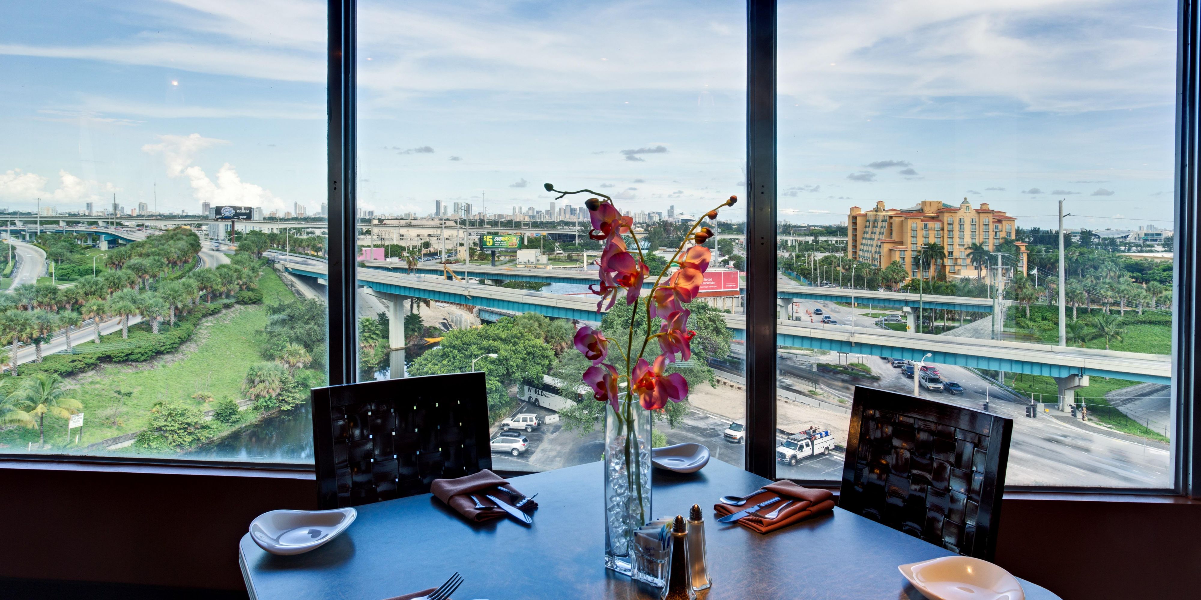 El Mirador offers a world of flavor with American, Caribbean, and Latin inspired dishes served high above the city. Enjoy hearty breakfasts, family favorites or cocktails and dinner with panoramic views of downtown Miami, Marlins Stadium, and the runway.