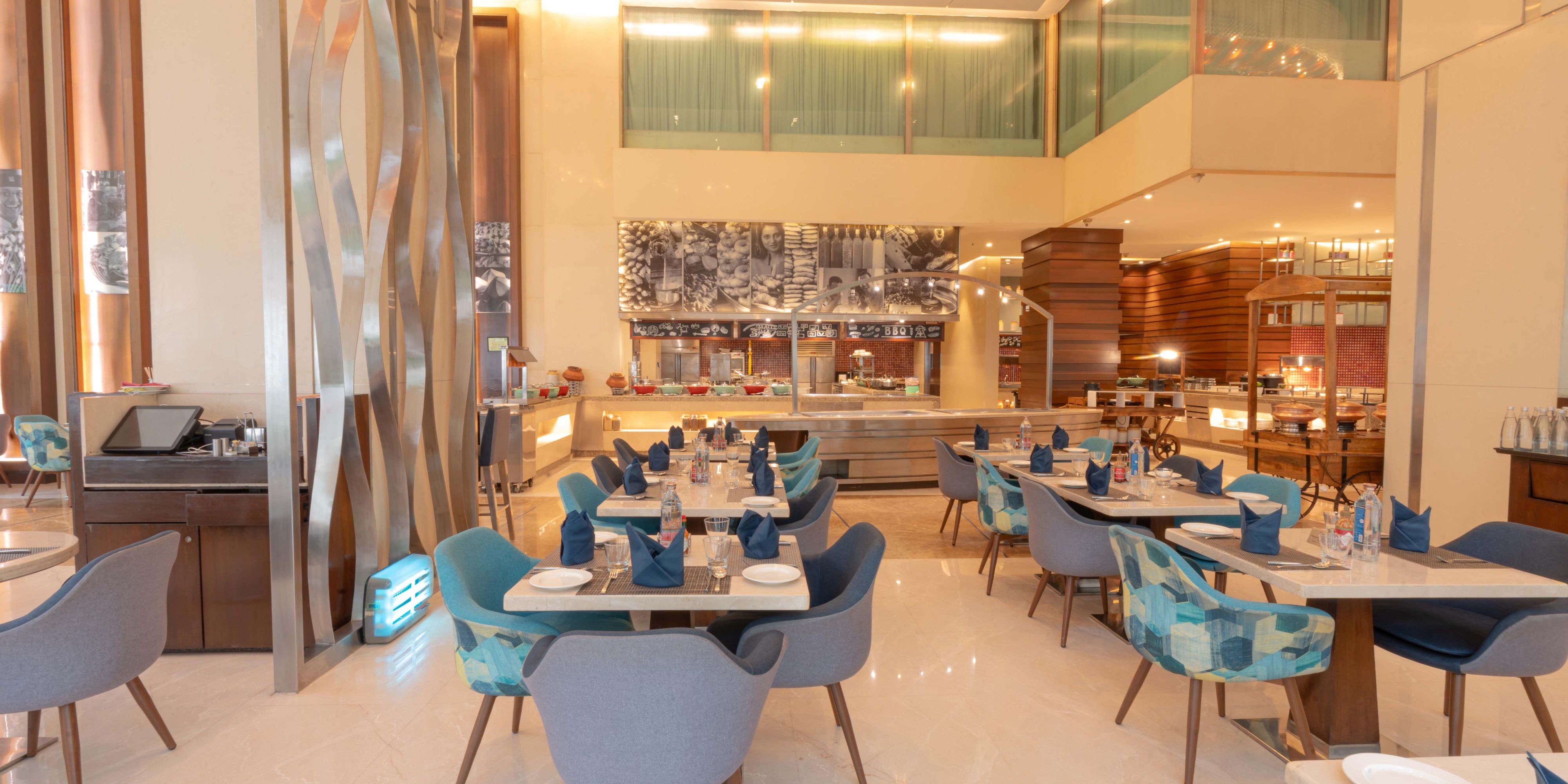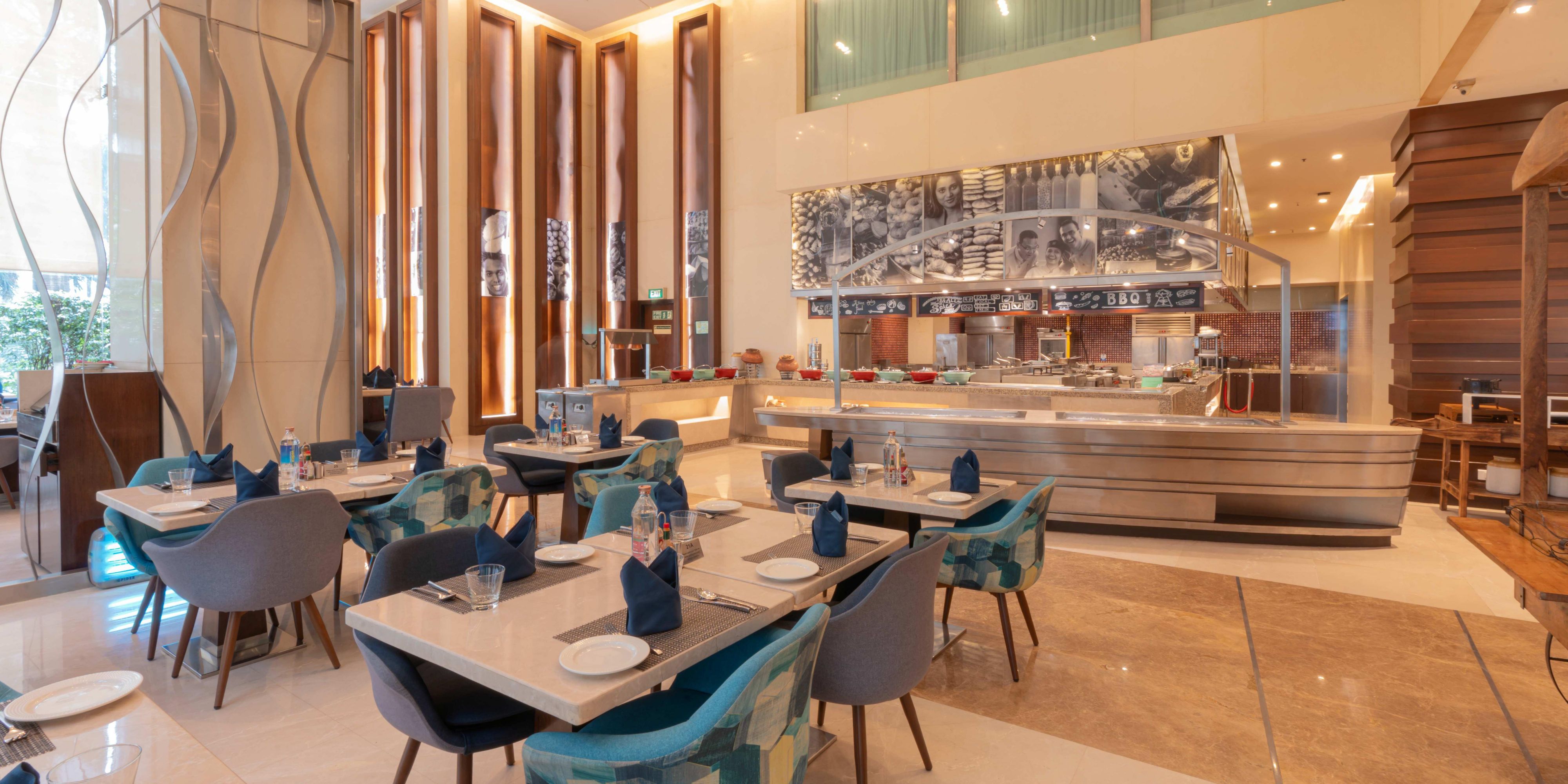 Experience vibrant dining at Saptami, our contemporary all day multi cuisine restaurant with floor to ceiling glass walls that let in natural light. Enjoy hearty breakfasts, sumptuous lunch, and dinner buffets, and an enticing mix of global and local flavours. Do not miss our Saturday and Sunday Brunch from 1230 hrs to 1600 hrs, featuring a delightful spread for every palate. Open daily from 0630 hrs to 1130 hrs, Saptami is your destination for memorable meals any time of day.