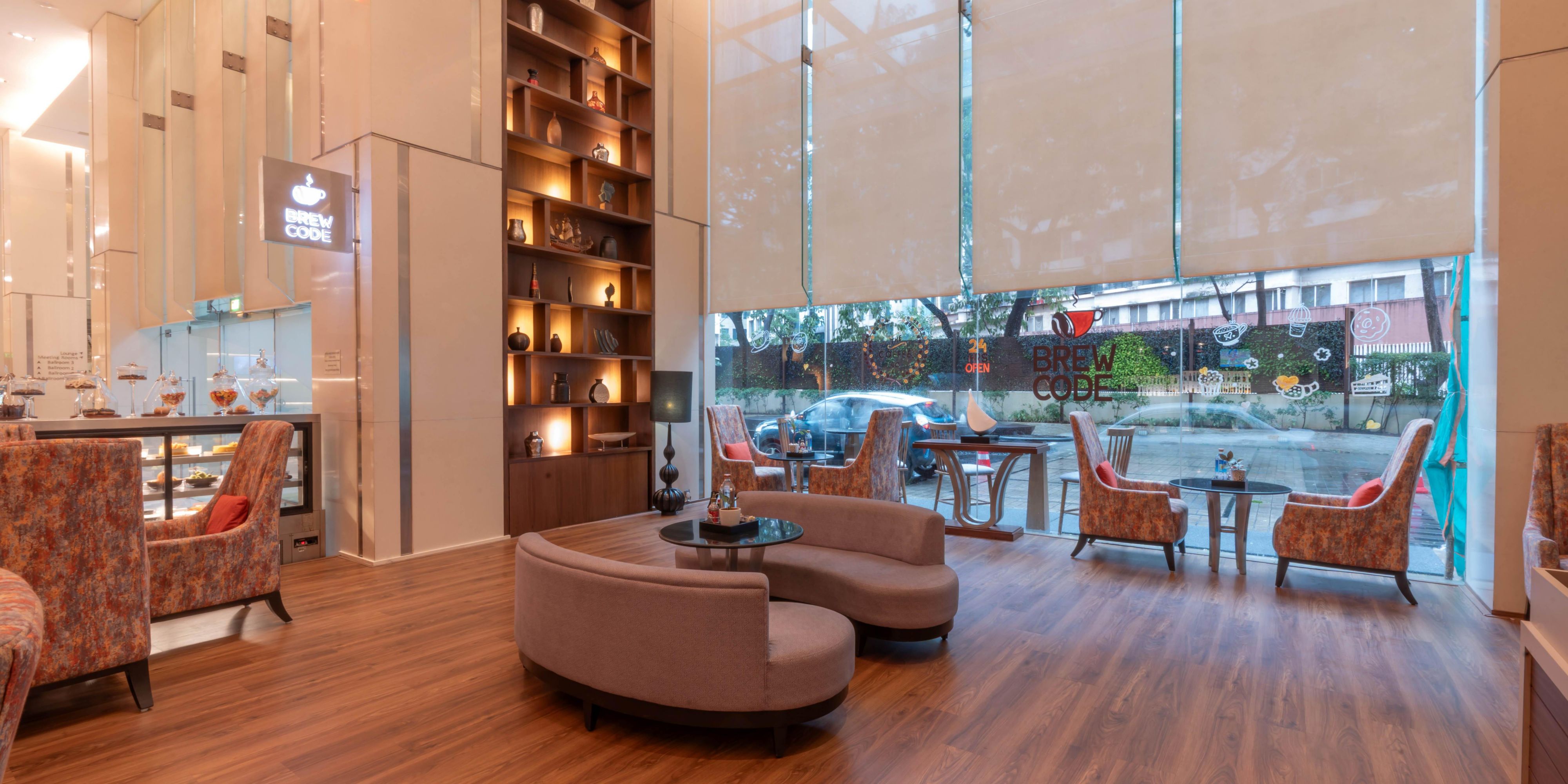 Brew Code is a vibrant café offering a unique blend of world class beverages, delectable snacks, artisanal coffees, refreshing smoothies, specialty teas, and a range of freshly baked pastries, sandwiches, and snacks. It is a perfect space to relax, connect, or enjoy a quick bite. It is located at the lobby level and is operational all day.