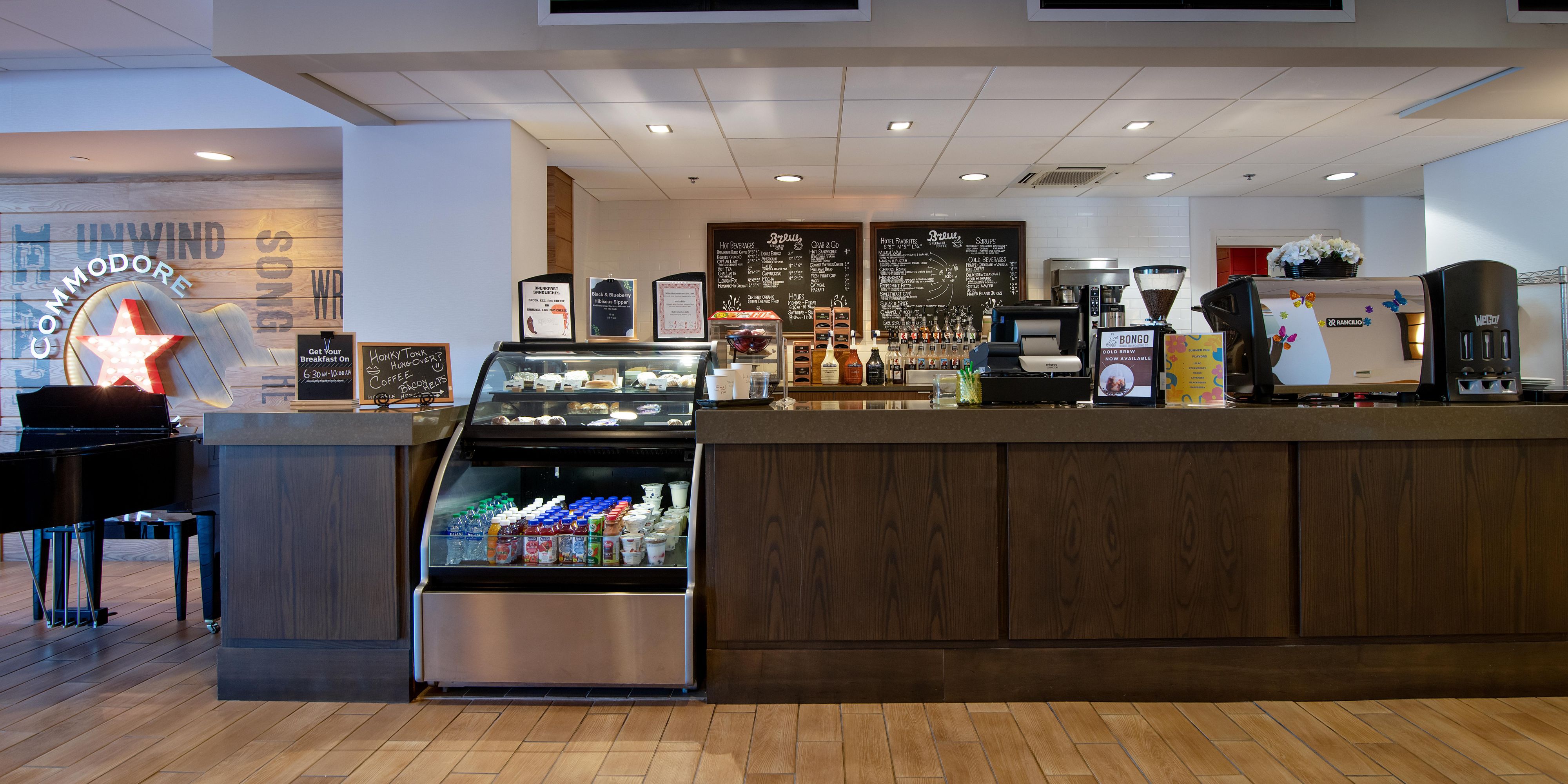 Start your morning or recharge anytime at The Brew, your convenient hotel coffee shop located in the lobby. Serving freshly brewed Bongo Java Coffee, specialty espresso drinks, and a selection of light snacks, The Brew is the perfect spot to fuel your day. Whether you're grabbing a quick coffee before a meeting or relaxing with a latte, enjoy quality coffee and friendly service just steps from your room.