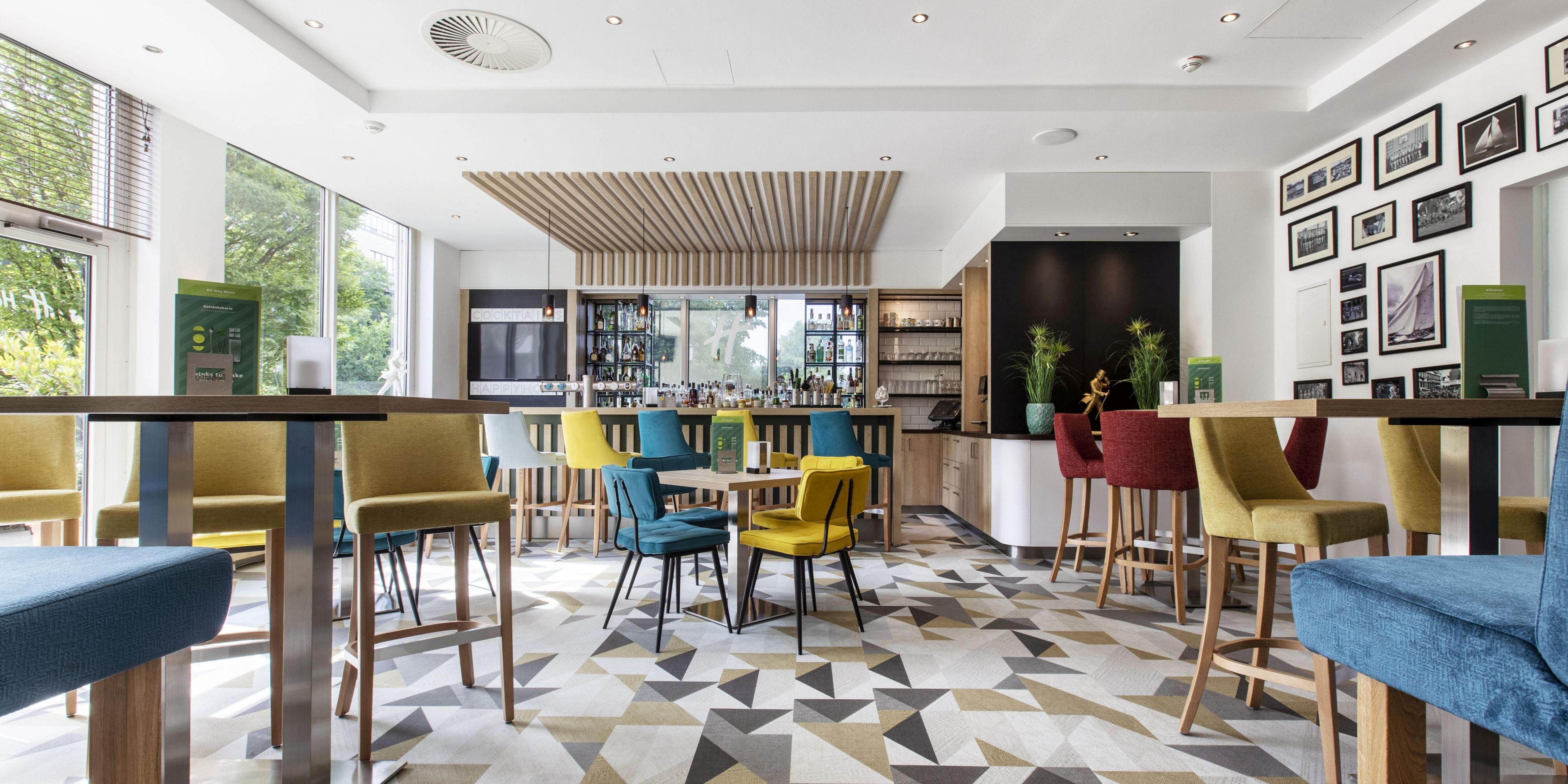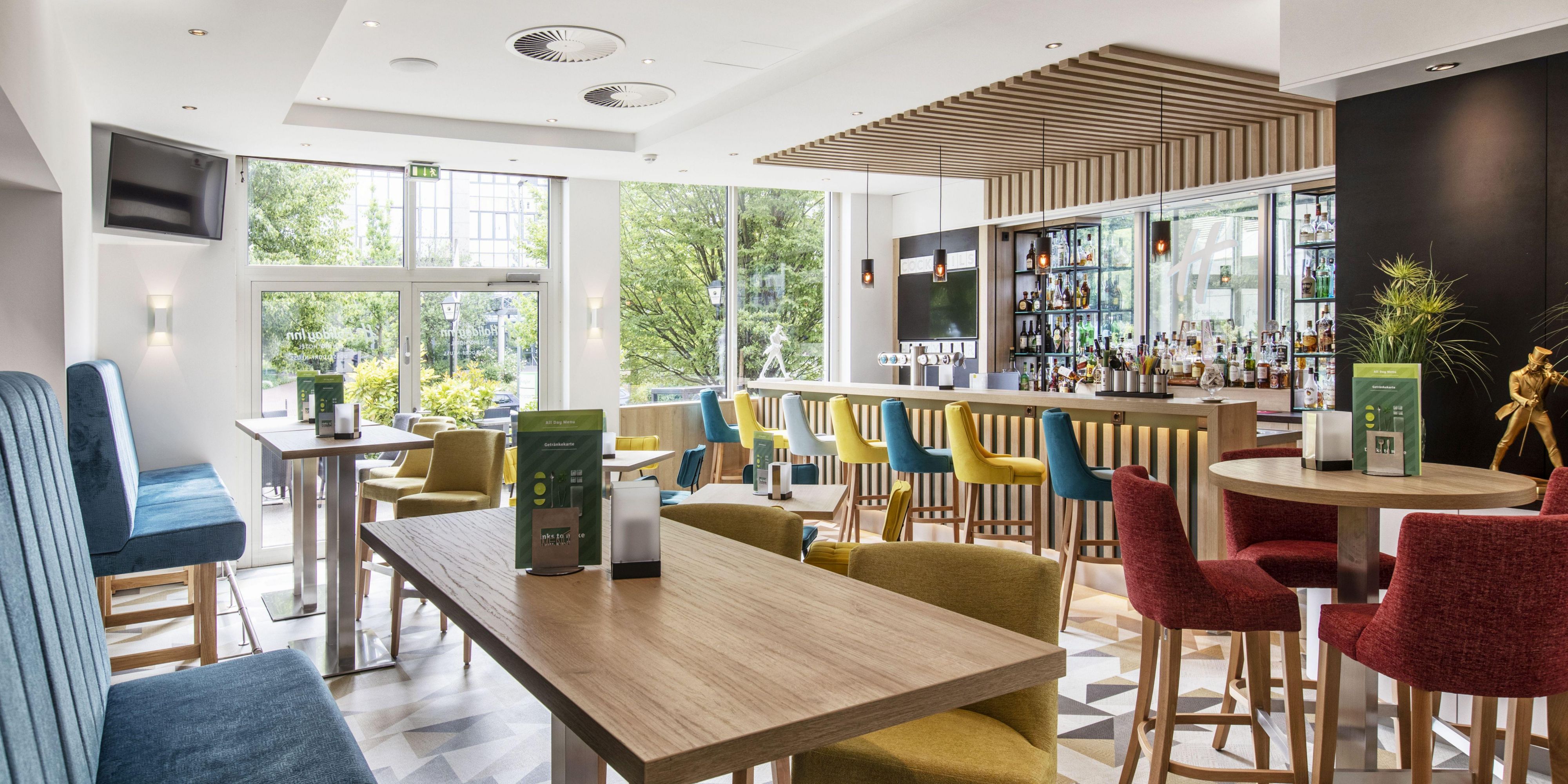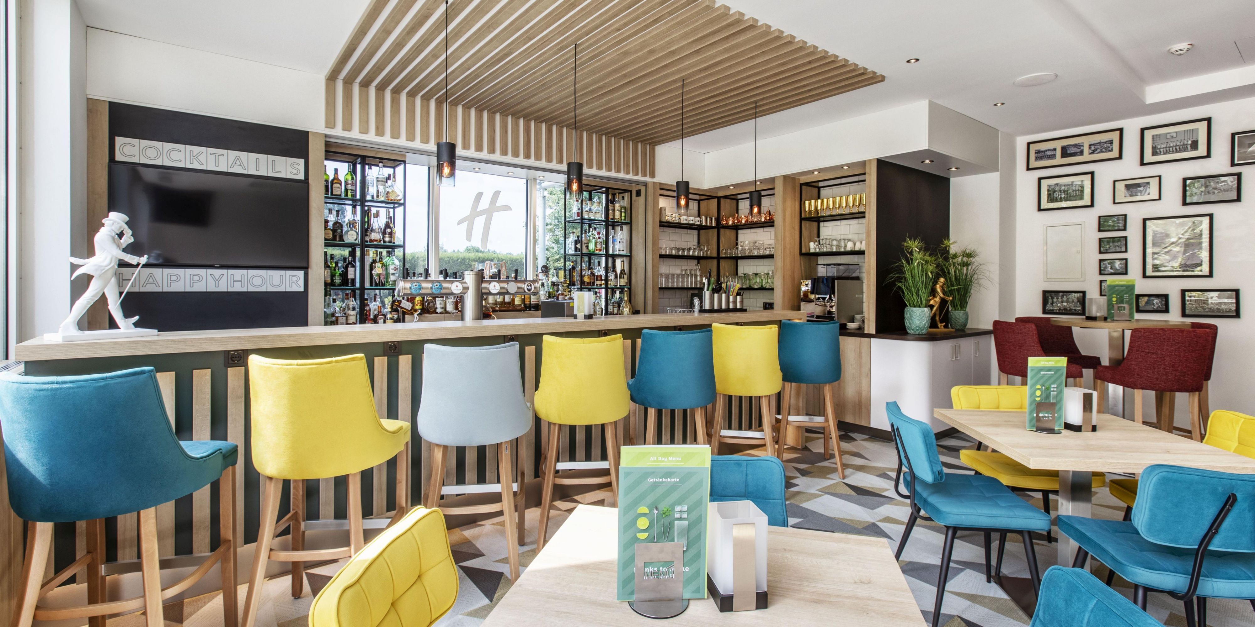 The Holiday Inn® Open Lobby with Sports Bar, garden terrace and beer garden is the perfect place during the evening for guests who love cocktails, drinks, great selected spirits, beer or a good glass of vine or gin in a relaxed atmosphere. A great place to meet or to have a delicious cappuccino in the late afternoon. Sky Sports channel available. Snacks and drinks are also available around the clock at our Grab & Go station.