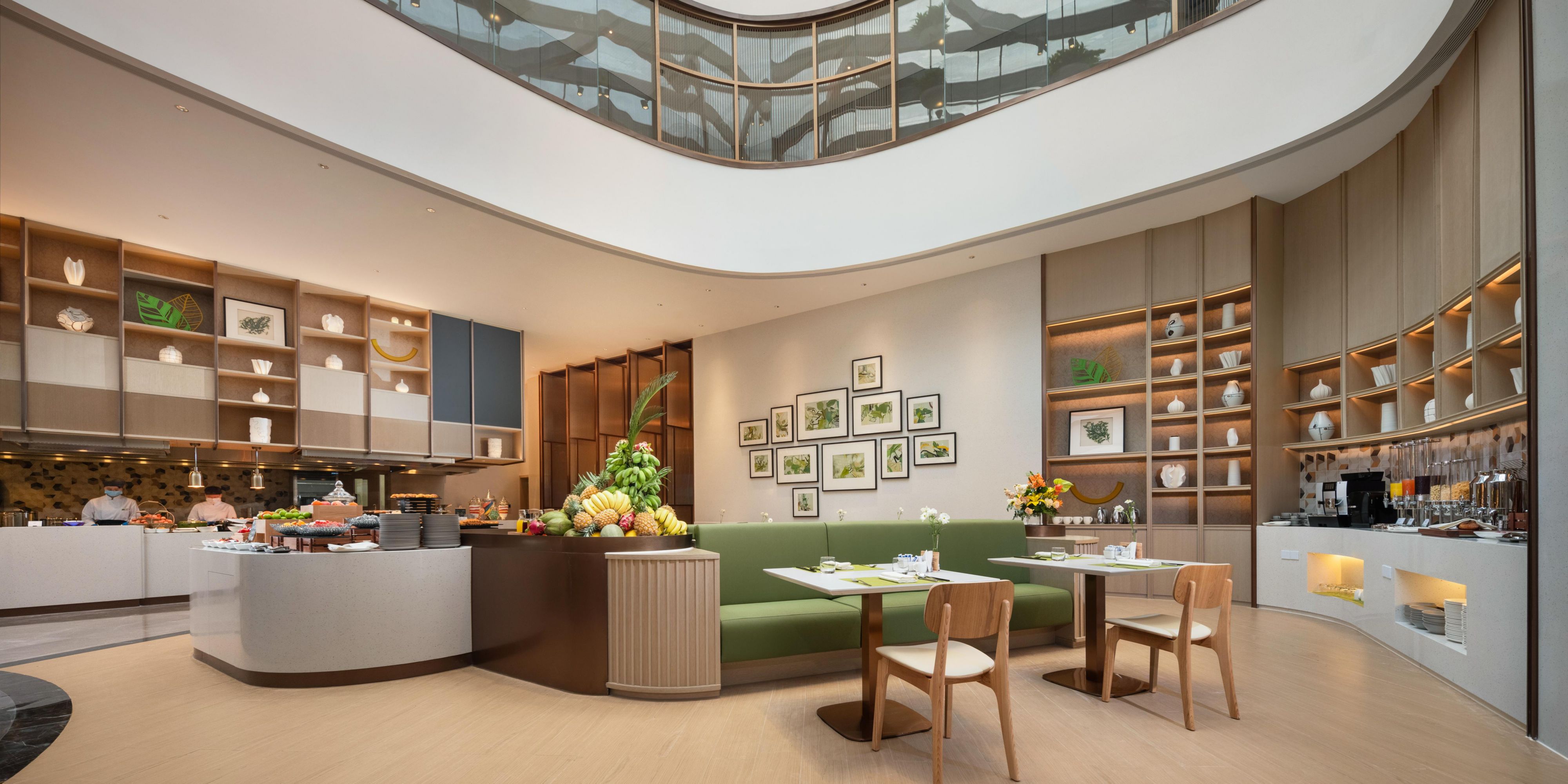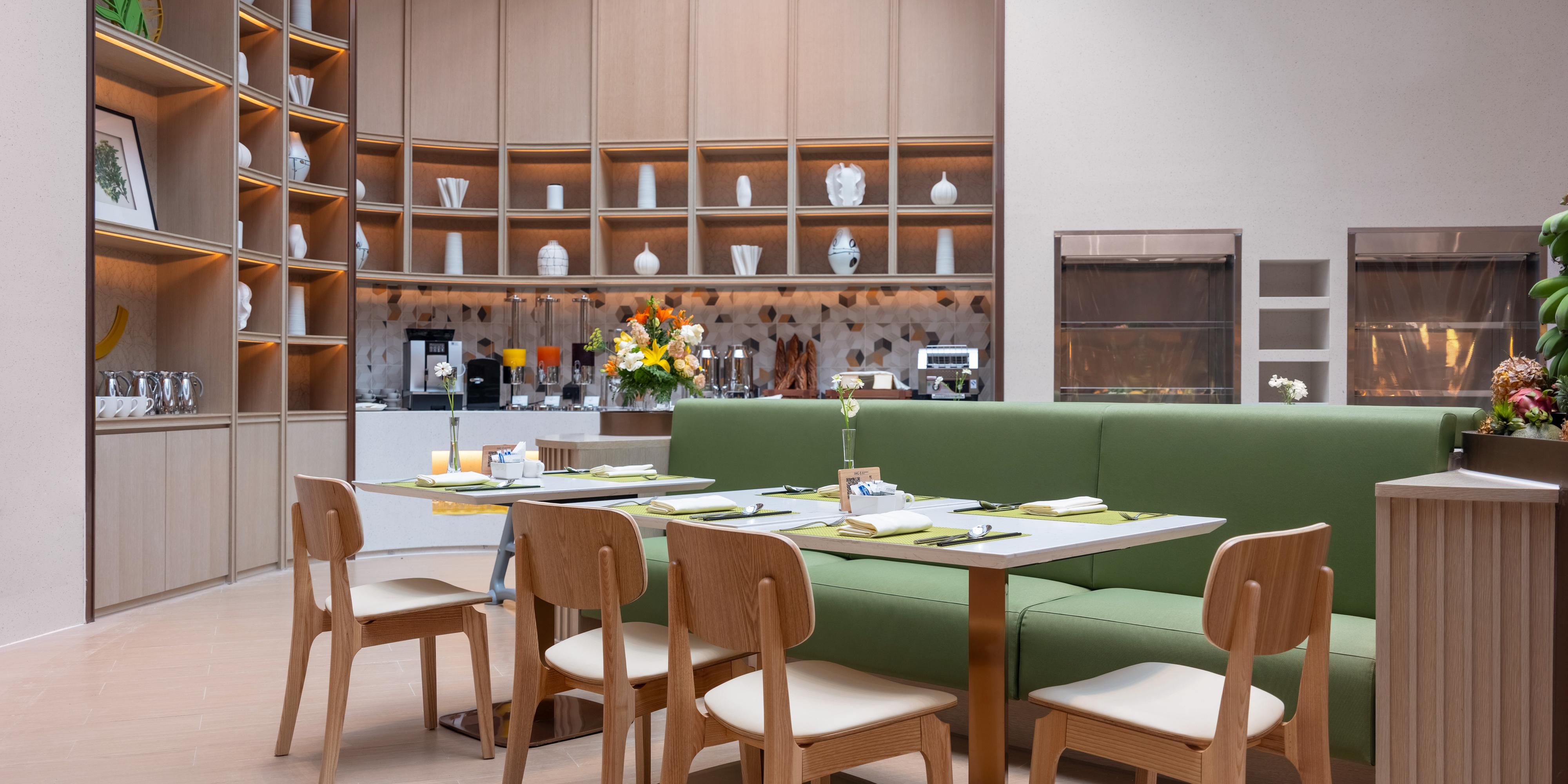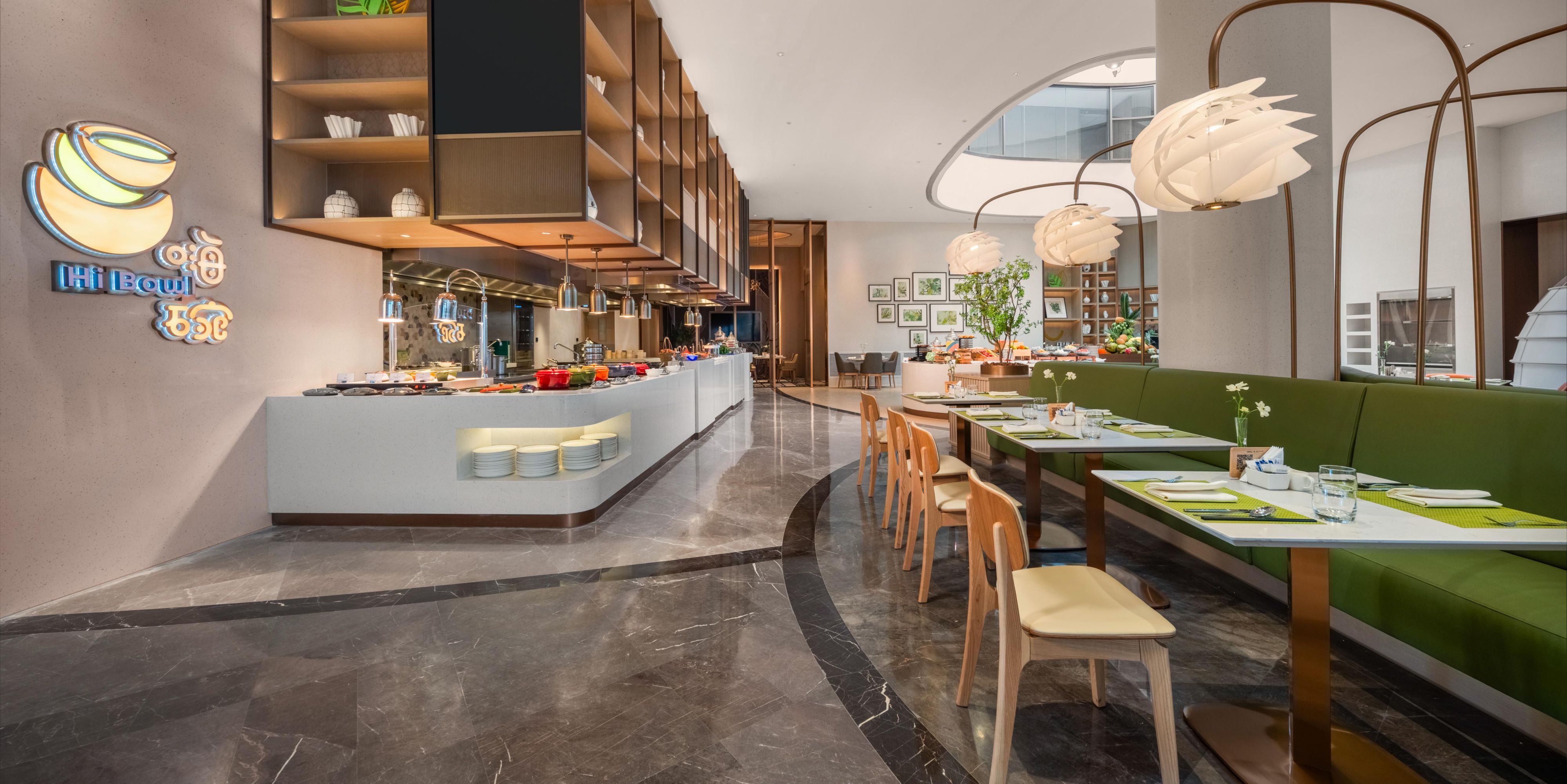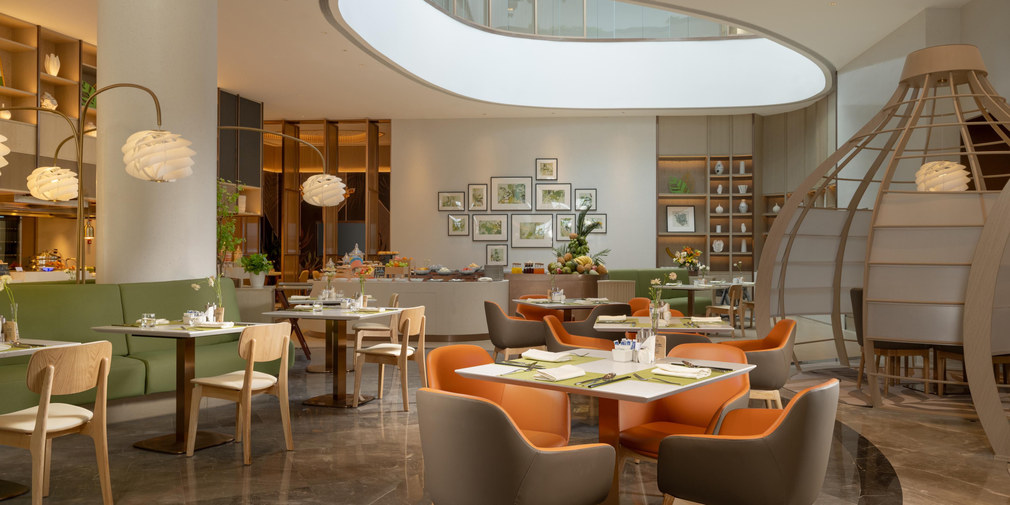 设有74个座位,专属会员用餐区域和充满活力的氛围,为您奉上环球美食和衢州当地特色美味。多个开放式档口供应中式菜系、西式美肴、东南亚特色、日式料理和欧式风味等。互动式的用餐体验满足您对美食的不同需求。
