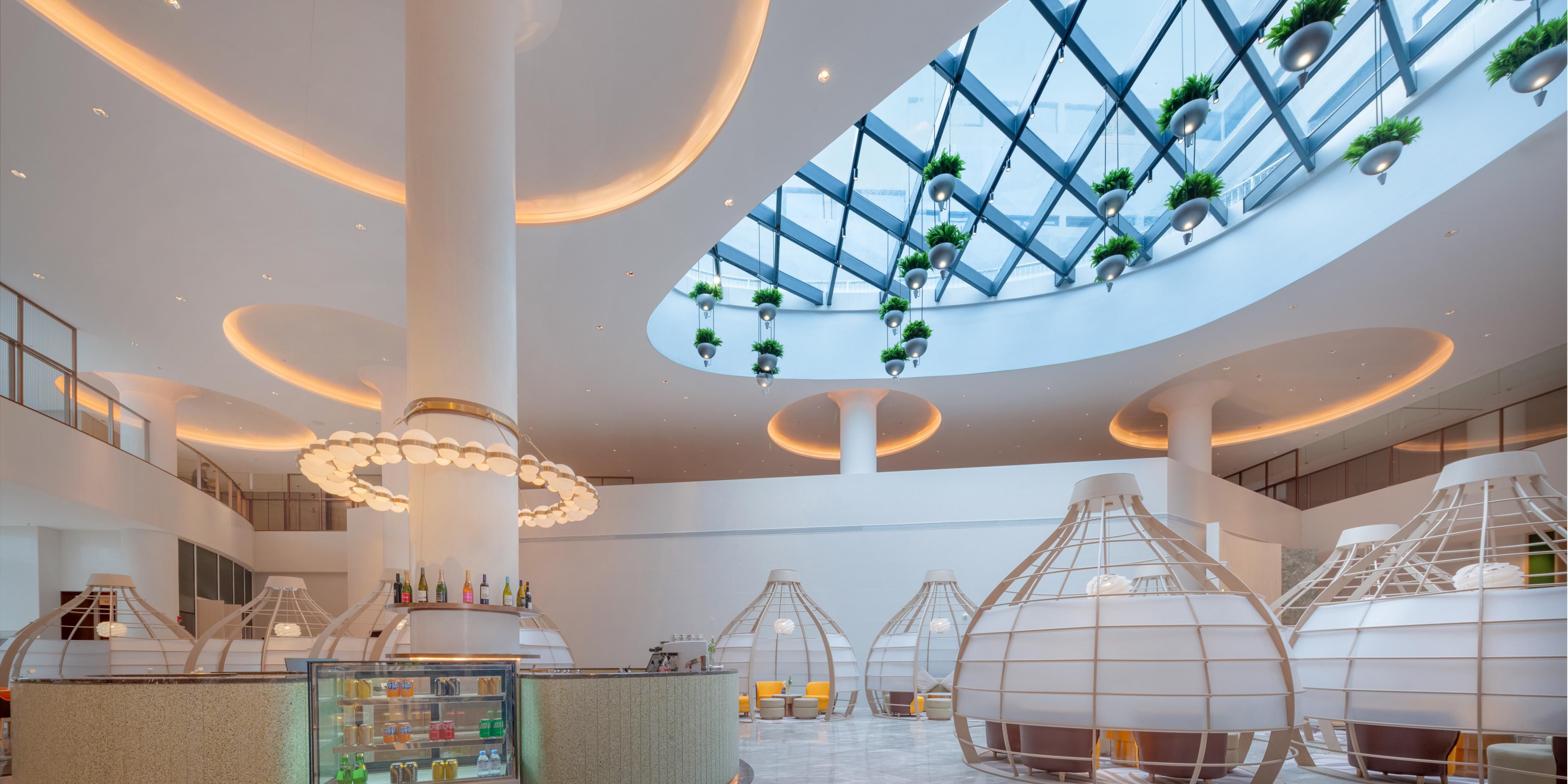燃大堂酒廊位于大堂中心,兼具休闲、社交及商务功能。美景相伴,佐以精致点心饮品或下午茶,补充身心能量,度过惬意的时光。