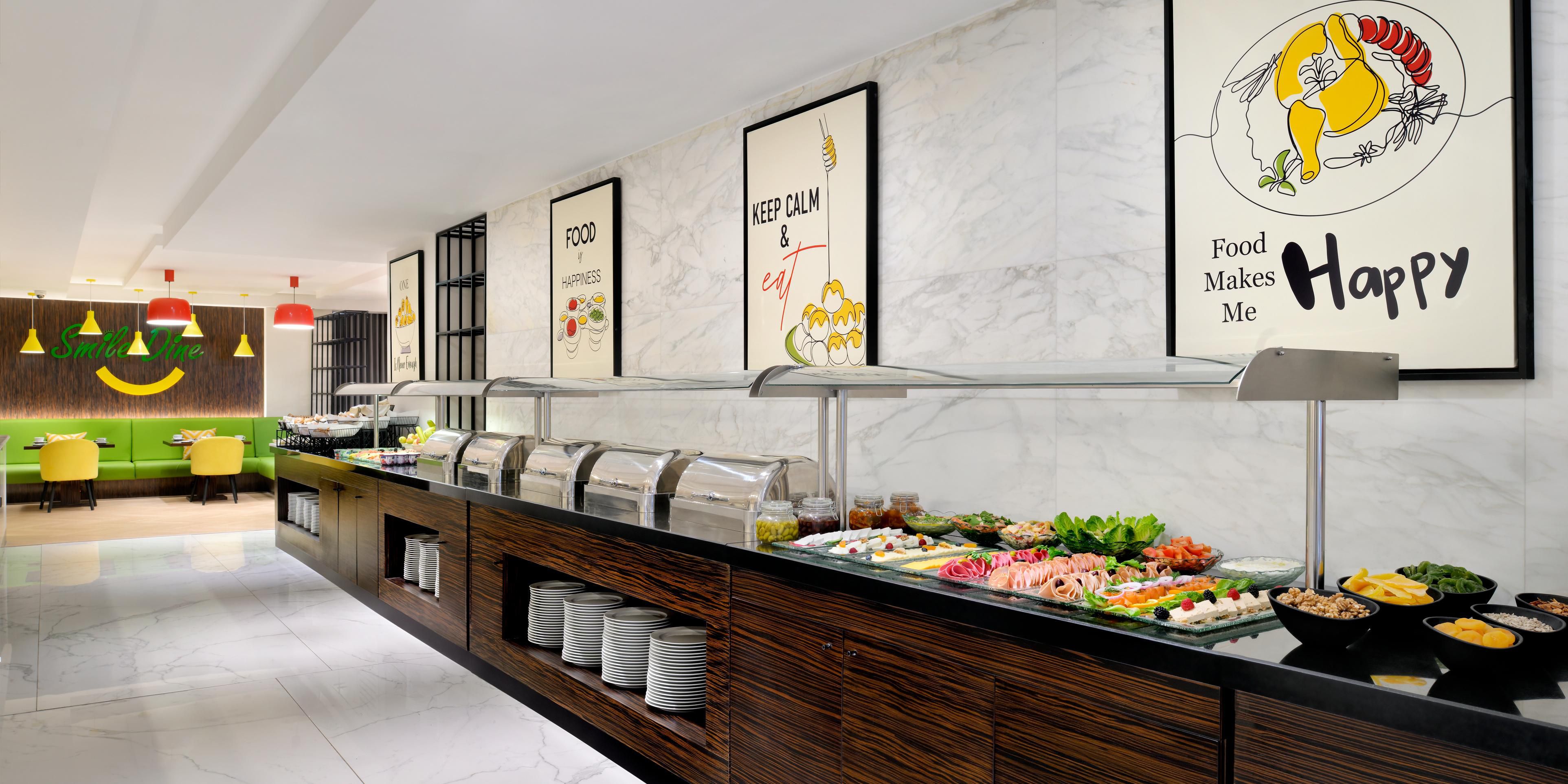 The Palms restaurant is your all day dining destination featuring an international buffet with a variety of global flavors each dish is crafted with top tier ingredients offering smoked juicy and velvety creations. Nourish yourself with our organic breakfast ingredients then indulge in diverse lunch options. In the evening join our themed dinner nights showcasing a range of cultures through authentic cuisines.
