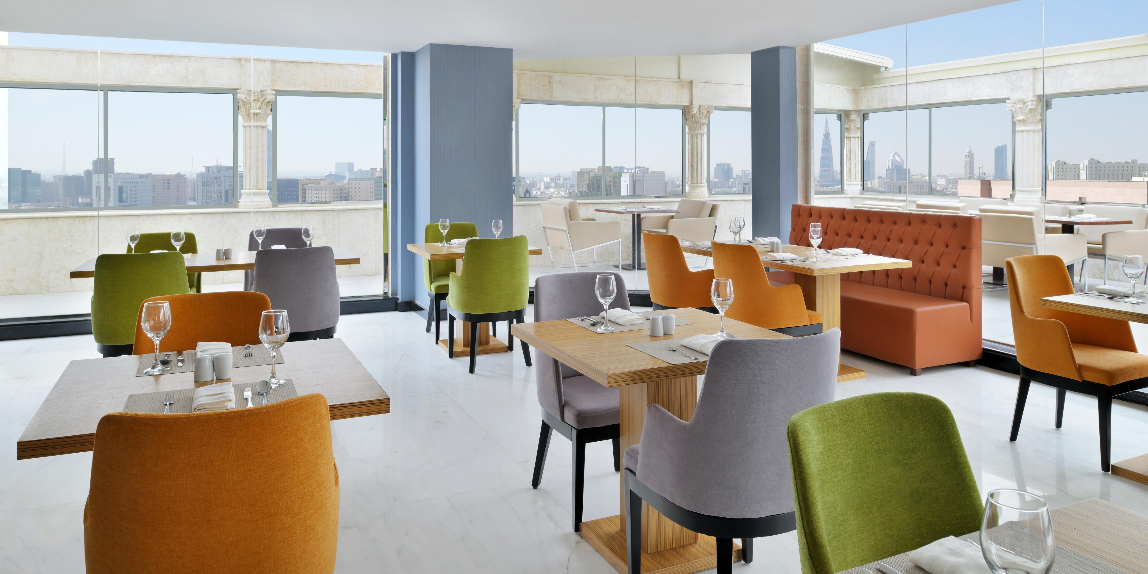 Holiday Inn Al Malaz Sky Lounge restaurant offers a welcoming, family friendly atmosphere during the day and transforms into a chic venue with an upscale ambiance at night serving a unique selection of Levantine dishes by our master chefs Embark on a culinary journey with exceptional food and drinks crafted to delight your palate. Whether it is a casual meal or a special occasion in Riyadh Sky Lounge promises an unforgettable experience that blends stylish comfort and authentic flavors.