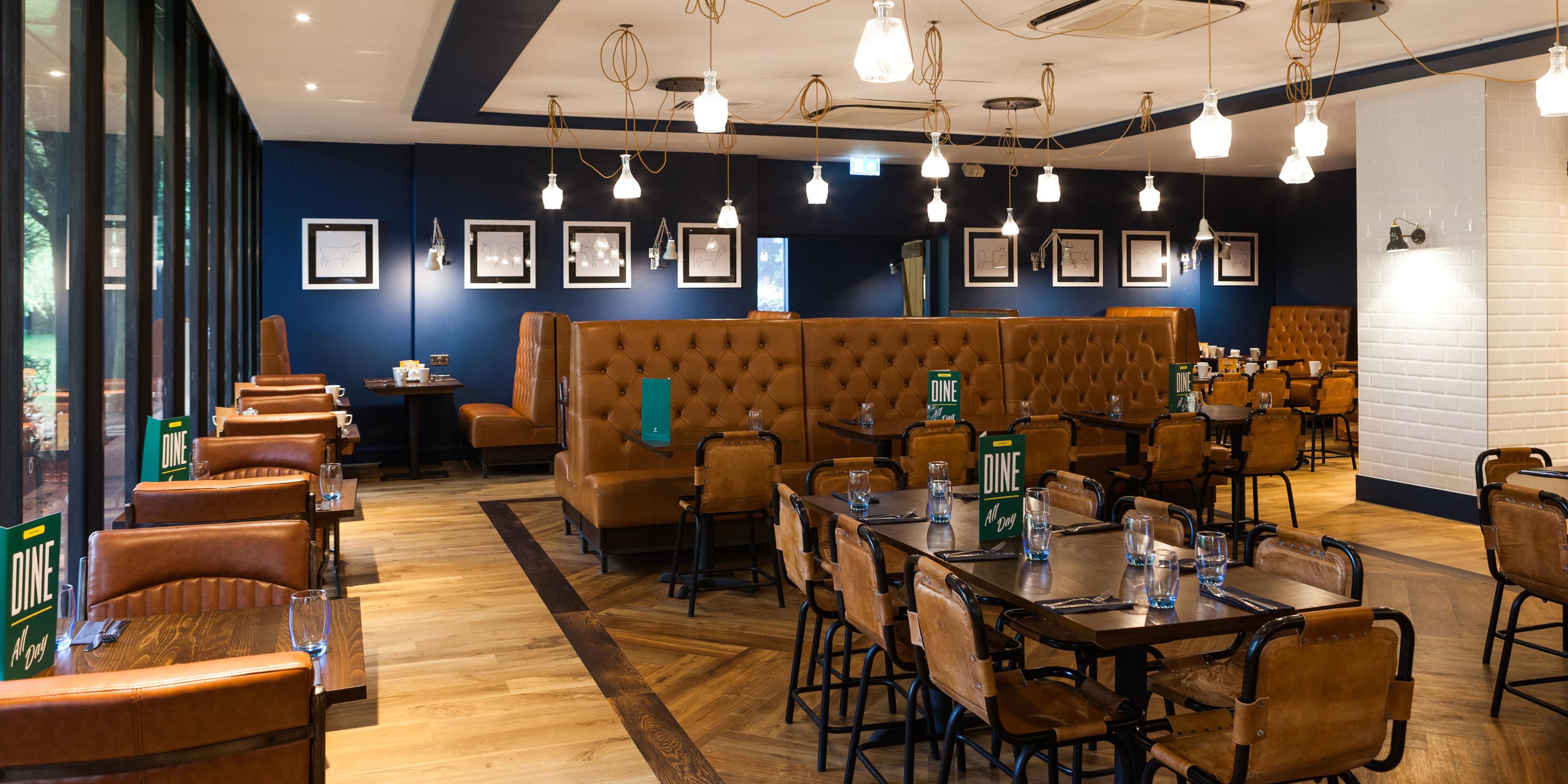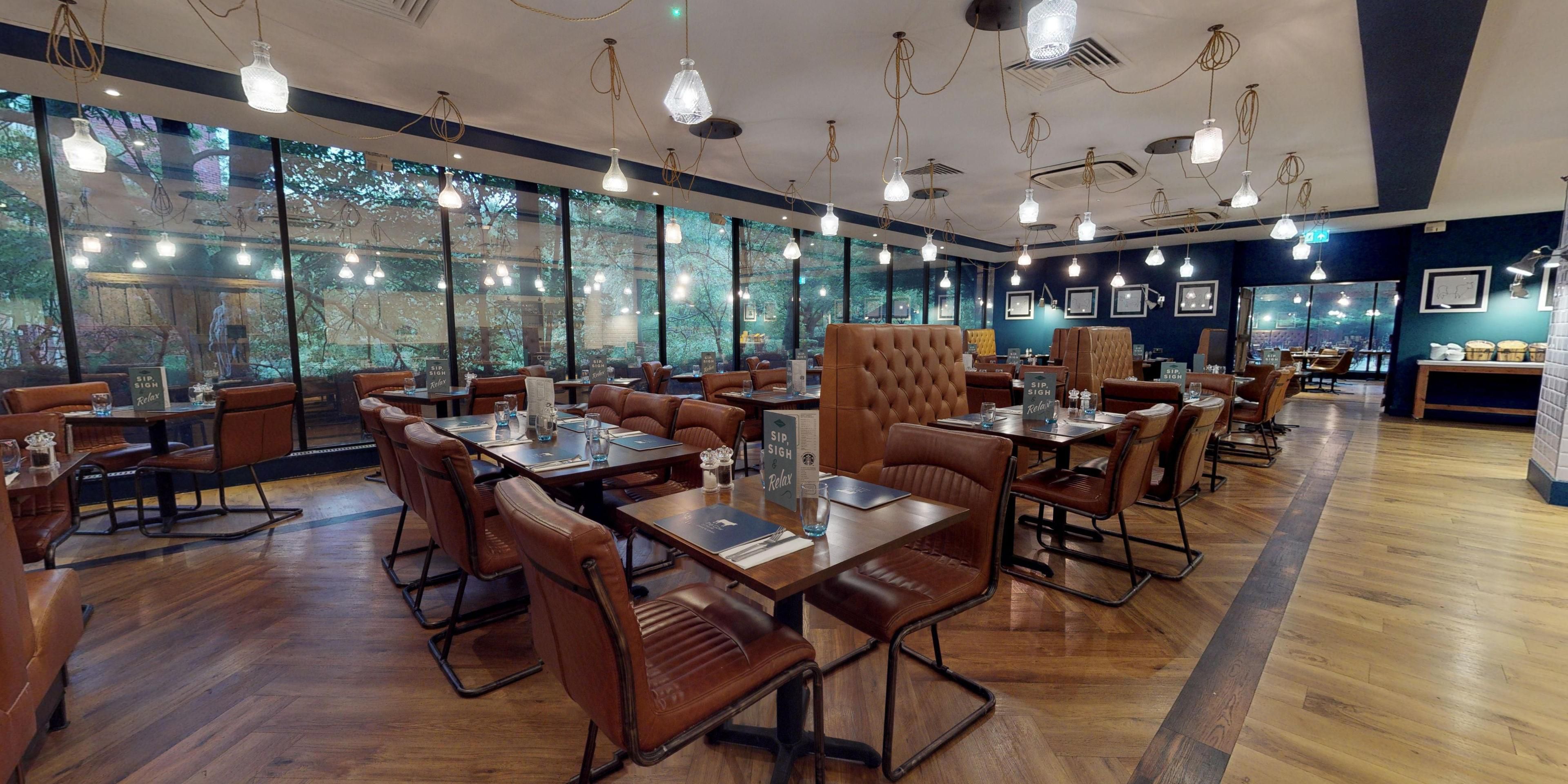 The bright, modern restaurant at Holiday Inn Runcorn offers all day dining with indoor and patio seating. Start your day with hearty breakfast or brunch options, then enjoy a wide range of British classics, stone baked pizzas, global favourites like chicken makhani, and lighter bites. Vegetarian, vegan, and gluten free options are available, along with indulgent desserts and refreshing salads.