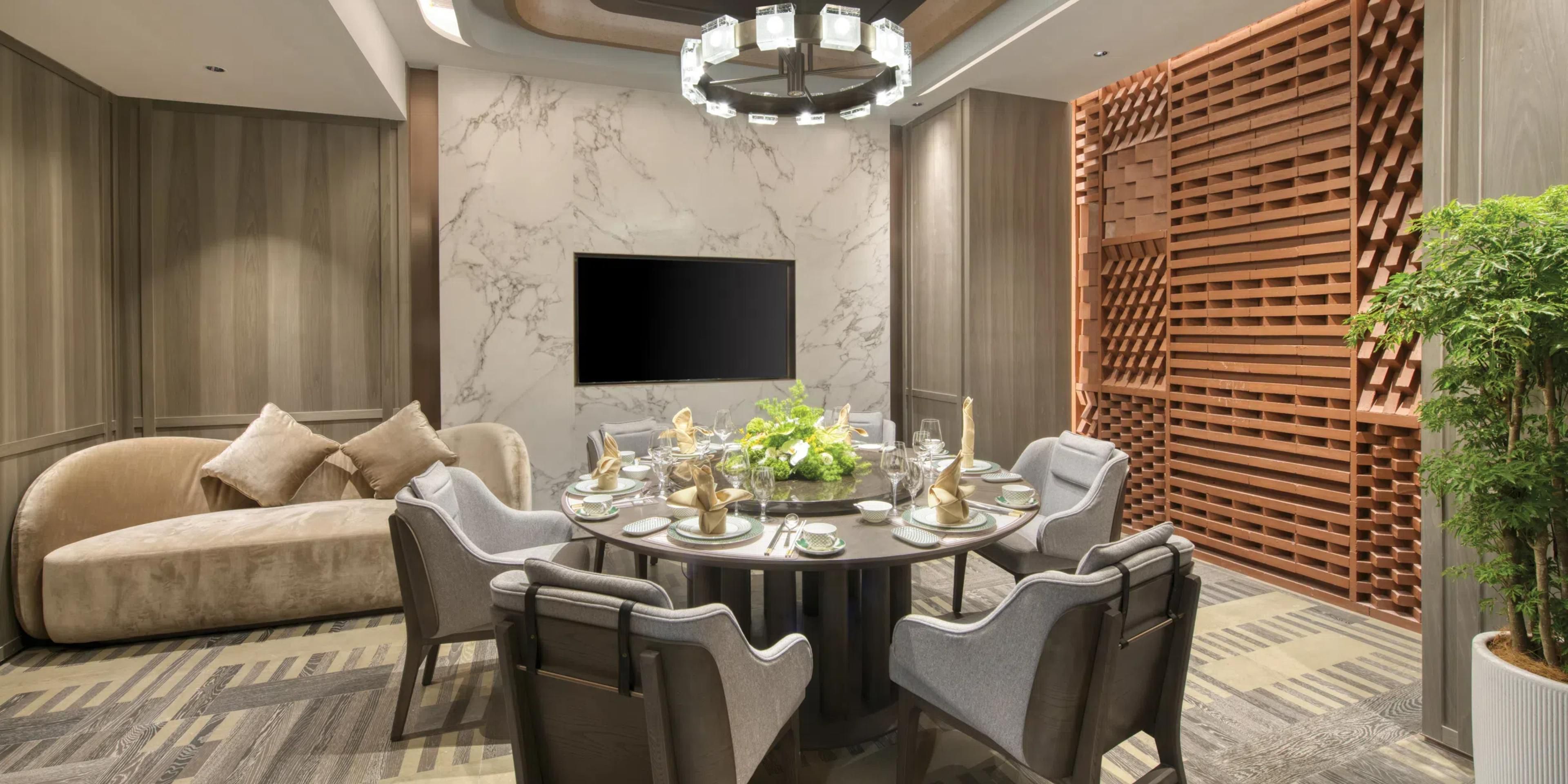 酒店中餐厅采用当季新鲜食材搭配有机农产品,经验丰富的大厨凭借精湛的技艺和高超的创意,以匠心独具的手法烹煮出一道道粤式私房美食,5间私密包房更可让您及宾客尽情欢聚。