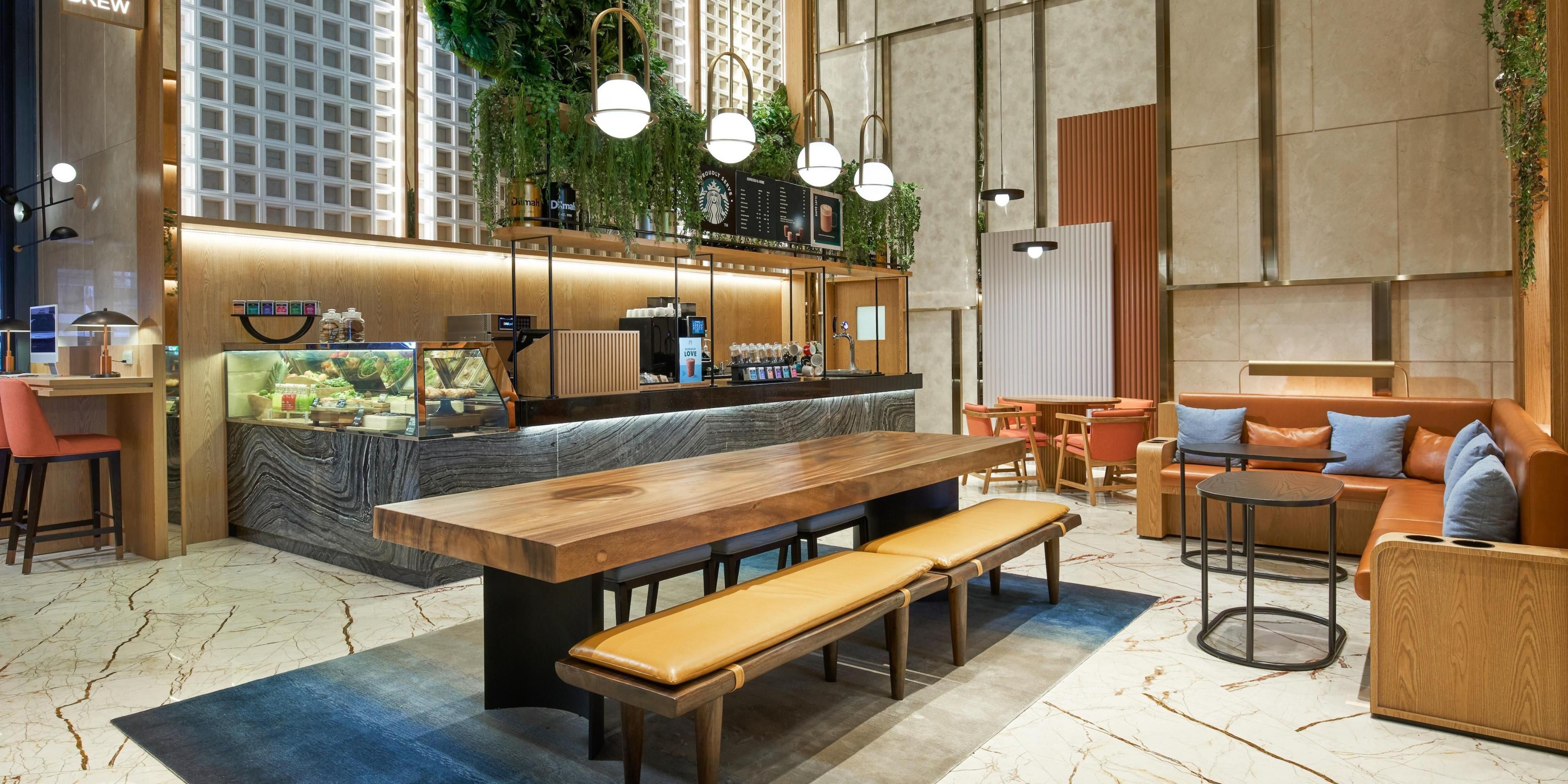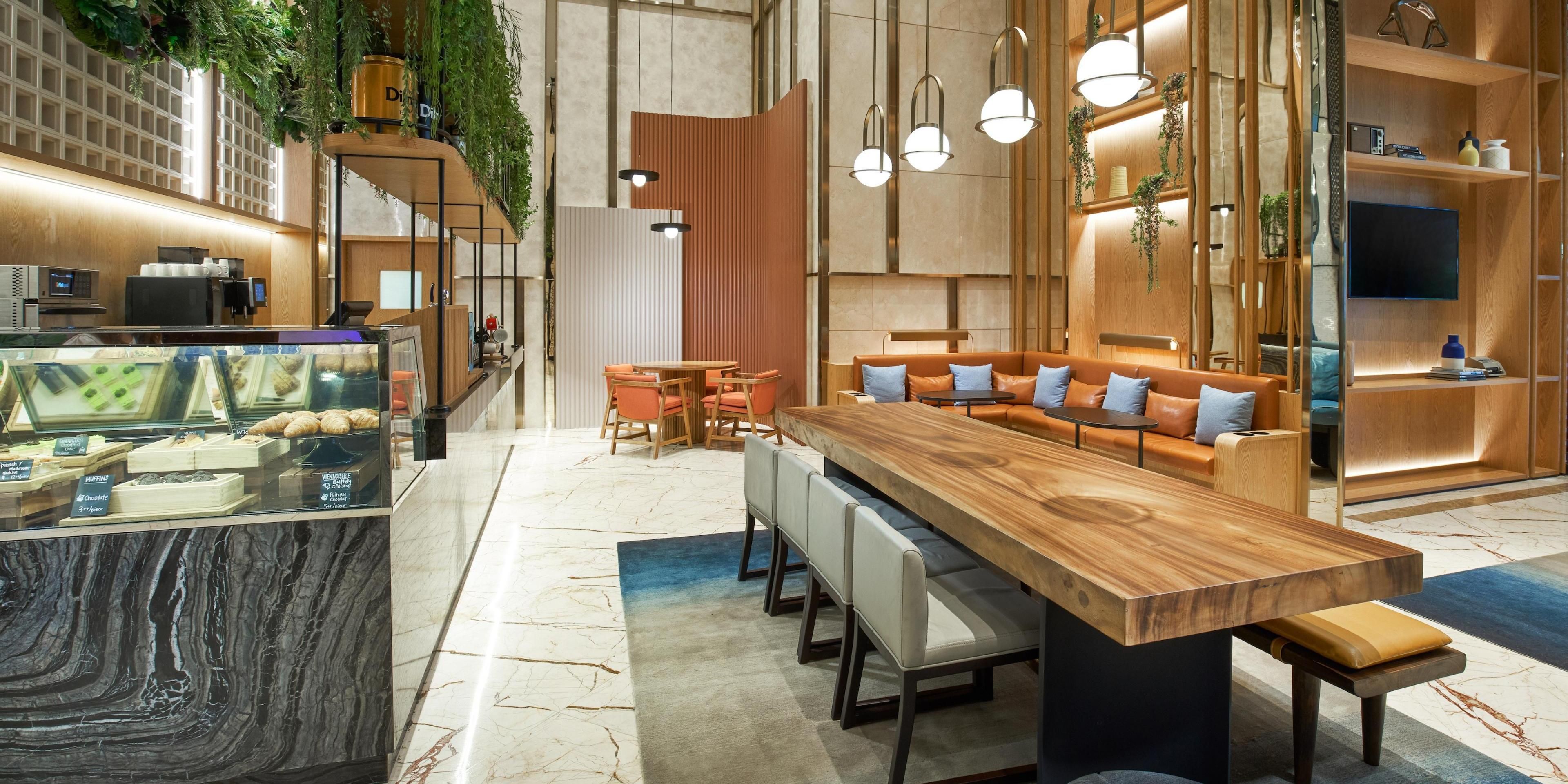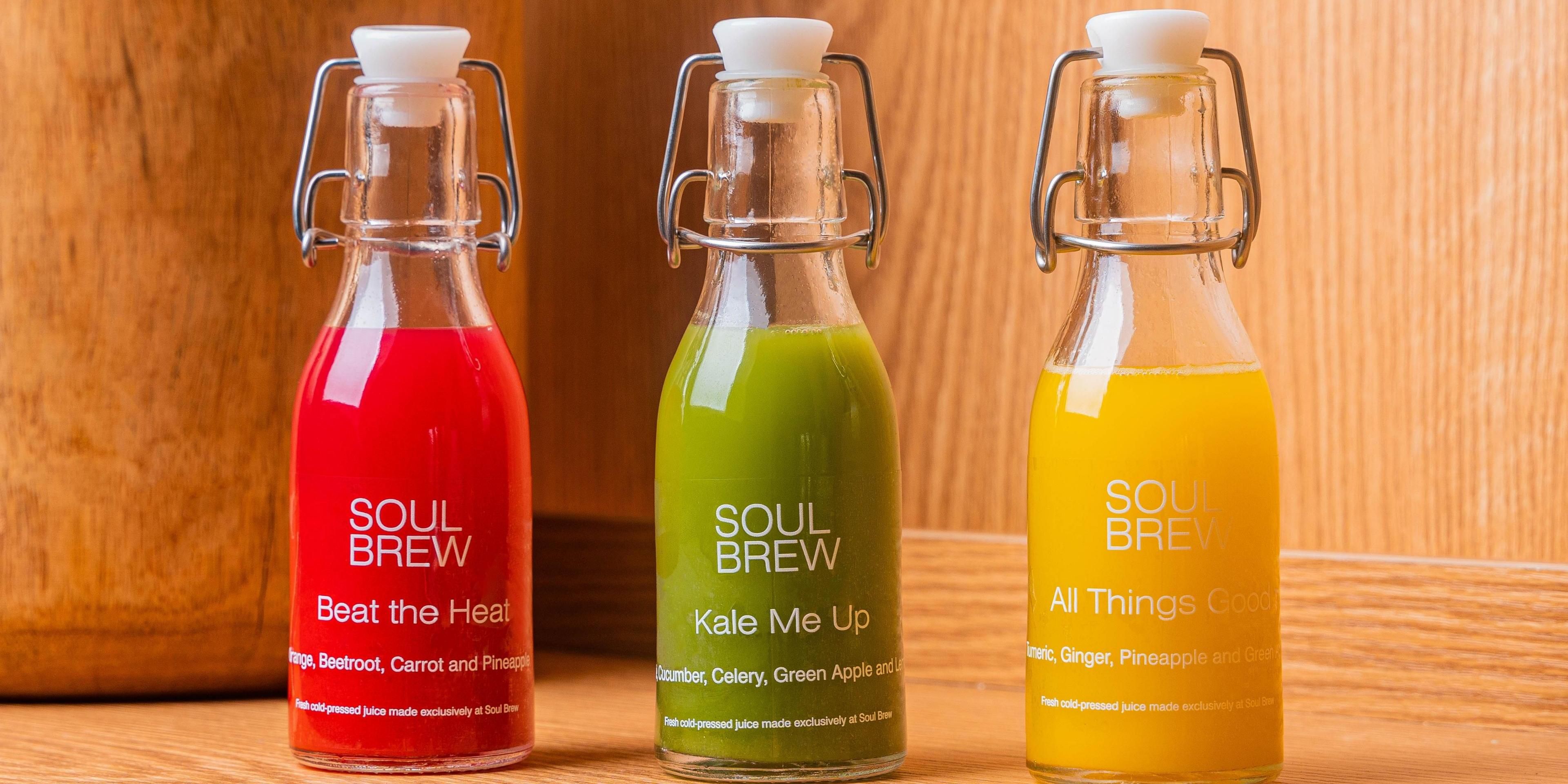 Soul Brew位于酒店大堂休息区,您可在此与工作伙伴共聚一桌开展讨论,也可在一方舒适的小间里慢度独处时光。 Soul Brew可为您提供多种多样的健康之选,从一杯额外添加营养成分的冷压果汁到一碗养生轻食,享用美食,同时爱护身体。