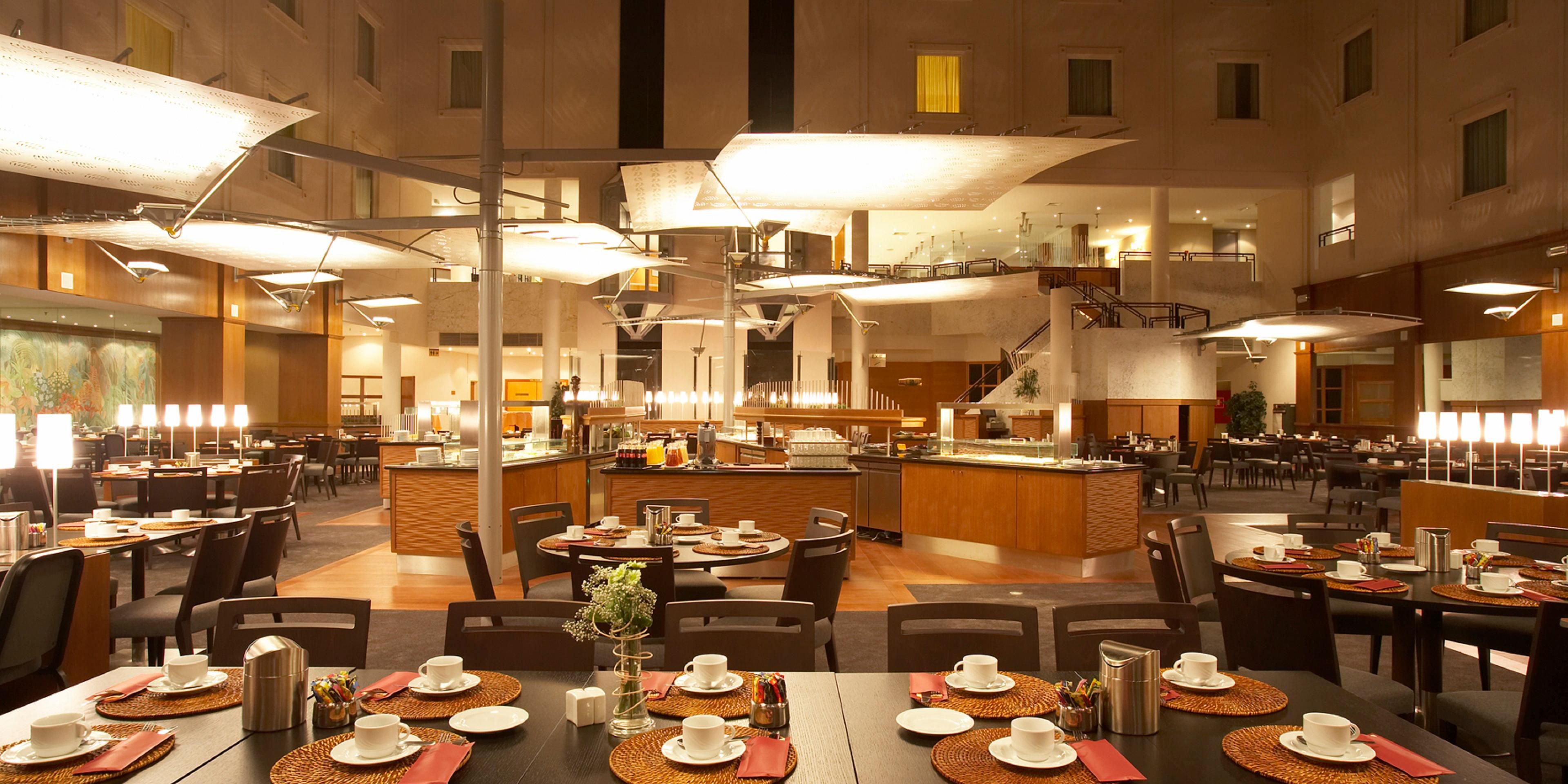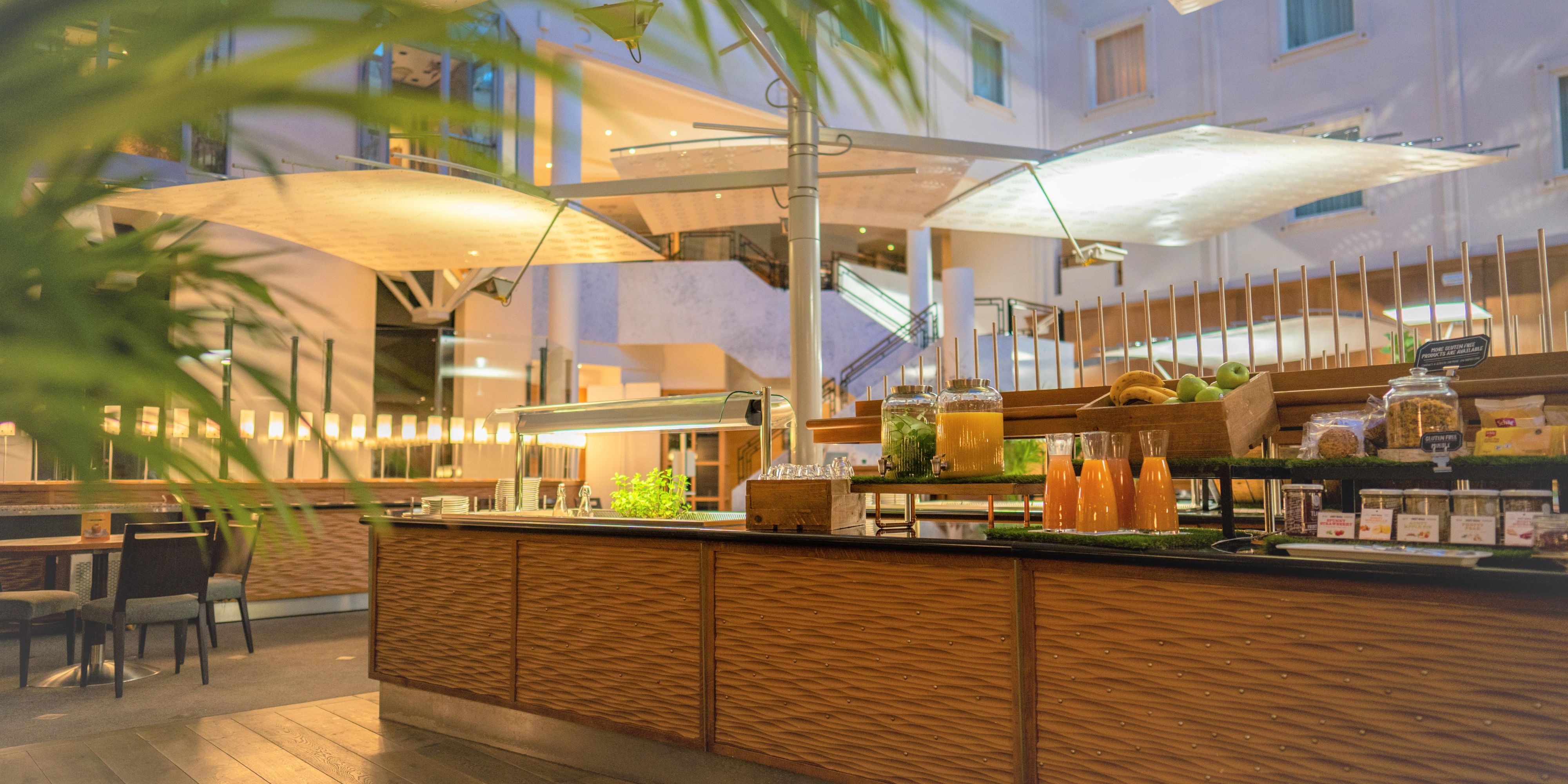 Our Atrium restaurant presents an extensive hot buffet breakfast, and a large selection of dishes for lunch and dinner. You can meet colleagues for drinks, snacks and cocktails in the Atrium bar. Room Service available from 6.30am-11pm.