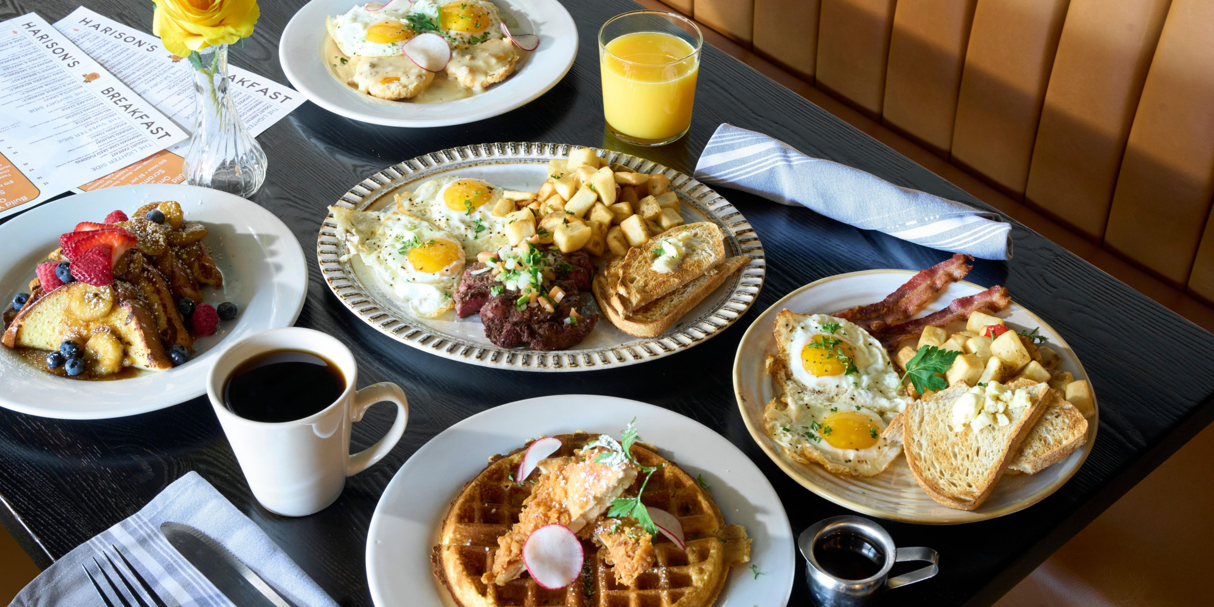 HARISON'S Restaurant and Bar offers upscale casual American cuisine featuring breakfast and dinner service, a chef driven menu, a full bar and a scenic outdoor patio overlooking the mountains.