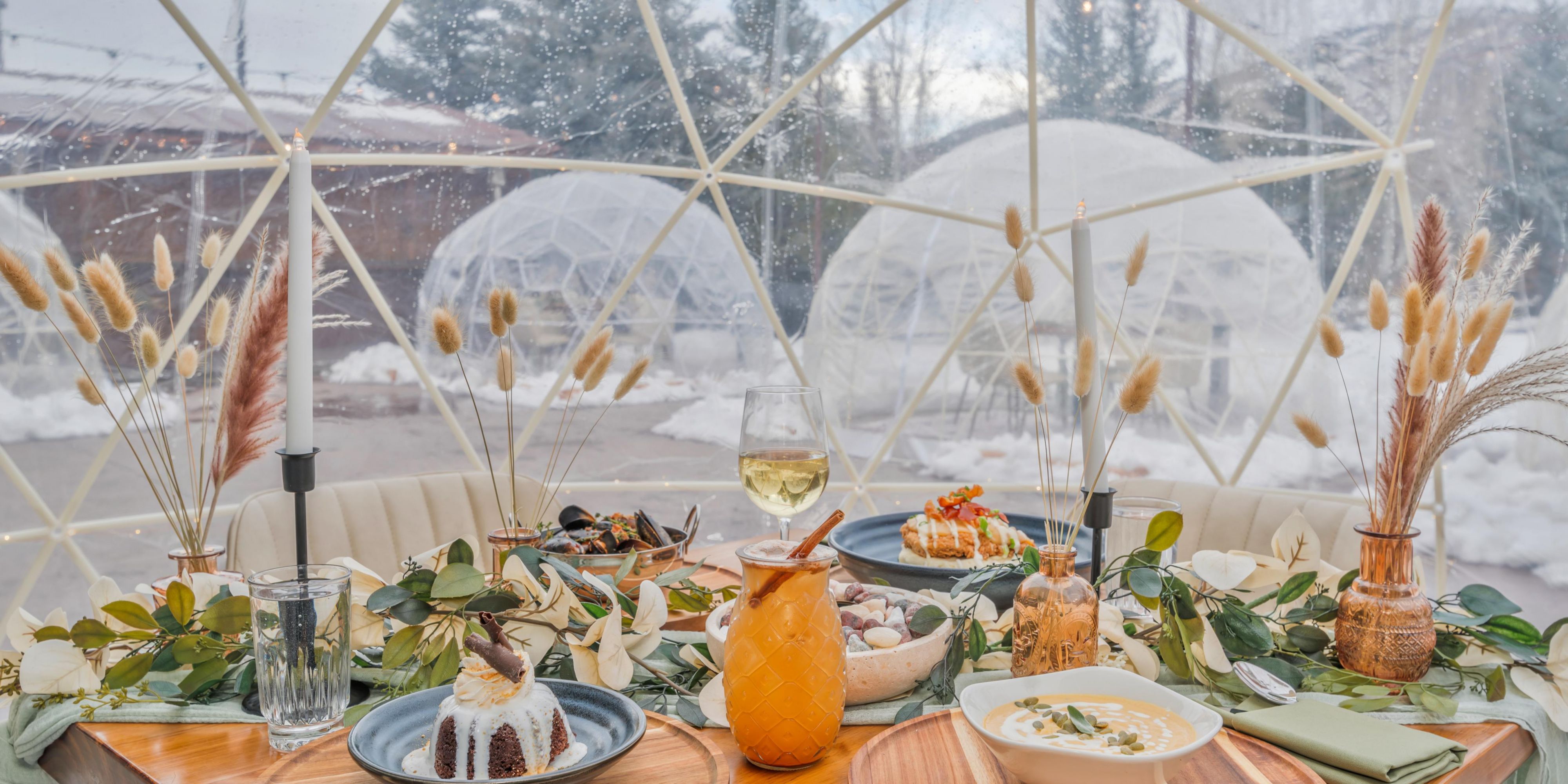 The Alpenglow Supper Club is a seasonal activation that offers an intimate and unforgettable dining experience in private, heated igloo tents.
