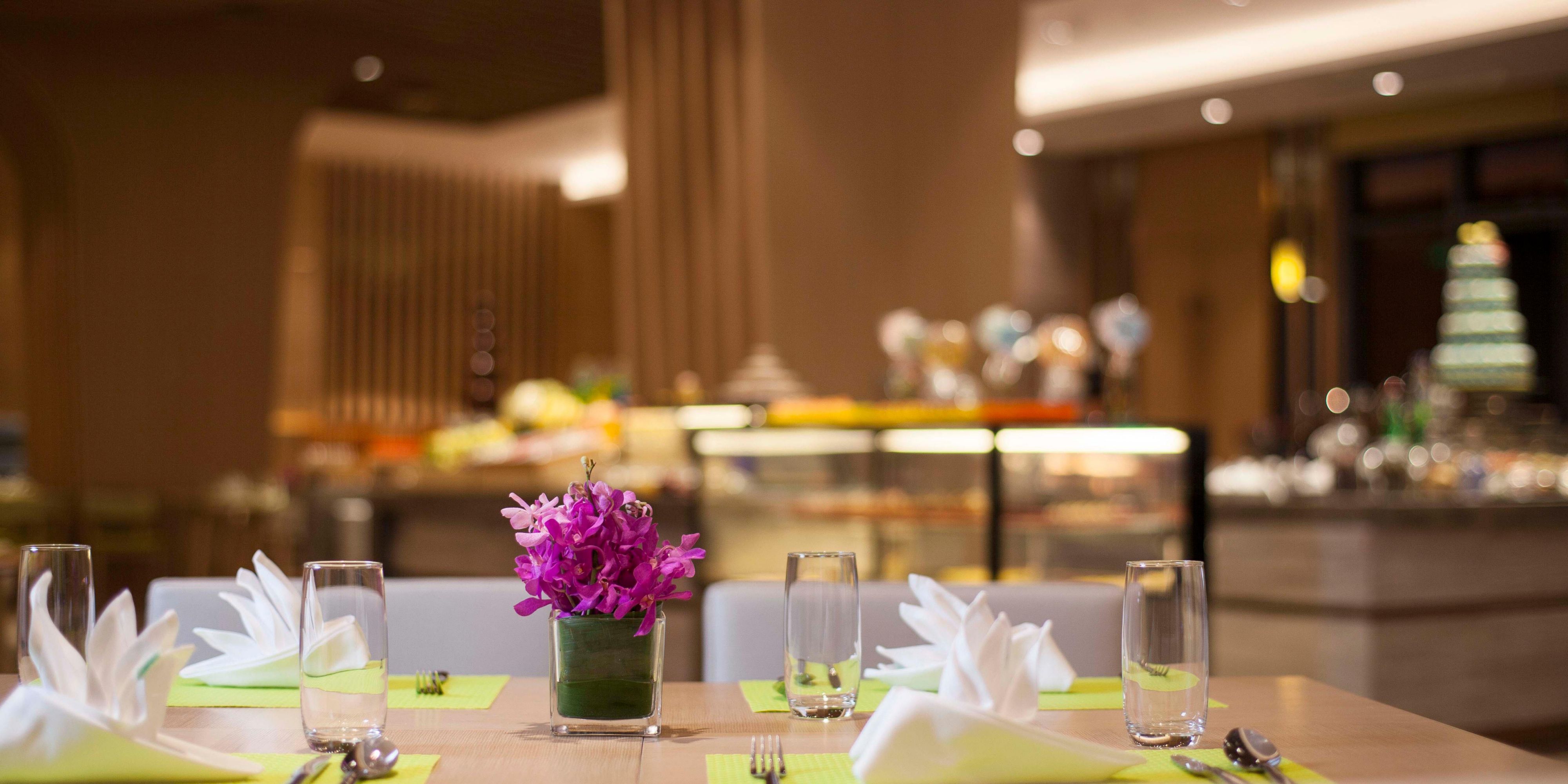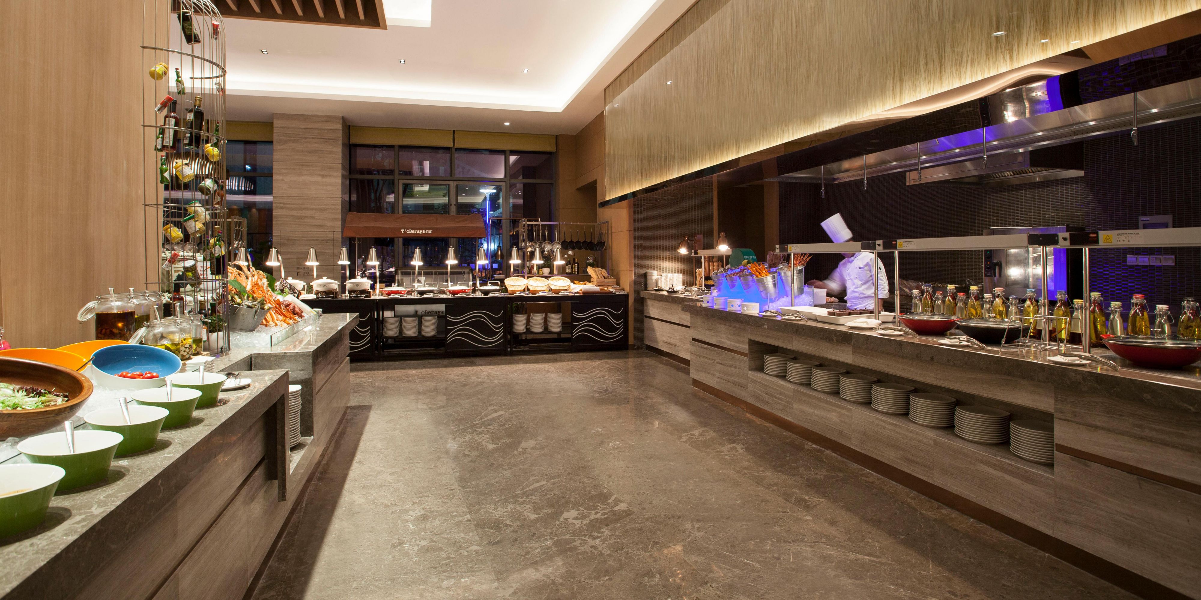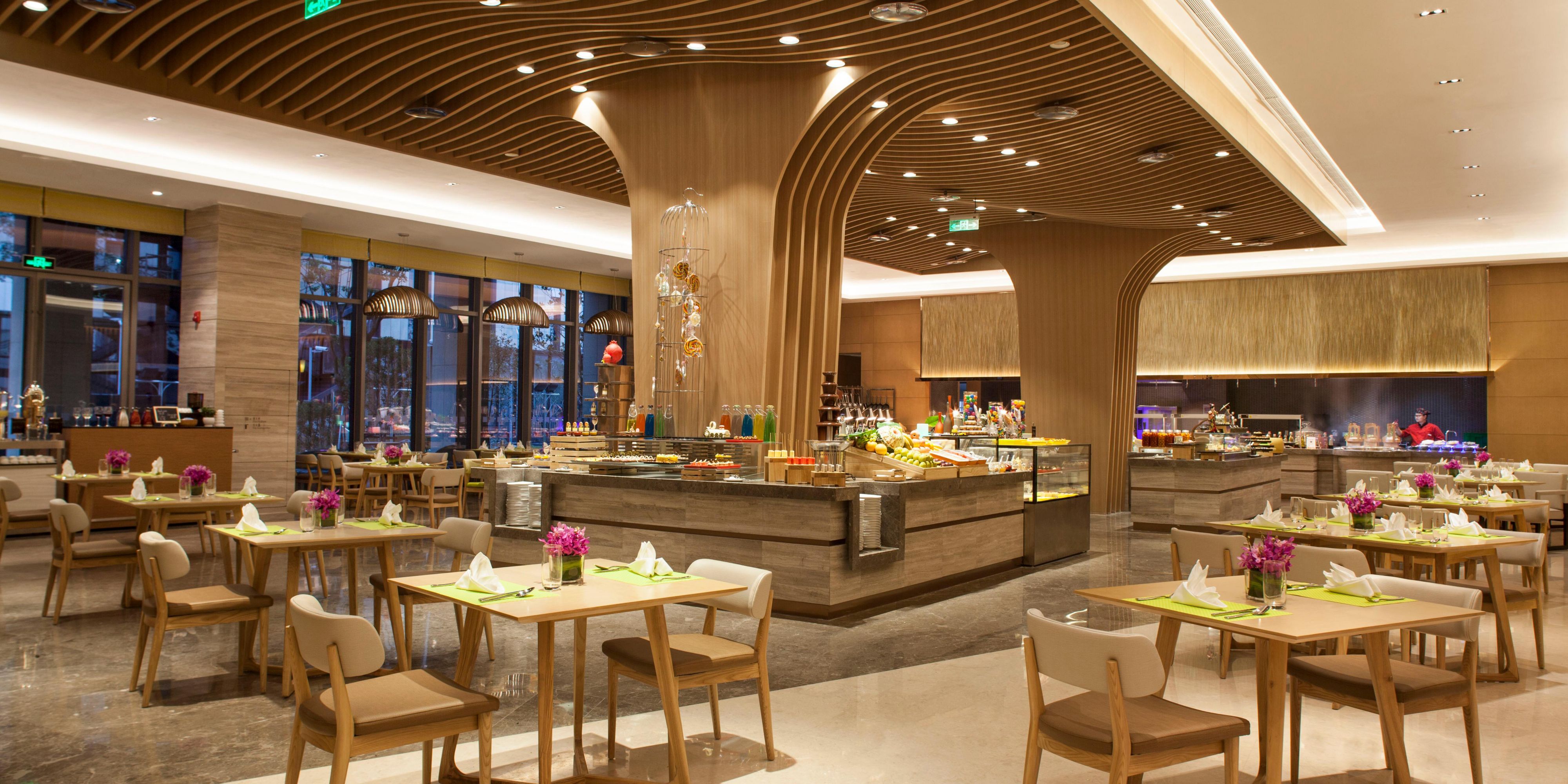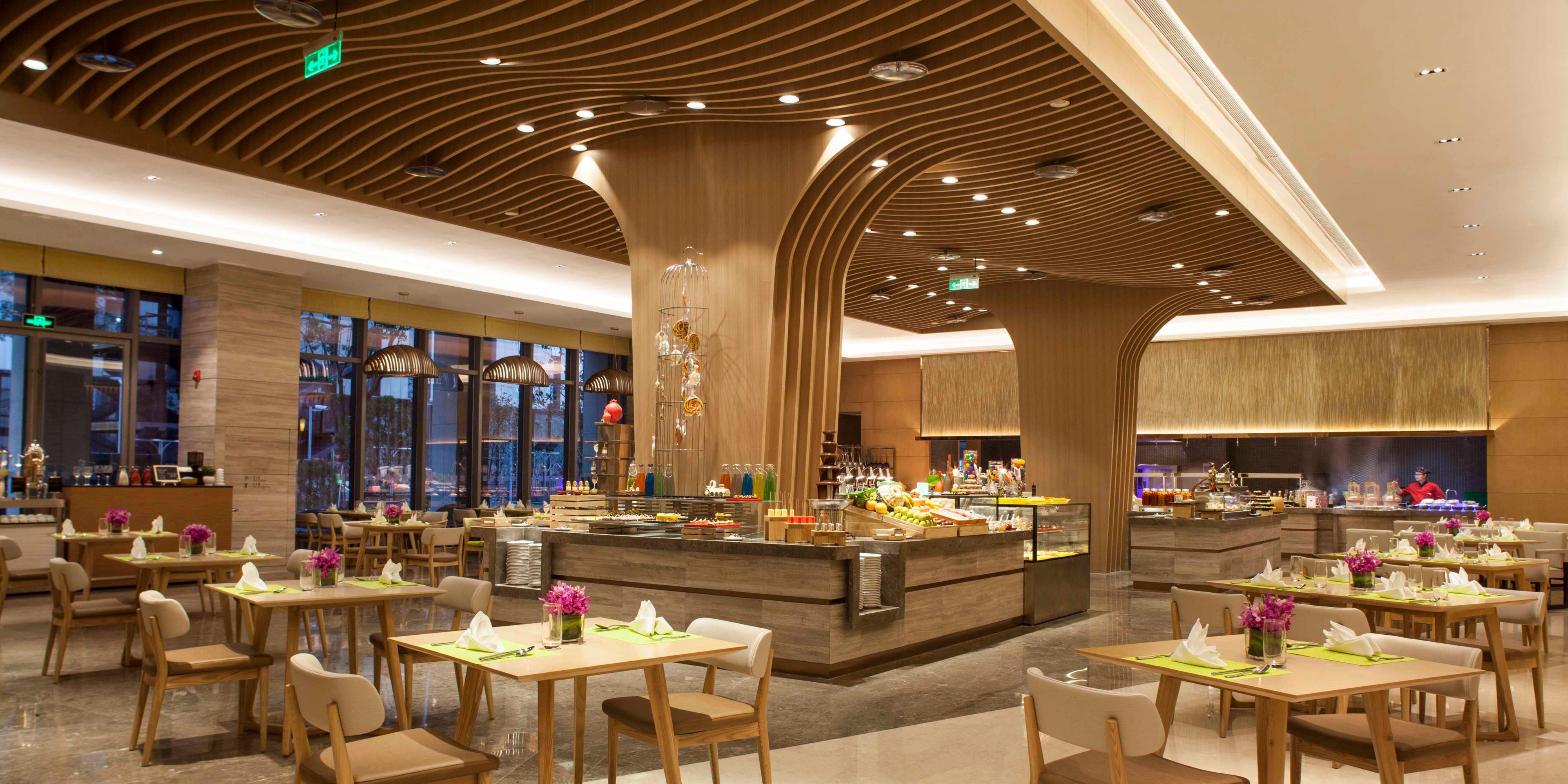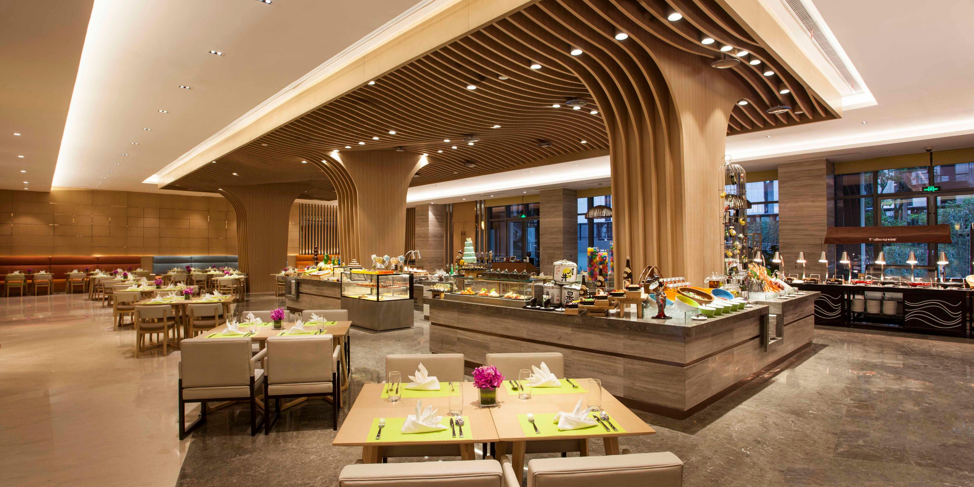 西餐厅“绣”字取意于苏绣。“绣”与“锦”中餐厅组成“锦绣”二字,寓意精美与恢弘。餐厅荟萃世界美食,并辅以亚洲特色及本地风味佳肴。甄选新鲜食材,悉心烹饪,为您奉上丰盛的中西自助早餐,定制多样主题自助餐,及零点美食,让您开启一段曼妙味蕾之旅。