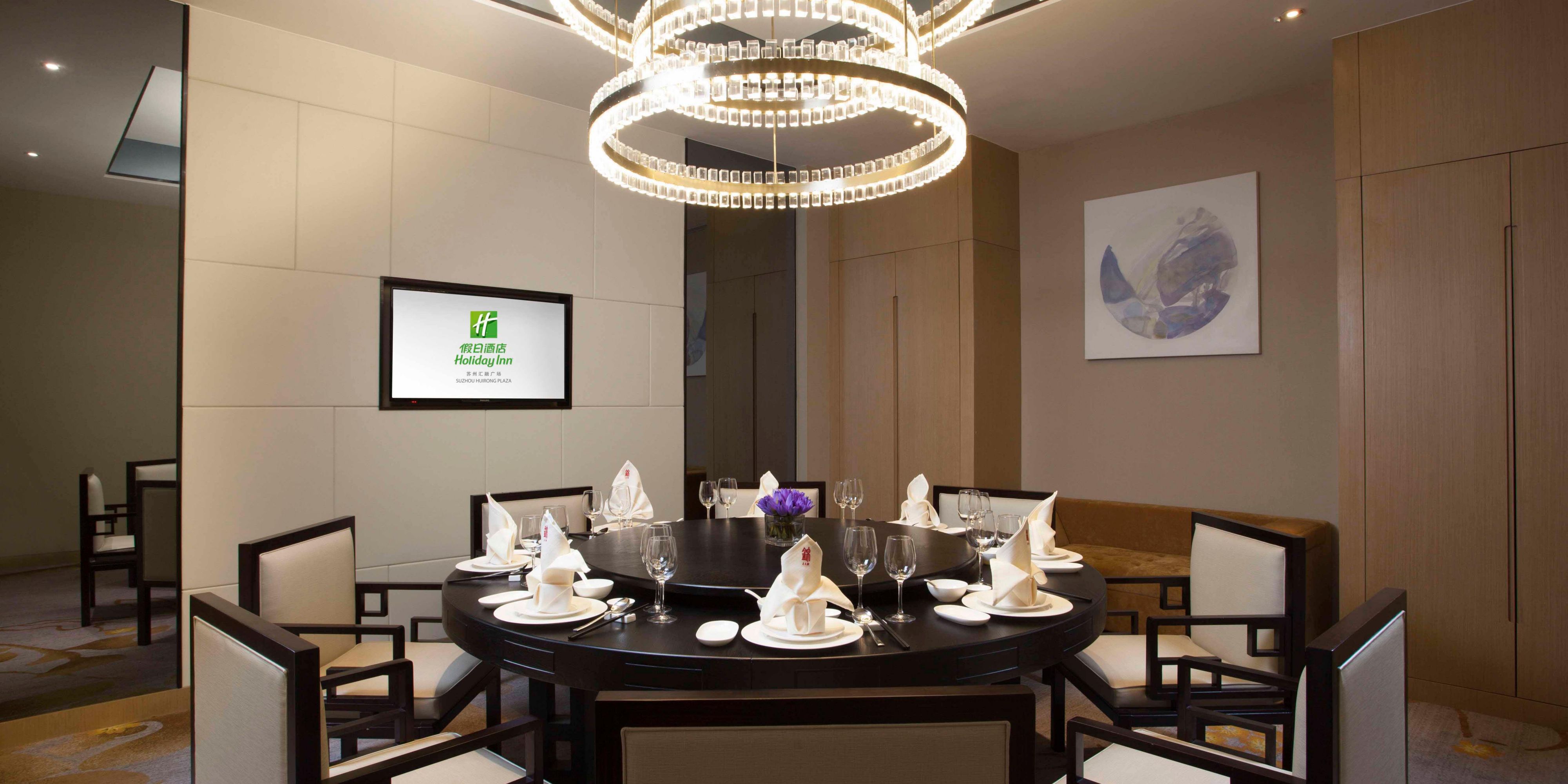 “锦” 中餐厅取自苏州宋锦所传递的美好之意,淋漓呈现中华美食文化的博大精深。餐厅位于酒店二楼,以传统淮扬菜系为主,融合粤、川及苏帮菜式,同时专注于食材的原汁原味,形态精致,滋味醇和,为您带来视觉与味觉的双重享受。另设23个私人包厢,简约典雅,予人耳目一新之感,是您商务宴请、家庭聚会的理想选择。“锦”中餐厅荣获金梧桐人气餐厅,金梧桐一星餐厅,苏味推荐餐厅殊荣。匠心呈现,品味之选,“锦”中餐厅欢迎您的品鉴。