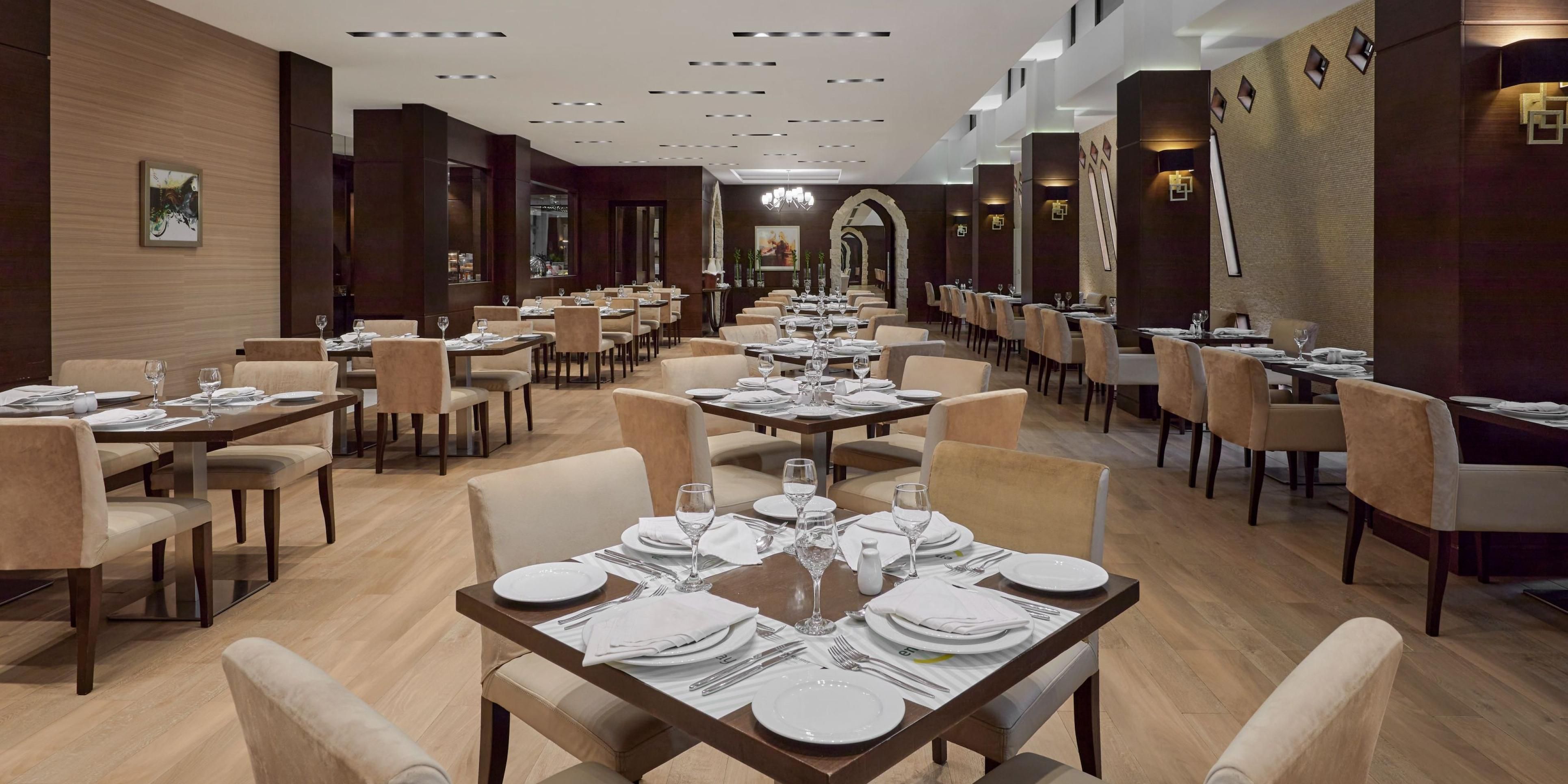 Start your day with a delicious breakfast at our in-house restaurant. In-room dining service is available around the clock. Al Walima Restaurant features a family section and can accommodate up to 100 guests, offering a variety of dining options.
