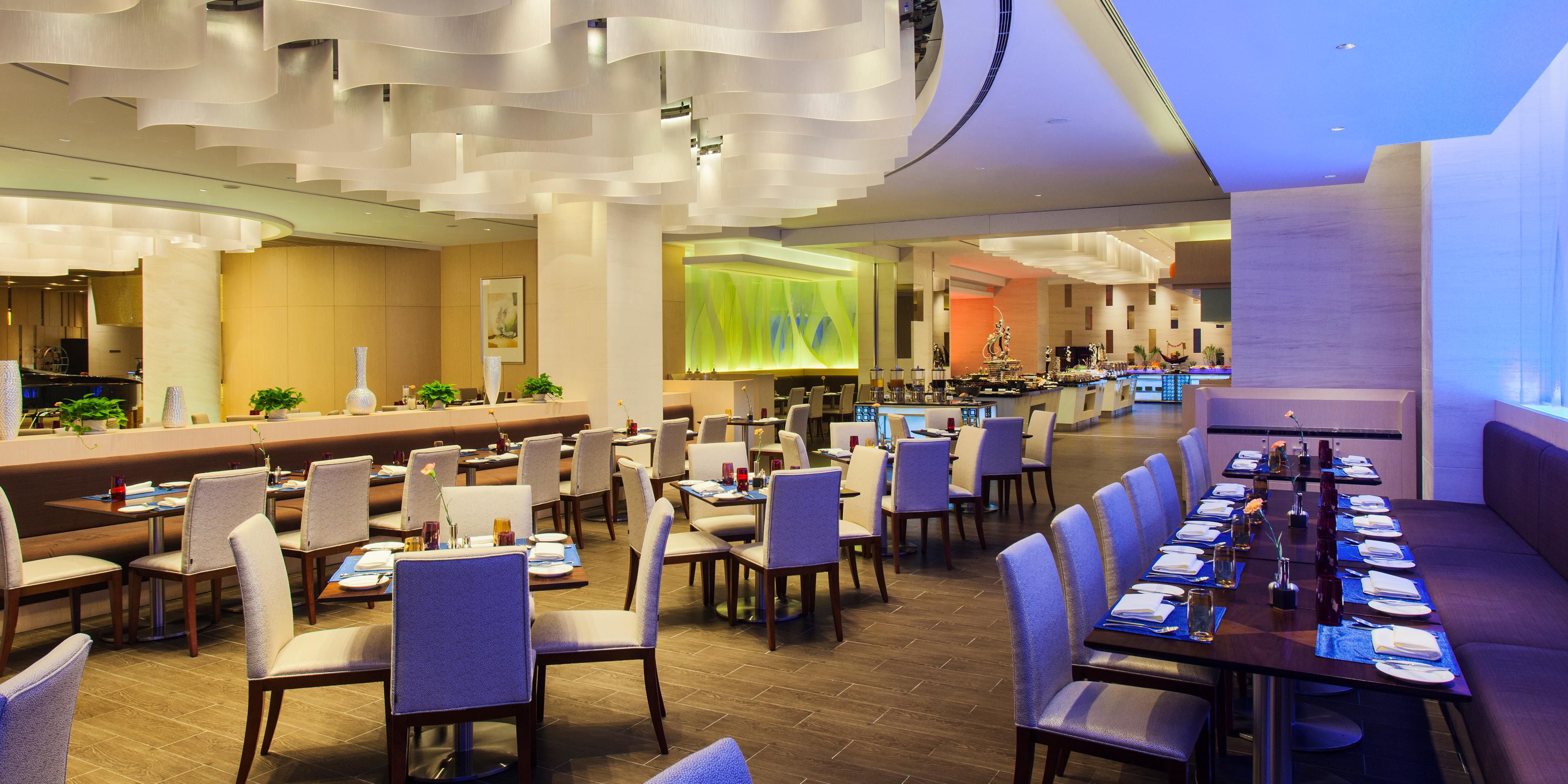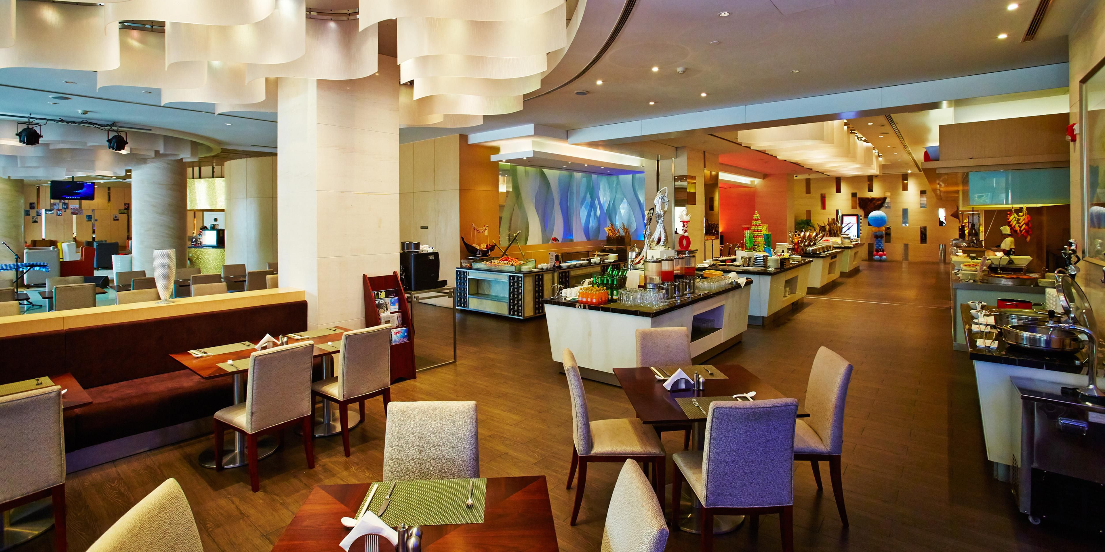 旭西餐厅位于酒店1层,既可享用美味中西式零点菜肴,也可以品味来自世界各地不同菜色的主题自助晚宴。 悠然品尝优质的茶及咖啡、下午茶点,或是请调酒师制作一杯小有情调的鸡尾酒,这里也是邀友小聚的理想场所。
