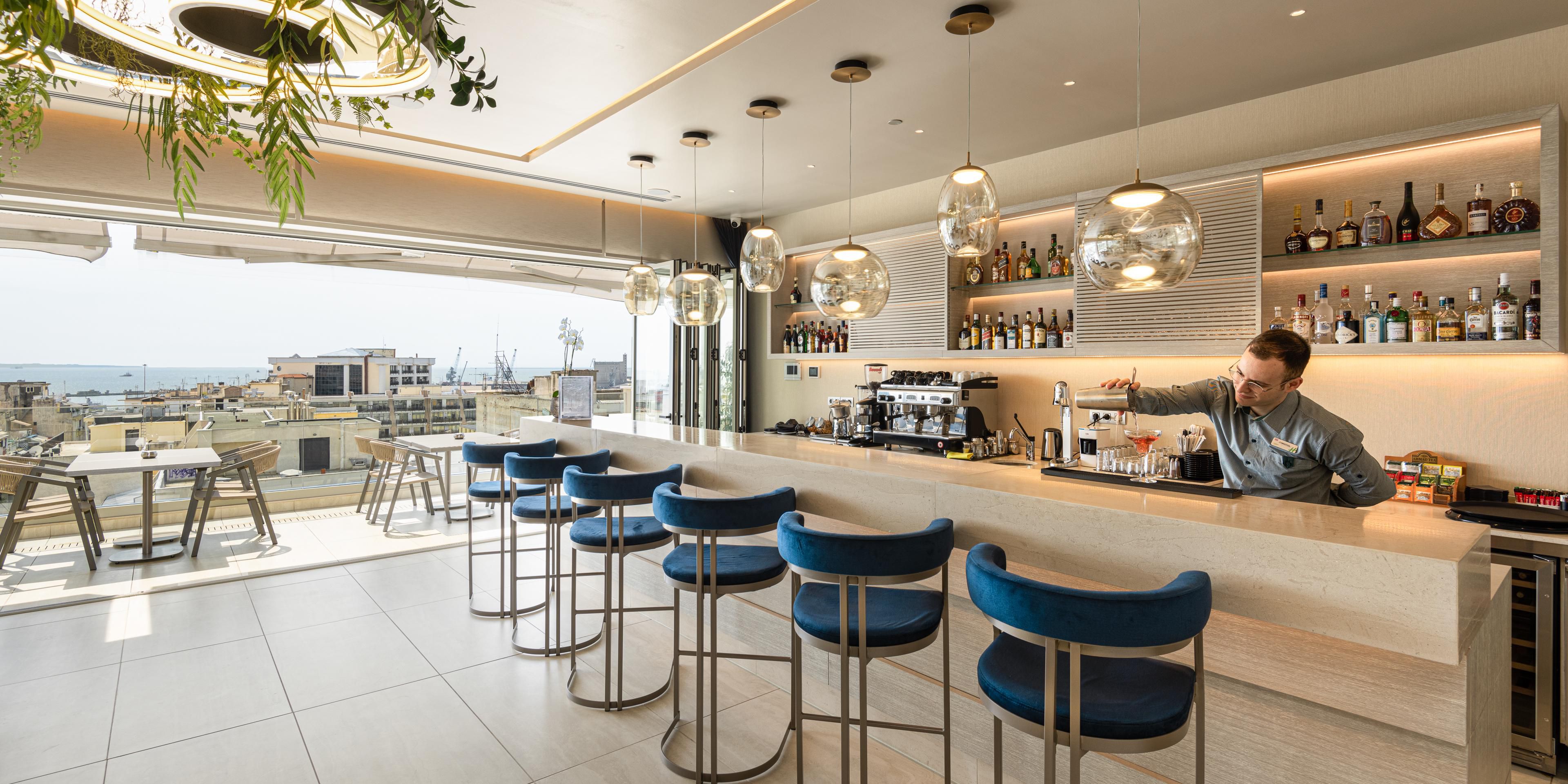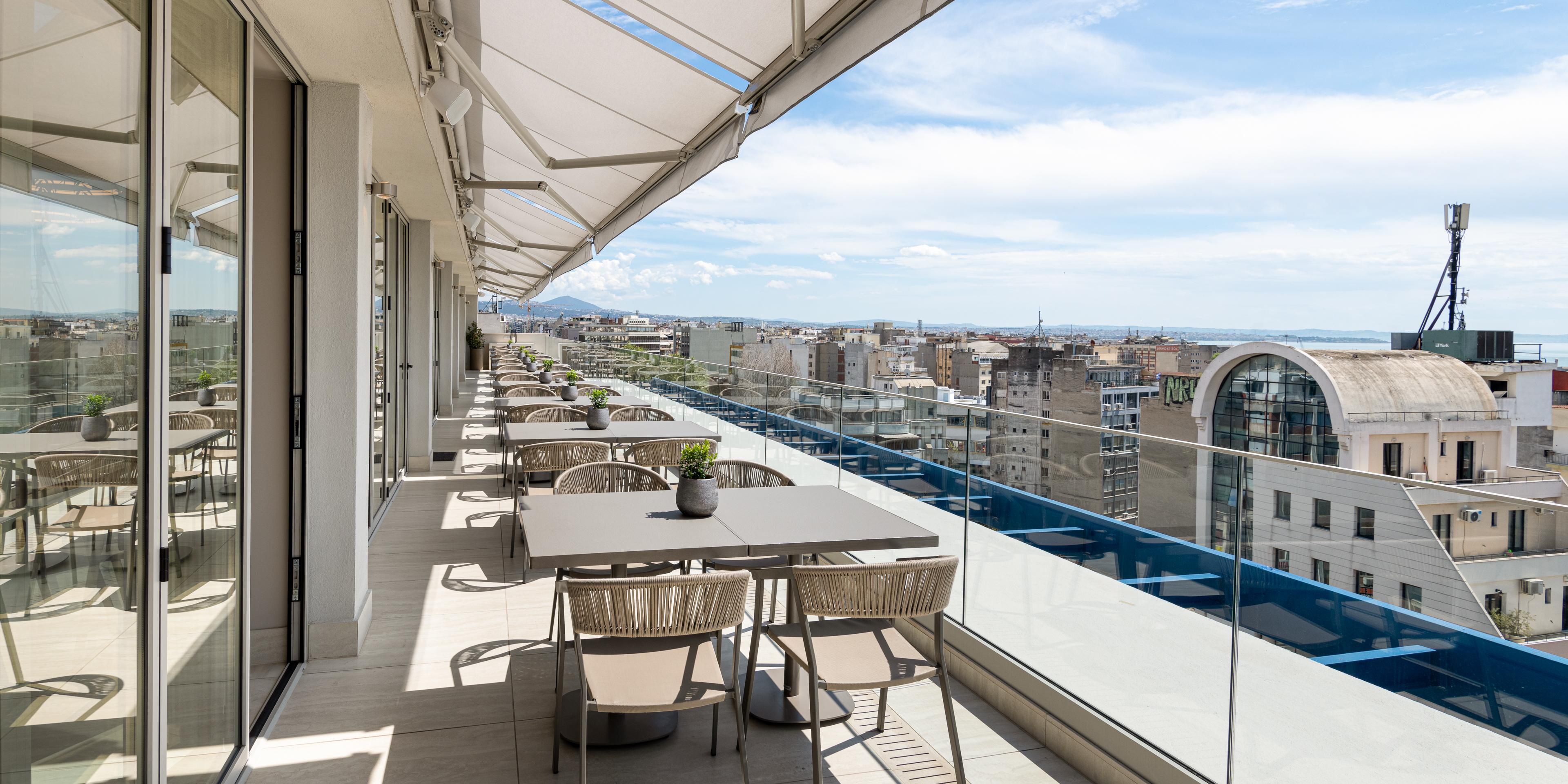 Located on the rooftop, with magnificent urban view, Level 9 Bar Restaurant is the ideal place to enjoy scrumptious menus of the Mediterranean culinary, which are designed to tap into the local food scene and be a draw for both local and out of town guests. Inspired concoctions of fine blended coffees and cocktails, based on an up to date drink list that follows the latest trends are offered at the adjoining bar. The specially designed outdoor patio, allows an open air dining, as well.