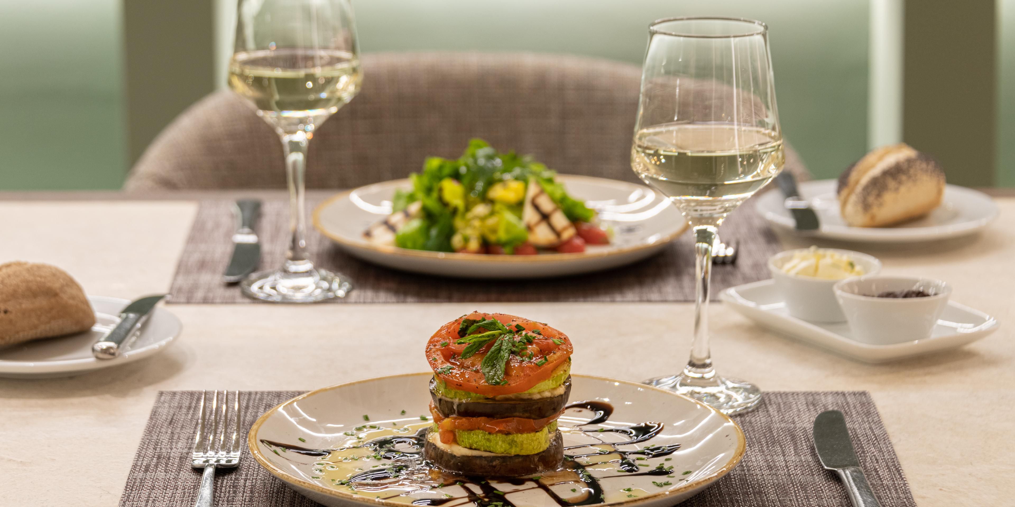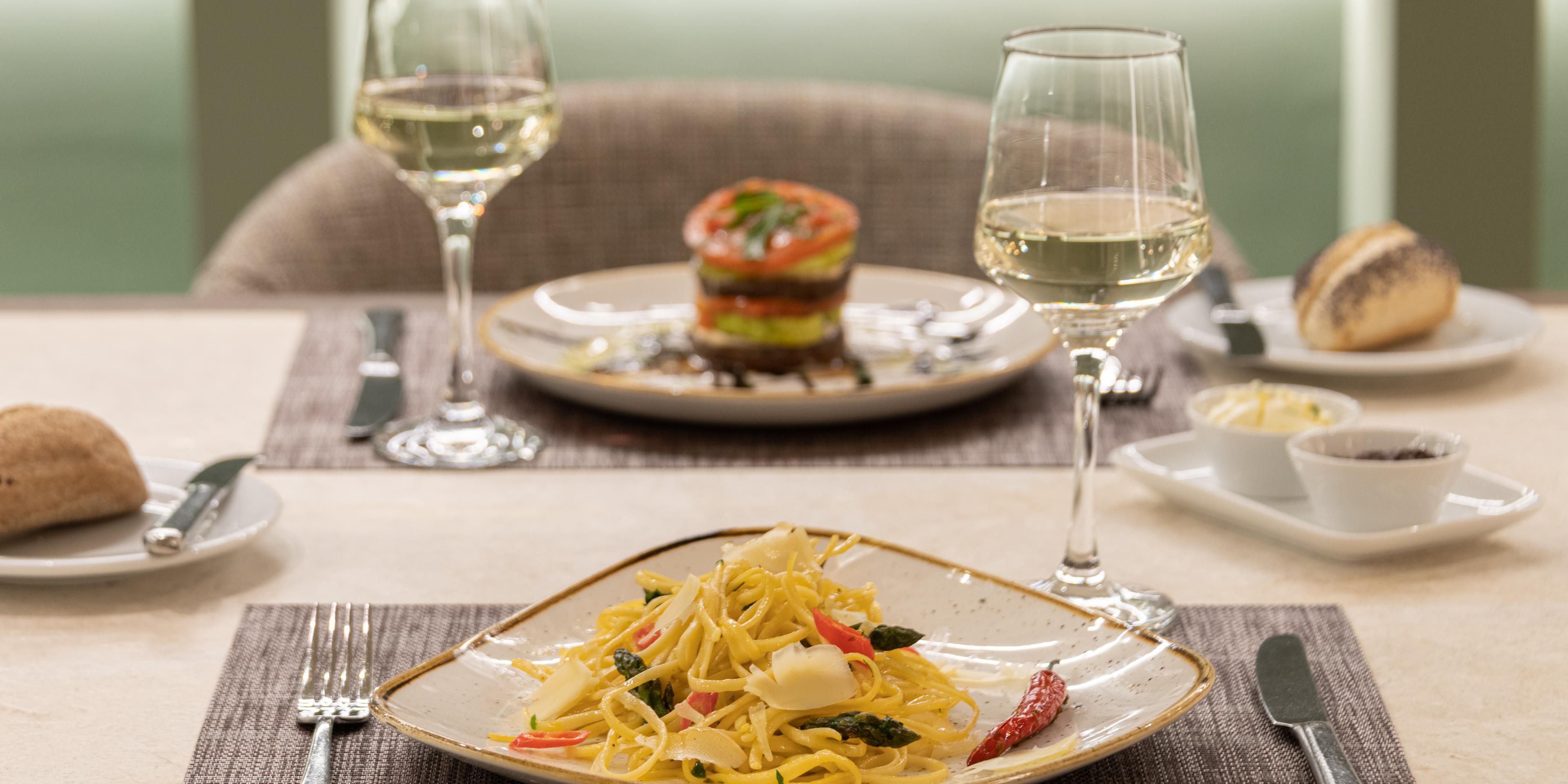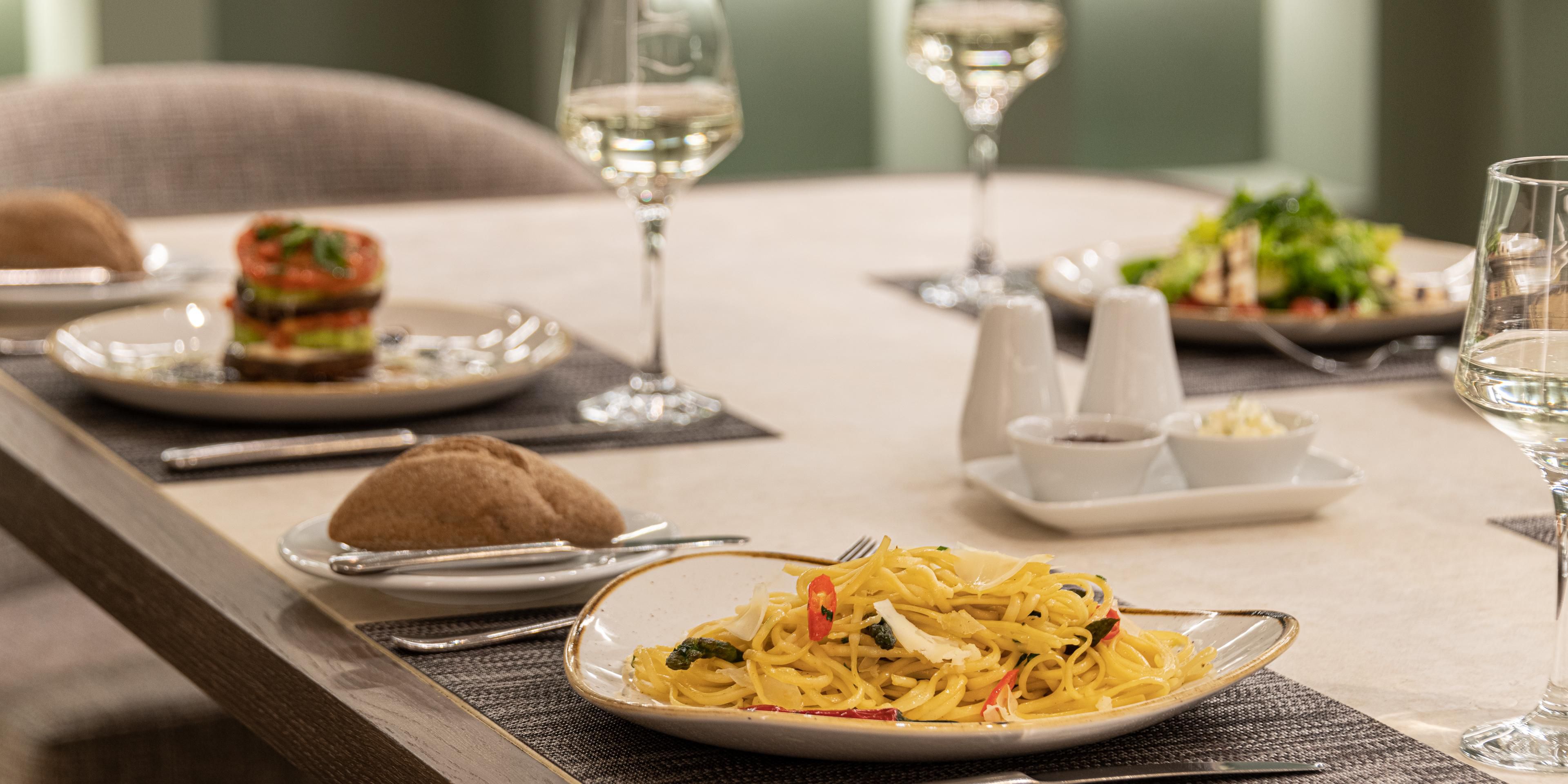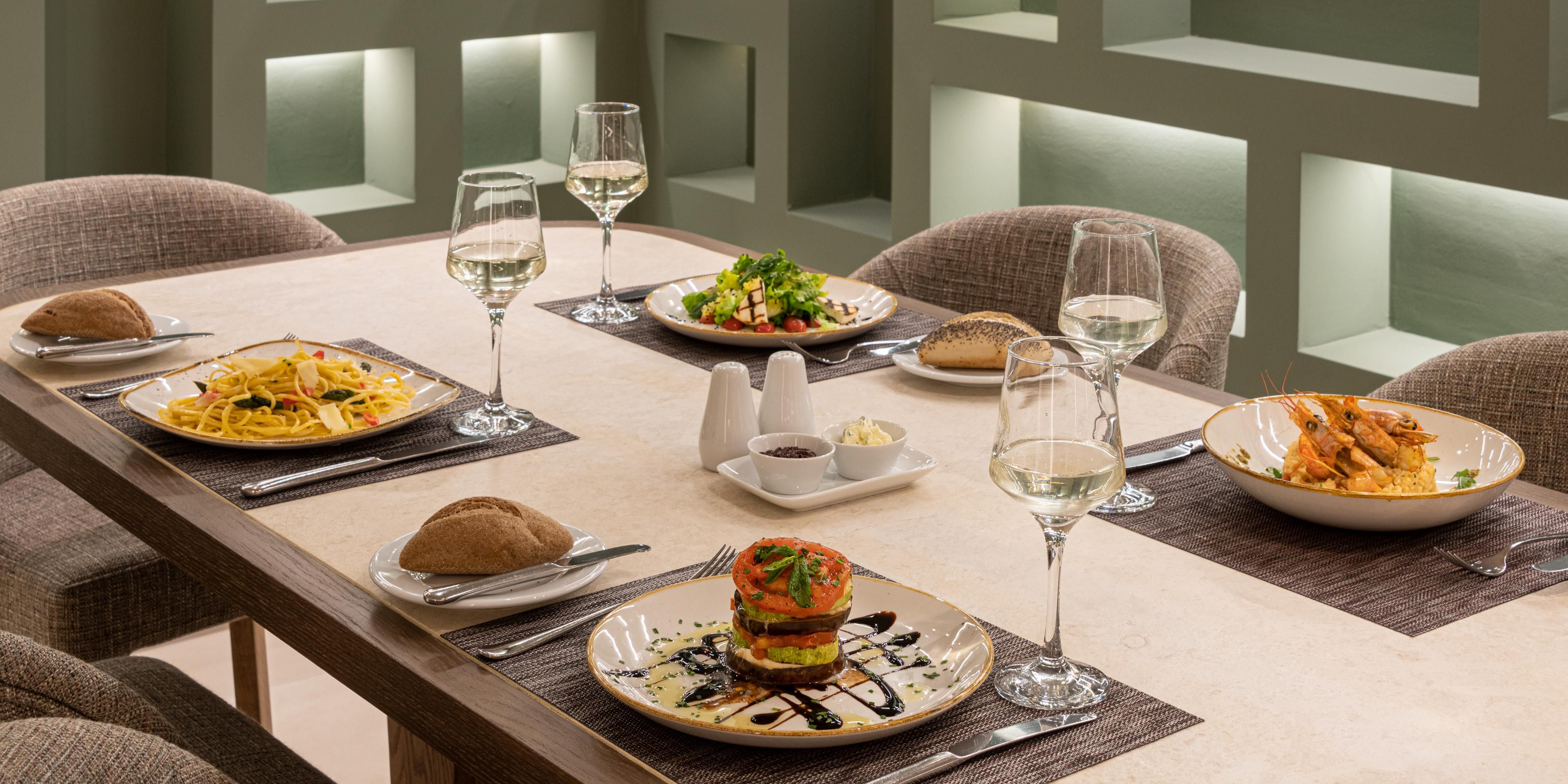 Aristotelis restaurant lays on a hot breakfast buffet to kick start the day. You can return for the international lunch and dinner menus, or try a taste of the Mediterranean.