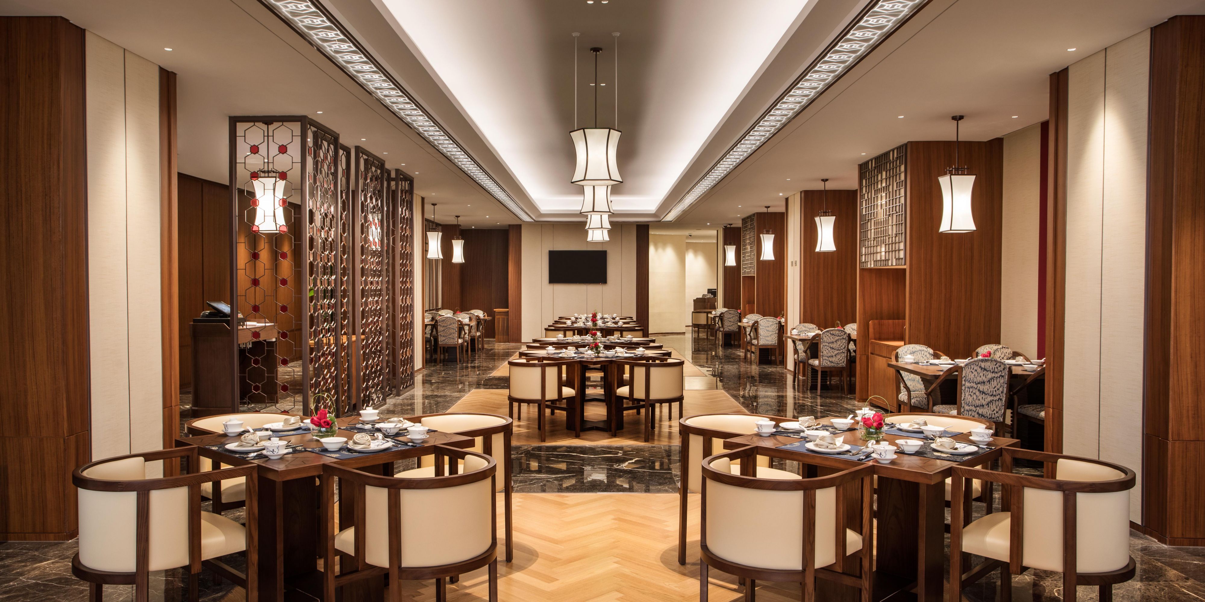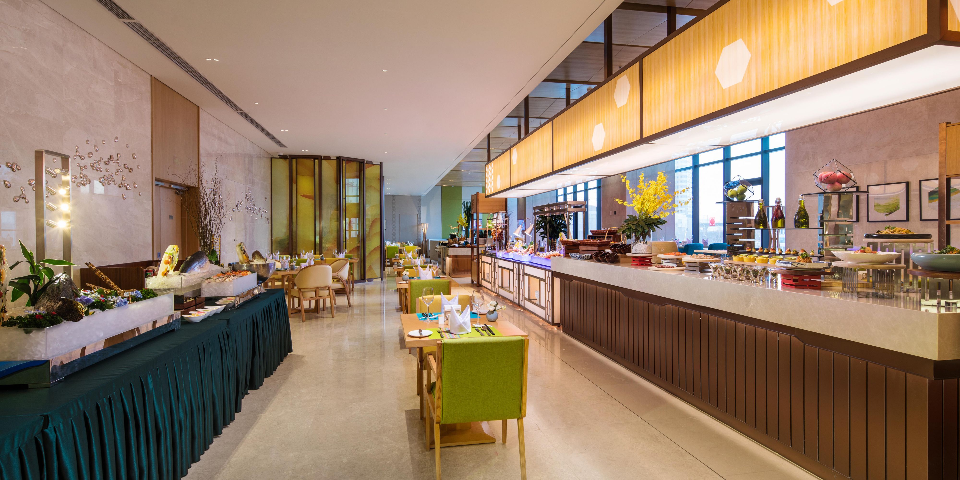 御河全日餐厅位于酒店二层,提供经典亚洲创新美食,国际主题自助餐,崇尚自然、新鲜、健康的饮食潮流,同时配备儿童游乐区,尽享儿童食宿。