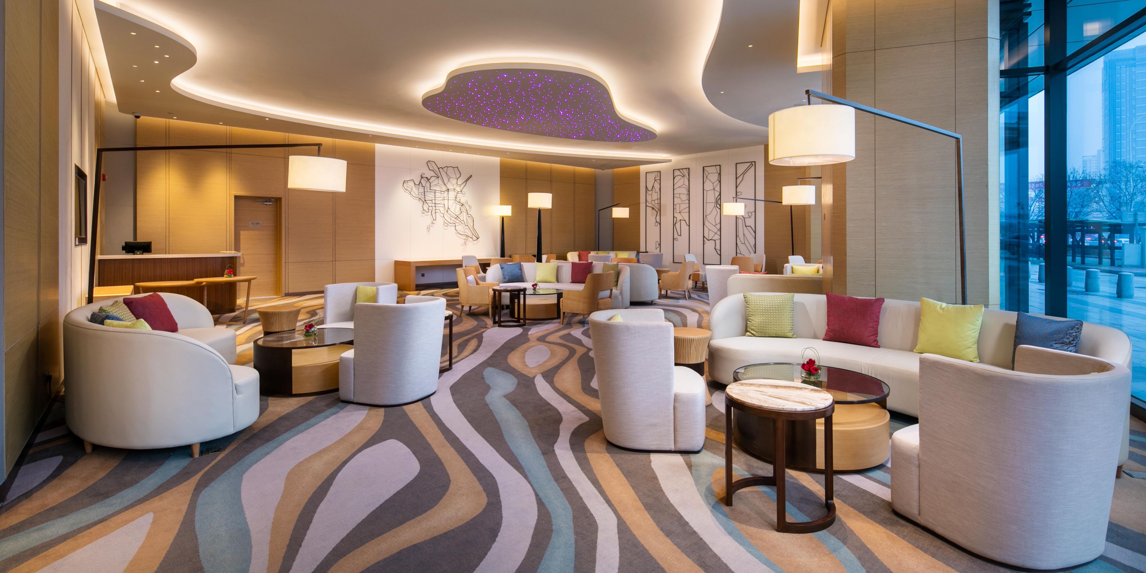 滙·酒廊位于酒店一层,驻足小憩度悠闲时光。经历了都市的喧嚣,无论朋友或是商务伙伴在“调”性的音乐中品自制鸡尾酒,现场冰滴咖啡,精选下午茶,一起感受慵懒与惬意。