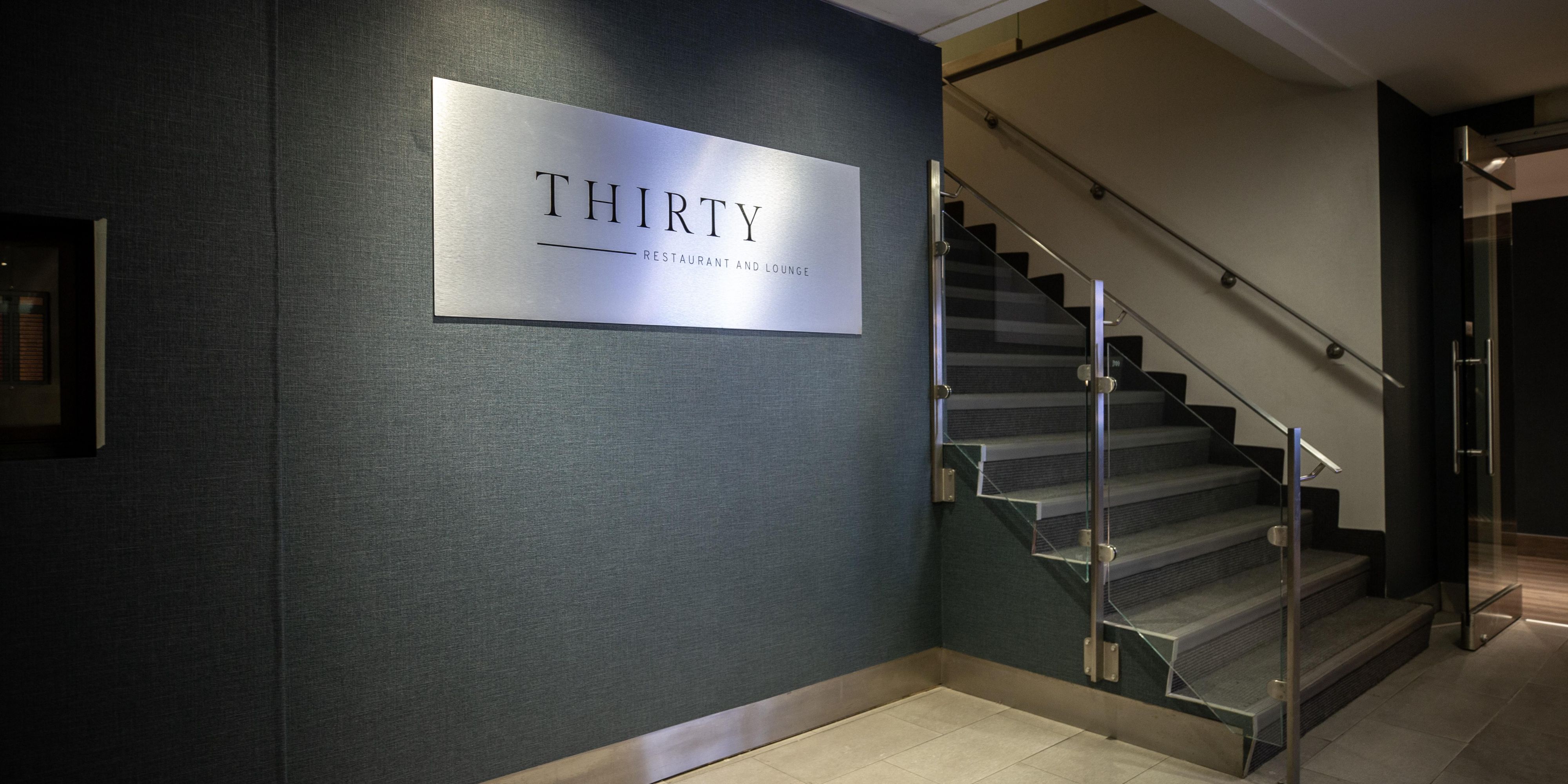 Thirty Restaurant and Lounge is a beautiful contemporary restaurant on the main level. Feel the energy of the kitchen with the open-concept layout. Come join us for an intimate meal or a special celebration with friends and family.