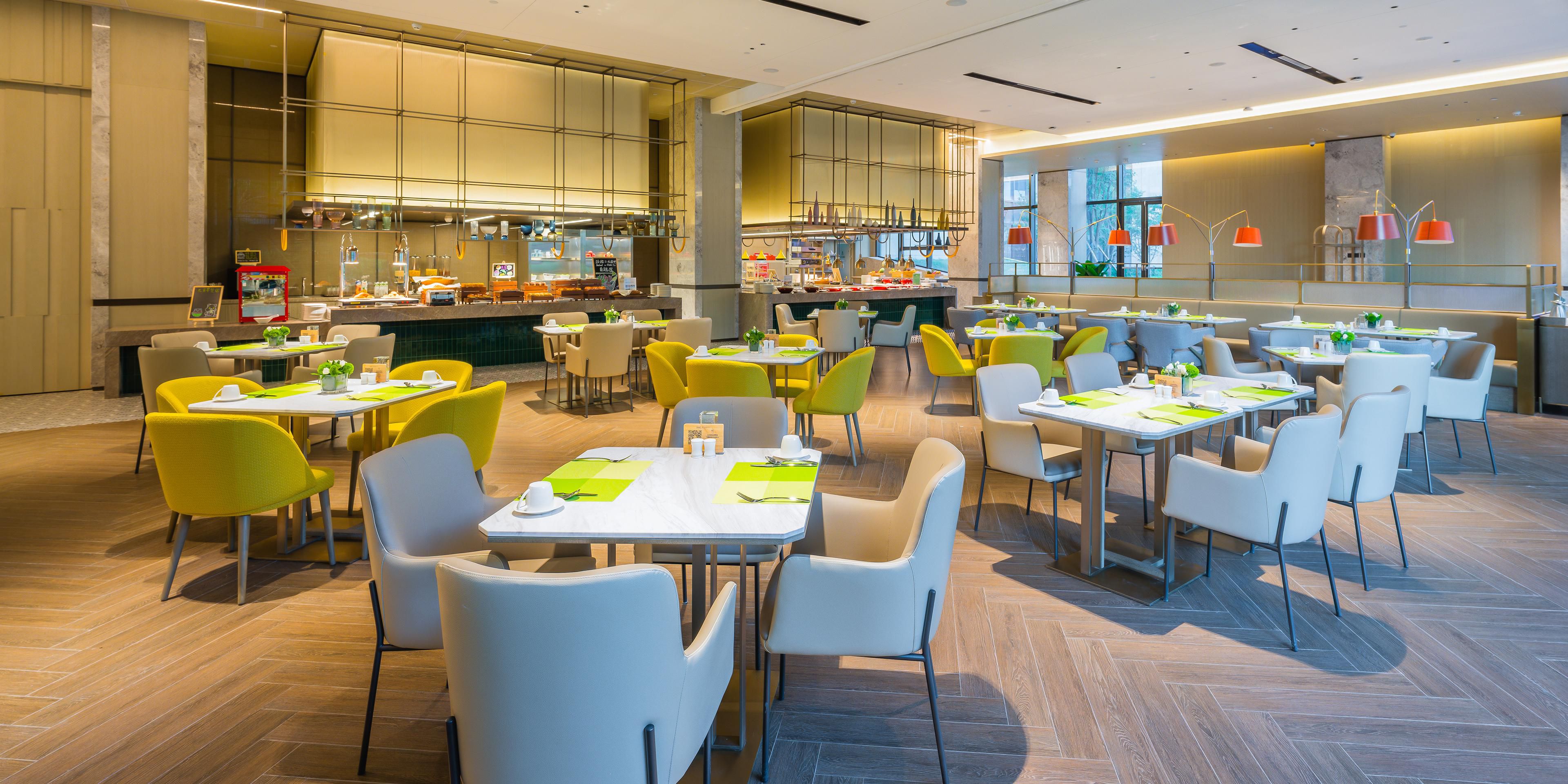 全日制餐厅“Hi Bowl”供应中西式自助早餐及特色零点美食,彩丰小馆中餐厅甄选本地优质食材,匠制粤菜、陕菜及创意菜品等百味珍馐犒赏食客,为您的用餐时光增添一抹灵活鲜动。