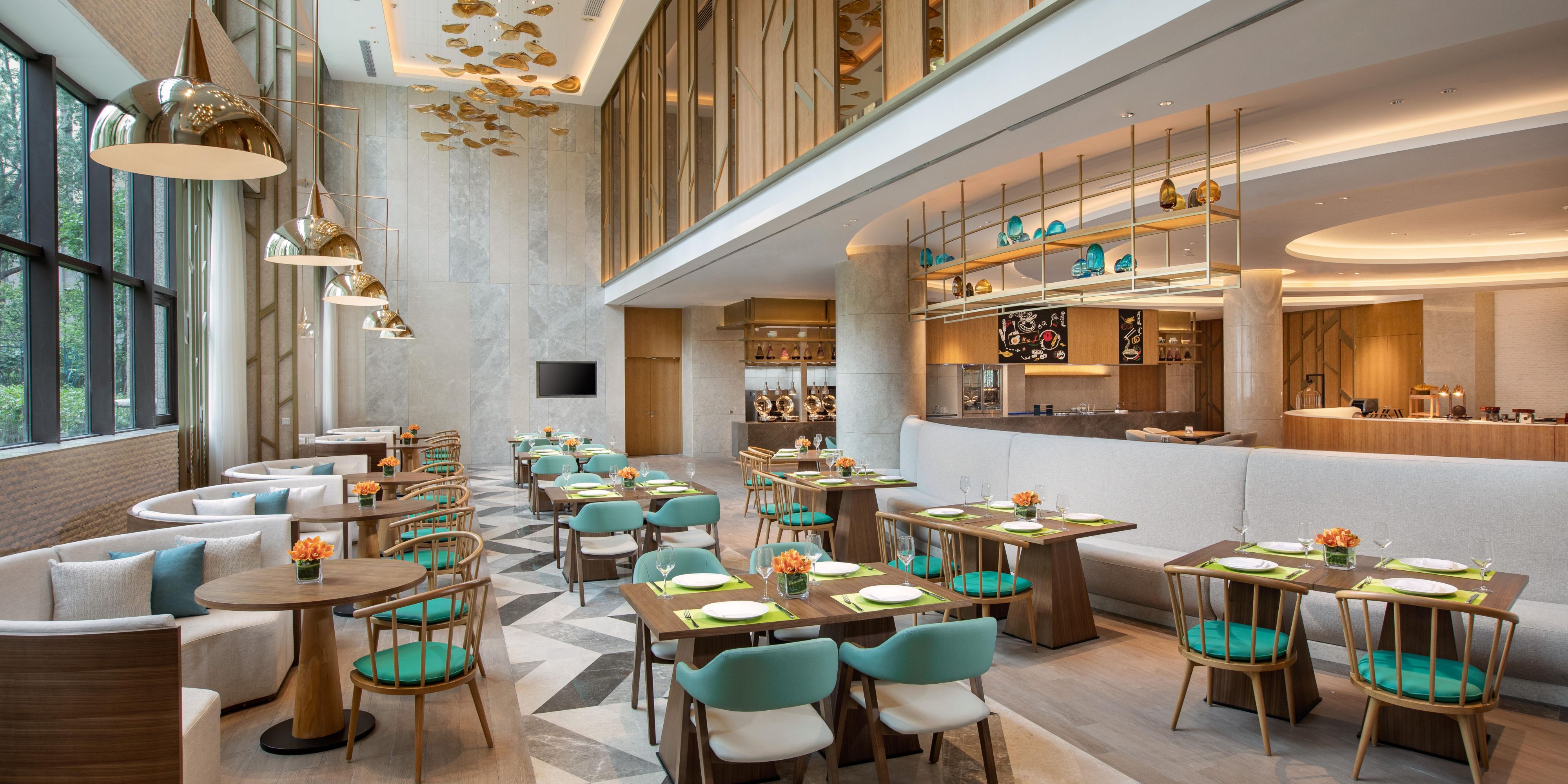 全日餐厅位于酒店1层,精致典雅的全日餐厅提供丰盛的自助美食、商务套餐及私人定制式创新时尚西餐,以创新烹饪技艺呈现当地特色经典菜肴的同时,满足个性化用餐需求。