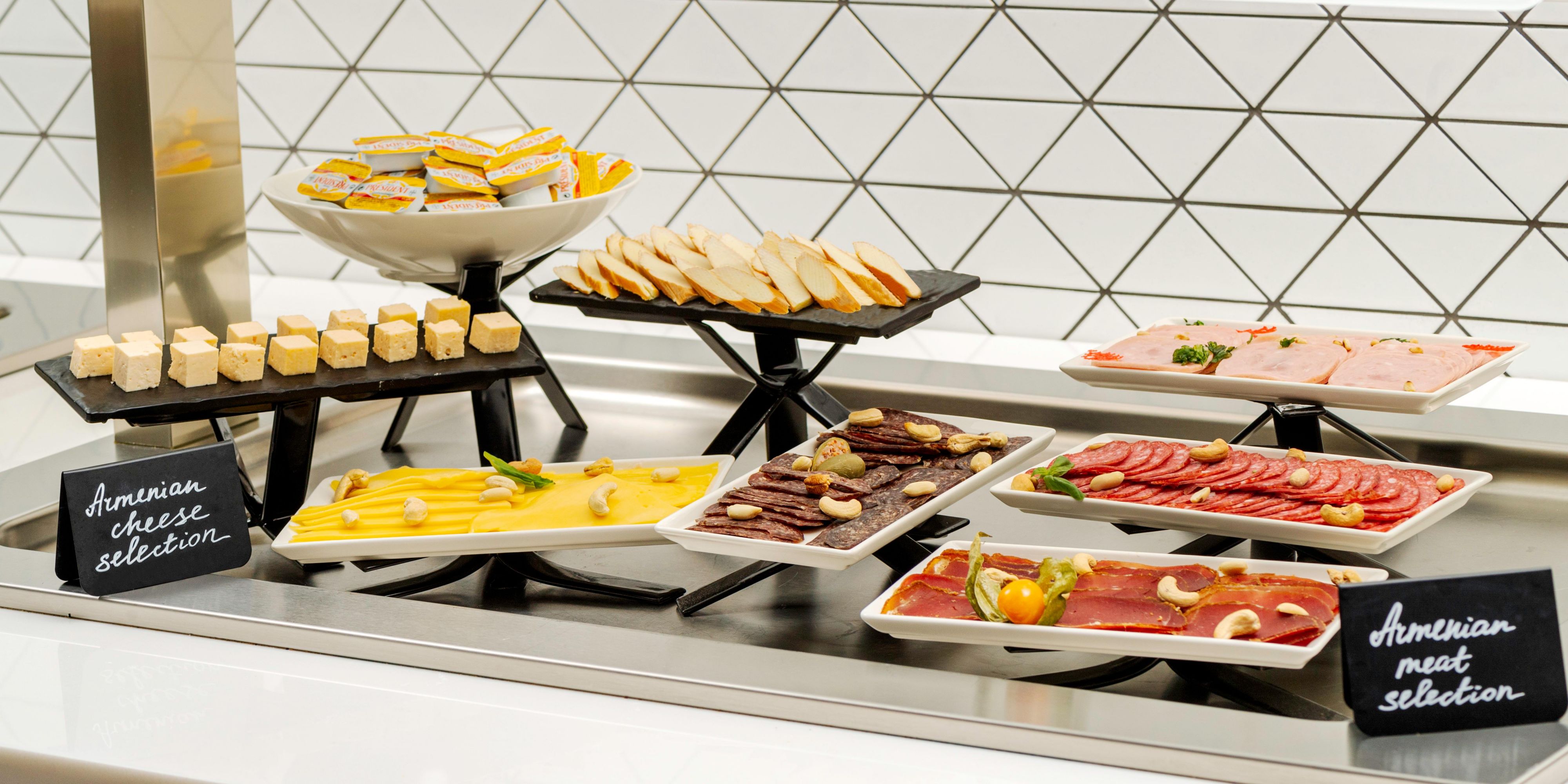Healthy breakfast buffet for our guests. The modern and lively lobby provides guests with international and Armenian cuisine. We’ve even included some vegan and gluten-free options. Kids 12 years and below eat free, 24-hour room service.